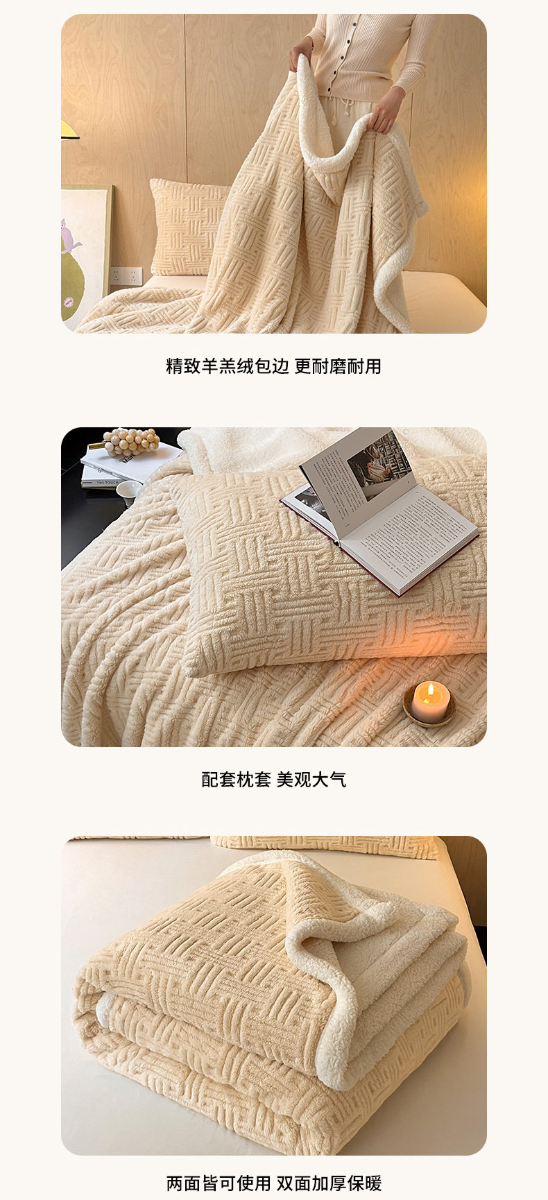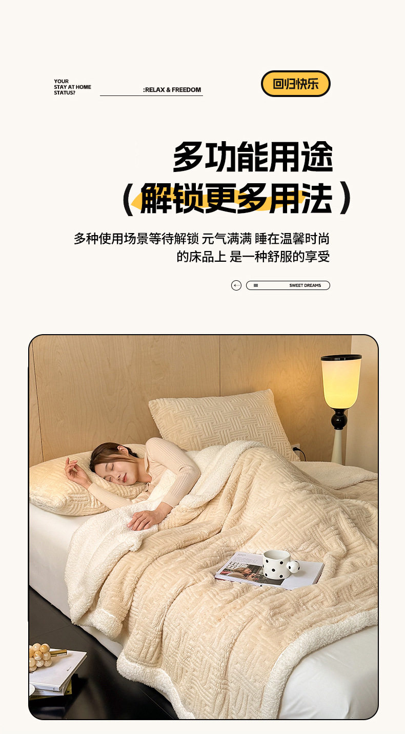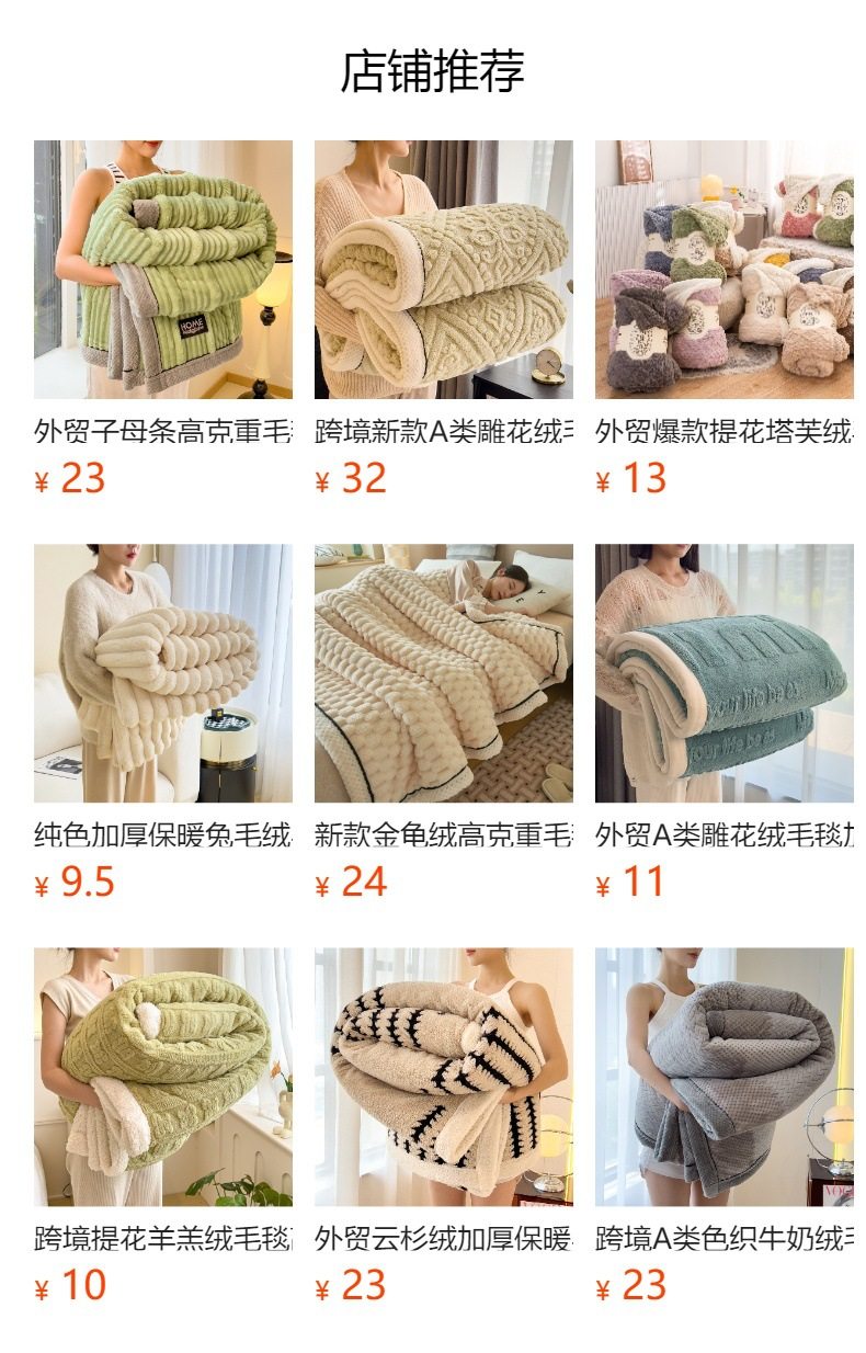 | Size specifications | Shawl blanket: 100*150cm,Children's blanket: 120*200cm,Single blanket: 150*200cm,Single enlarged blanket: 180*200cm,Double blanket: 200*230cm |