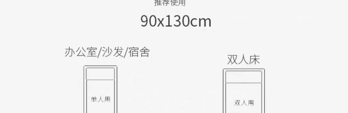 | Size specifications | 90*130cm single blanket about 1.2kg,130*180cm single blanket about 2.5kg,180*200cm single blanket about 3.4kg,50*50cm pillow (including core) about 0.7kg each |