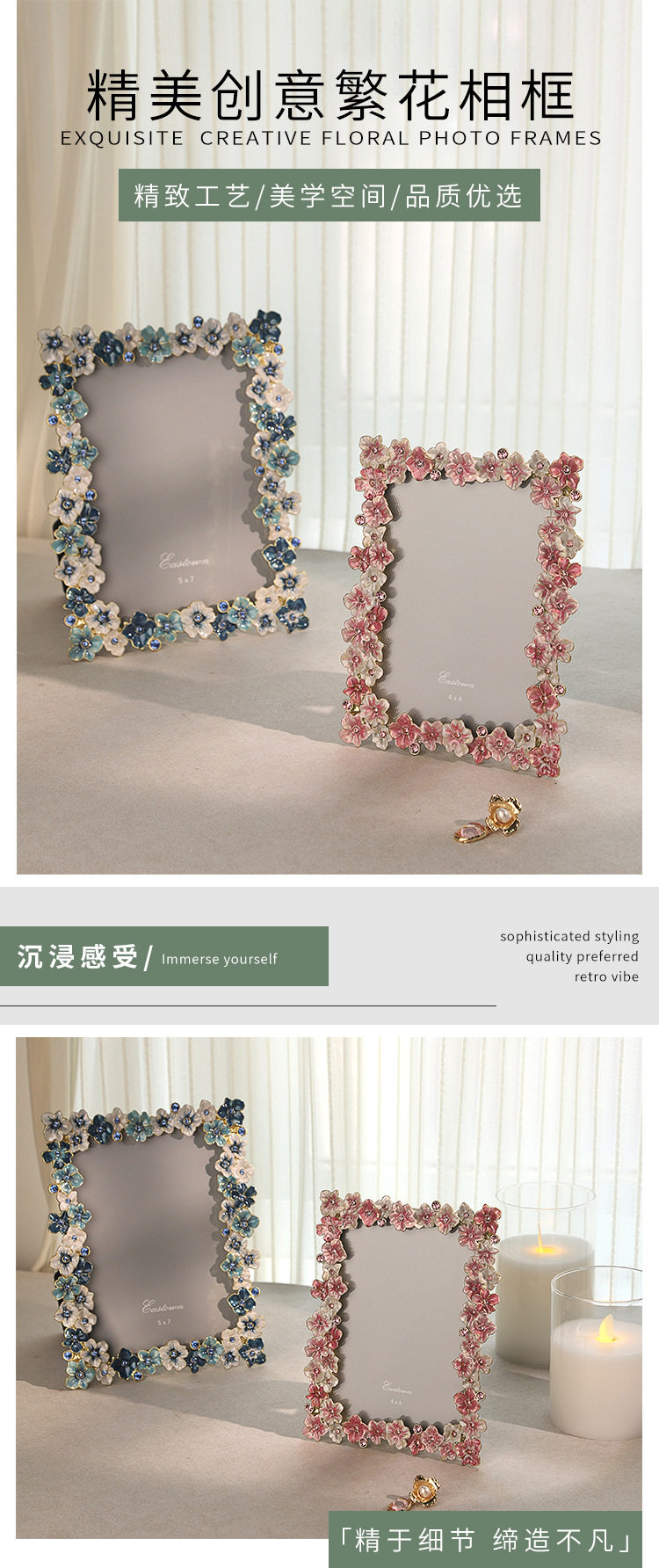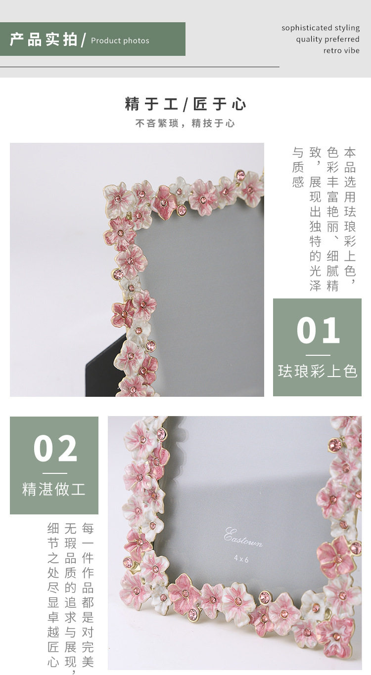 European-style Light Luxury Diamond-encrusted Photo Frame Table 6-inch French Flower High-end Romantic Creative Wedding Photo Frame