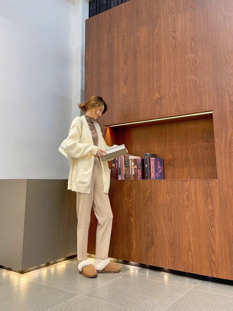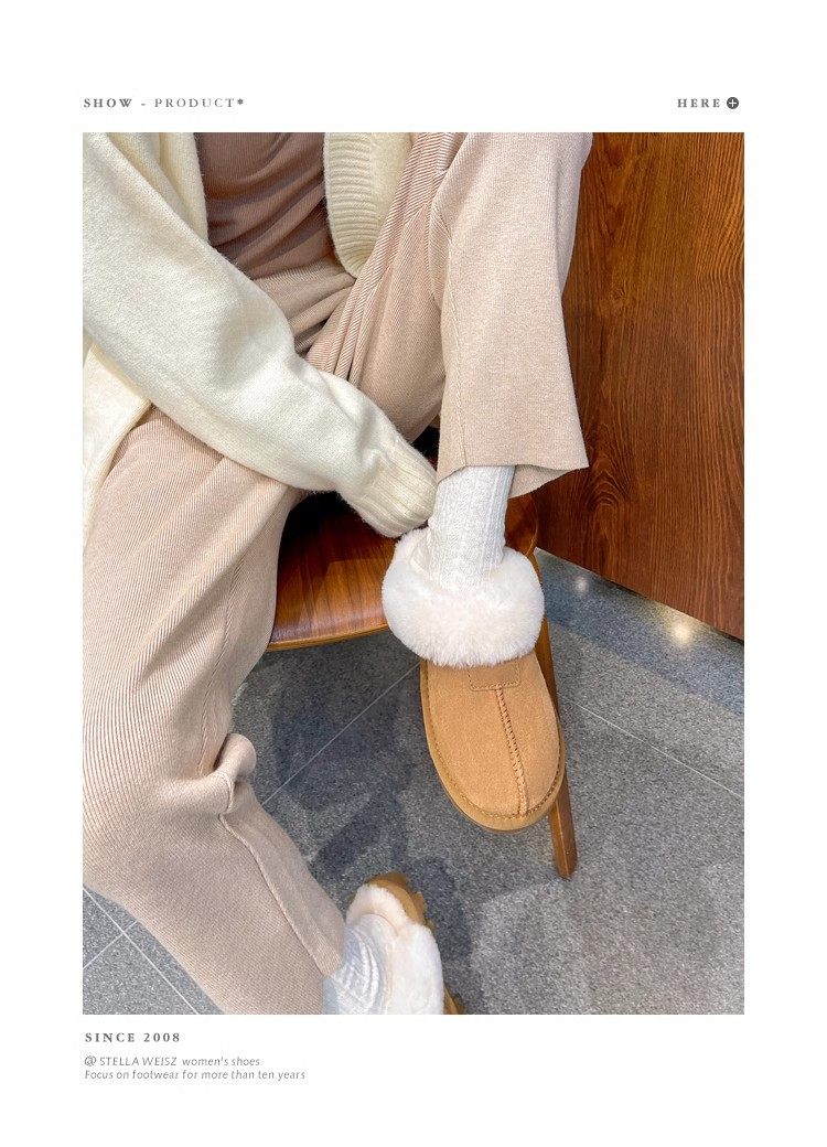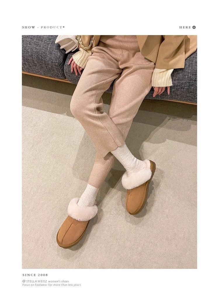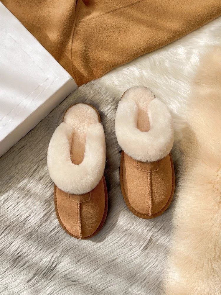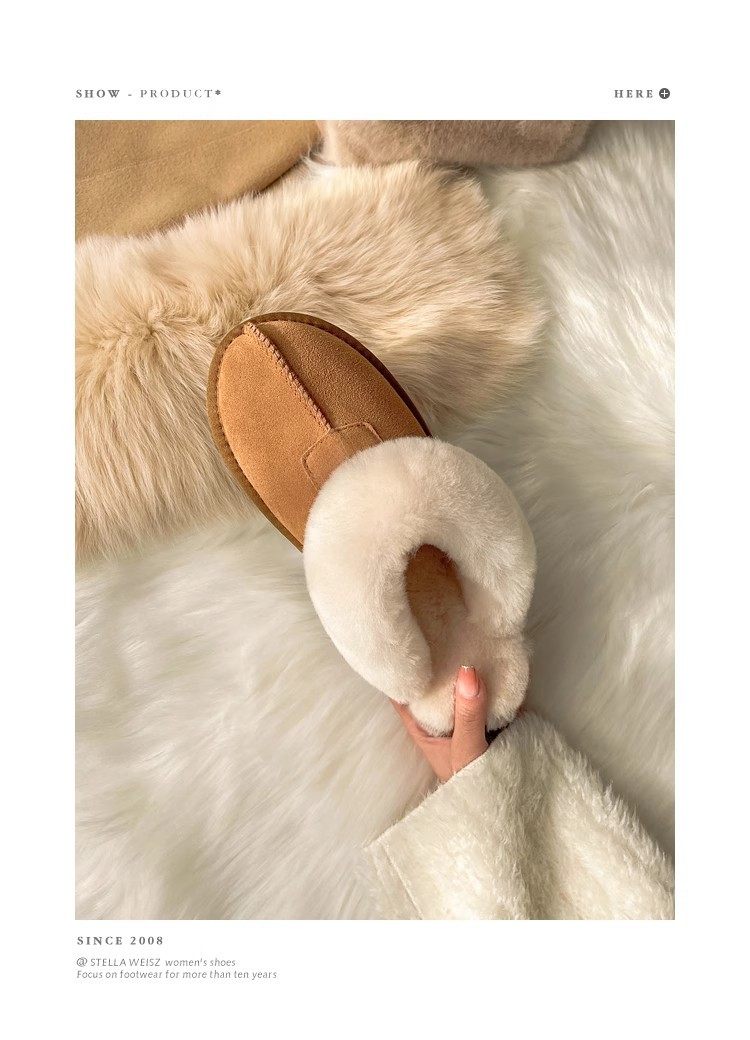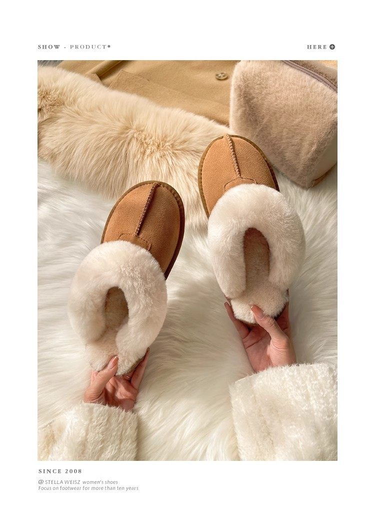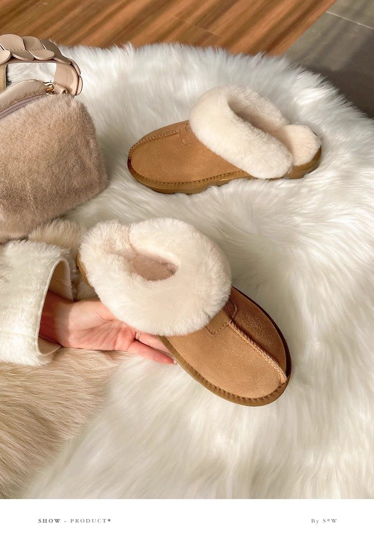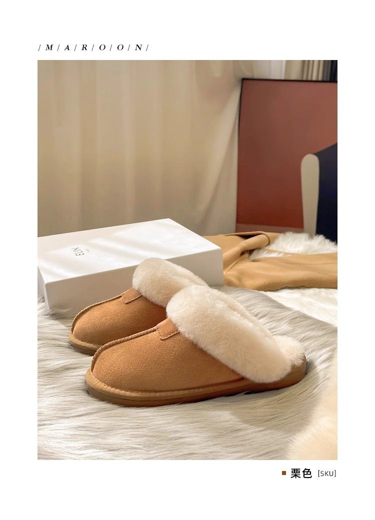 Henan Sangpo Sheepskin One-piece Flat Bottom Baotou Mao Wool Slippers for Men and Women fleece-lined Warm Cotton Slippers