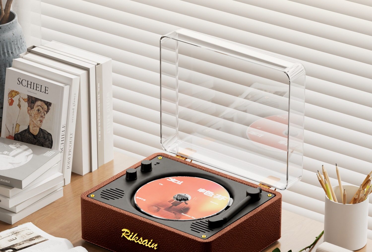 Cross-border leather retro CD player company creative gift album CD player Bluetooth home audio