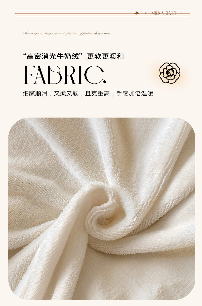 | Flower type | Camellia milk white + warm khaki [velvet and thickened, skin-friendly and warm],Camellia medium gray + warm khaki [velvet and thickened, skin-friendly and warm],Camellia blue + light gray [velvet and thickened, skin-friendly and warm],Camellia milk white + light pink [velvet and thickened, skin-friendly and warm],Camellia milk white + gray green [velvet and thickened, skin-friendly and warm],Camellia sapphire blue + warm khaki [velvet and thickened, skin-friendly and warm],Camellia light pink + gray powder [velvet and thickened, skin-friendly and warm],Camellia milk white + light blue [velvet and thickened, skin-friendly and warm],Double combination milk white + milk tea coffee [velvet and thickened, skin-friendly and warm],Double spell light gray + beige [velvet and thickened, skin-friendly and warm],Double spell light aqua + olive green [velvet and thickened, skin-friendly and warm],Double rice camel + milk tea coffee [velvet and thickened, skin-friendly and warm],Double hole blue + light gray [velvet and thickened, skin-friendly and warm],Double spell light purple + jade color [velvet and thickened, skin-friendly and warm],Double spelled jade + light gray [velvet and thickened, skin-friendly and warm],Light feather—hyacinth purple [velvet and thickened, skin-friendly and warm],Waffle—bentley blue [velvet and thickened, skin-friendly and warm],Double combination milk white + light purple [velvet and thickened, skin-friendly and warm],Double spell orange + light gray [velvet and thickened, skin-friendly and warm],Light feather—milk coffee color [velvet and thickened, skin-friendly and warm],Light feather—green frost green [velvet and thickened, skin-friendly and warm],Light feather—highly gray [velvet and thickened, skin-friendly and warm],Light feather—autumn blue [velvet and thickened, skin-friendly and warm],Light feather—shell white [velvet and thickened, skin-friendly and warm],Light feather—galaxy gray [thick velvet, skin-friendly and warm],Light feather—peach pink [velvet and thickened, skin-friendly and warm],Simple—peach pink [velvet and thickened, skin-friendly and warm],Simple - milk coffee color [velvet and thickened, skin-friendly and warm],Simple—turquoise green [velvet and thickened, skin-friendly and warm],Simple - taro purple [velvet and thickened, skin-friendly and warm],Simple - moonlight blue [velvet and thickened, skin-friendly and warm],Simple - emma orange [velvet and thickened, skin-friendly and warm],Simple—high-grade gray [velvet and thickened, skin-friendly and warm] |