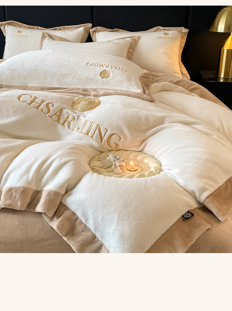Winter thick milk velvet bed four-piece set 2024 new coral flannel quilt cover bed sheet three-piece set