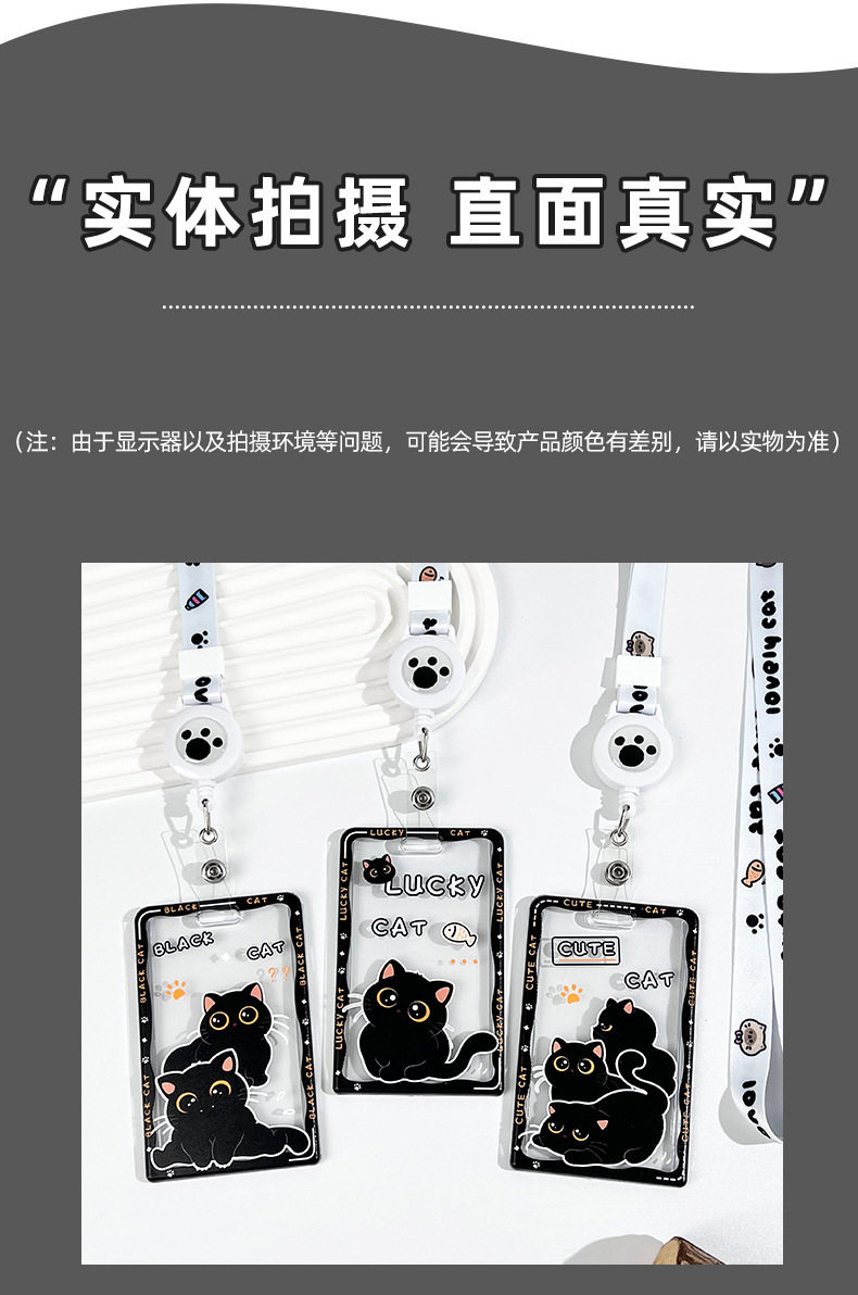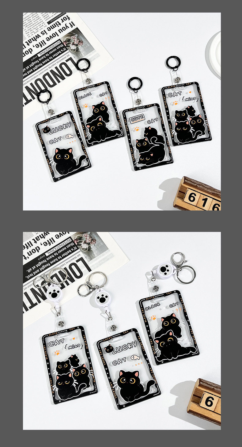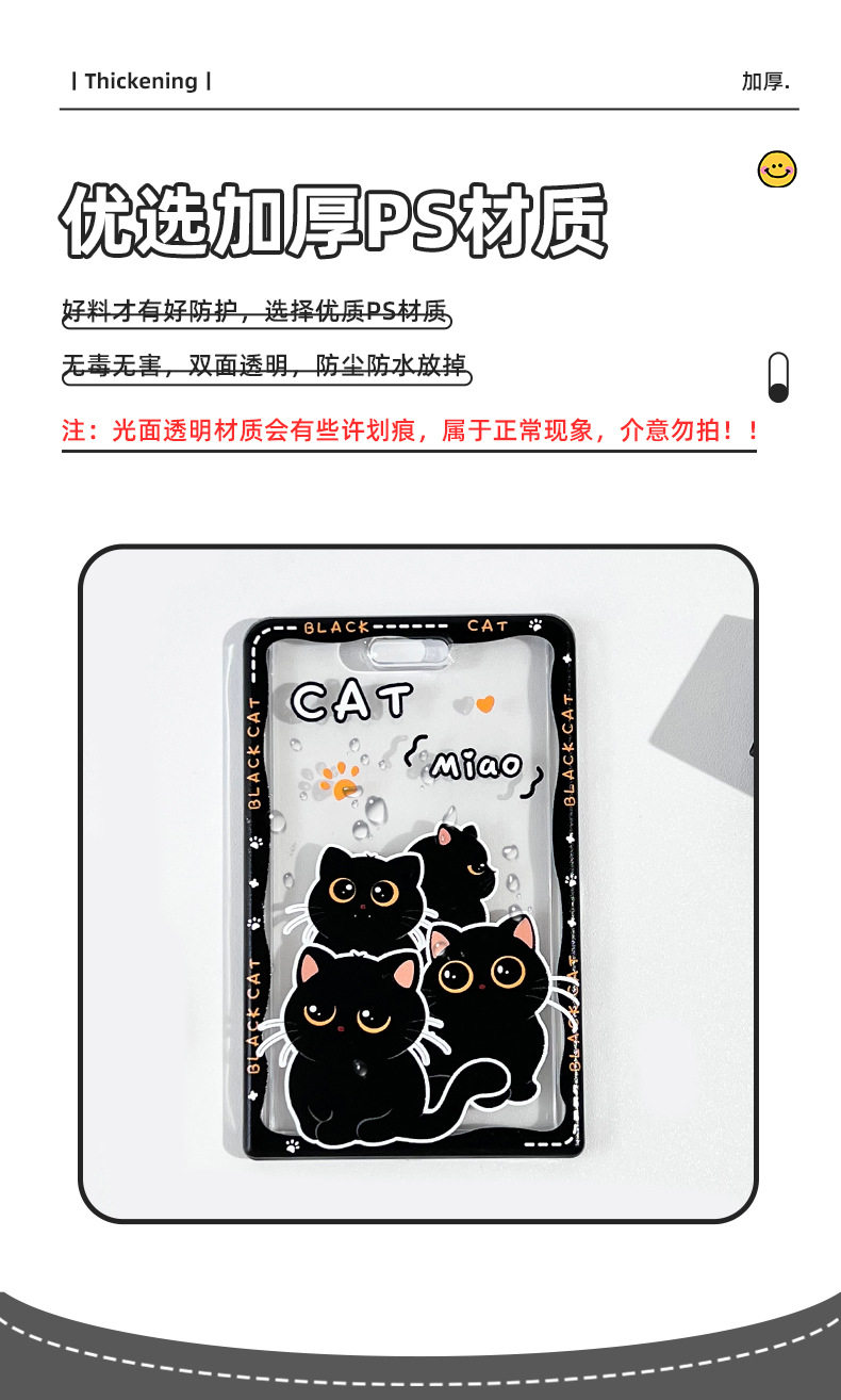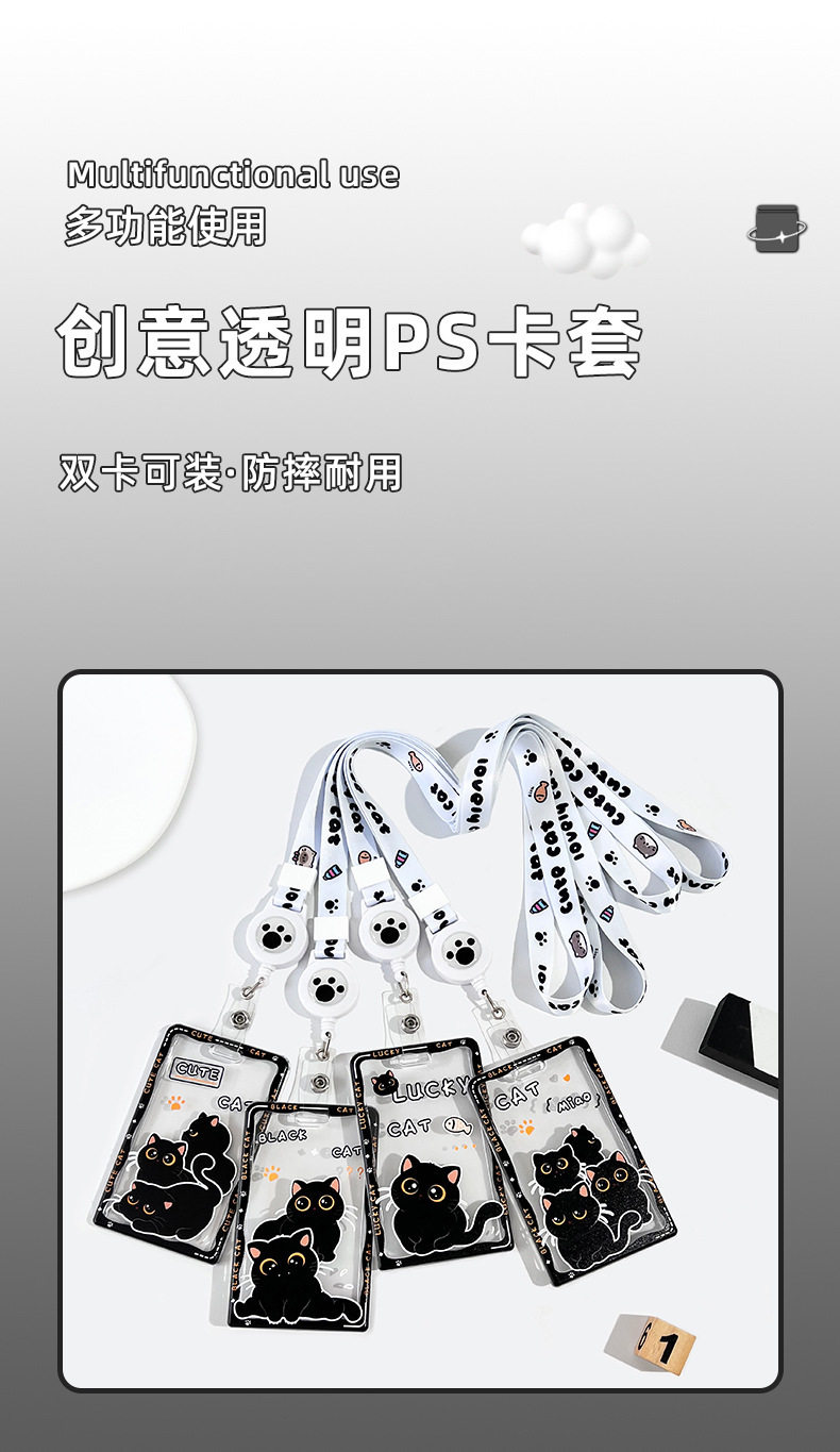 Little Red Book Cute Little Black Cat Card Case Cartoon Slide Cover Anti-lost Campus Card Meal Card Bag Student Neck Keychain