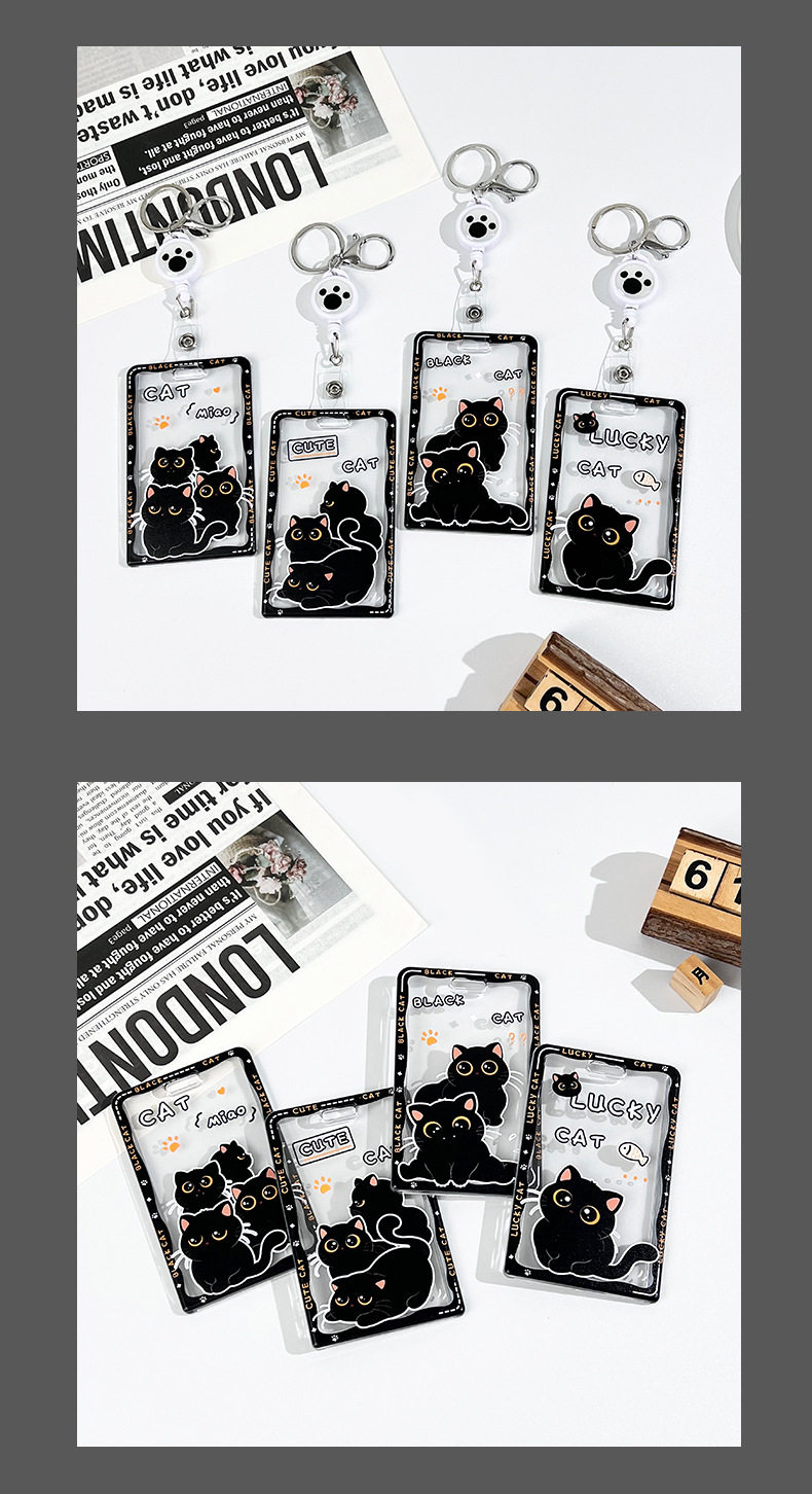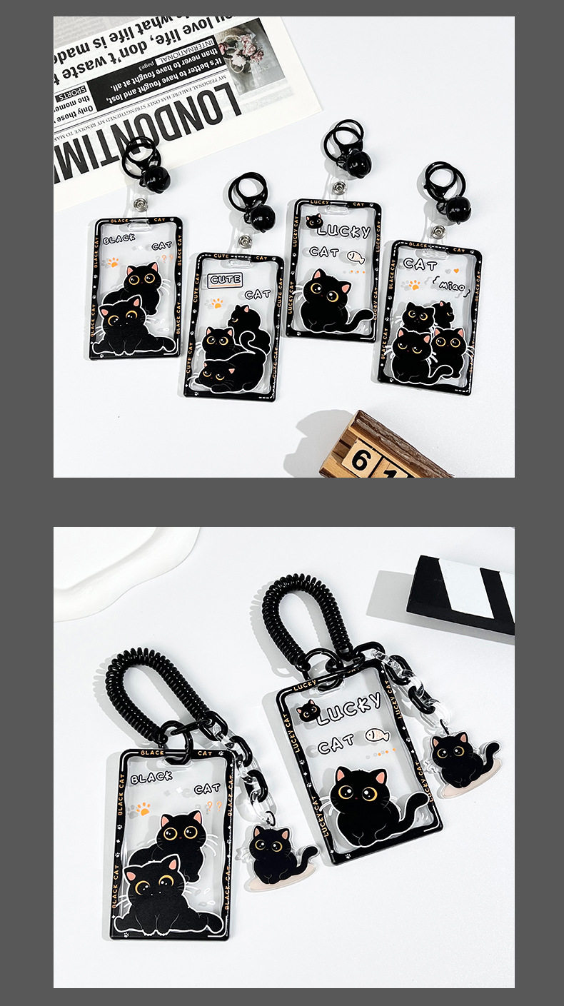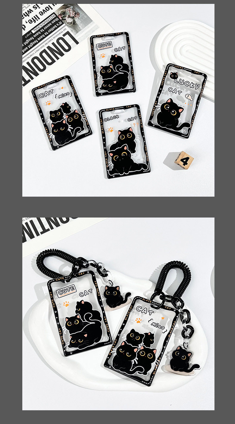 Little Red Book Cute Little Black Cat Card Case Cartoon Slide Cover Anti-lost Campus Card Meal Card Bag Student Neck Keychain
