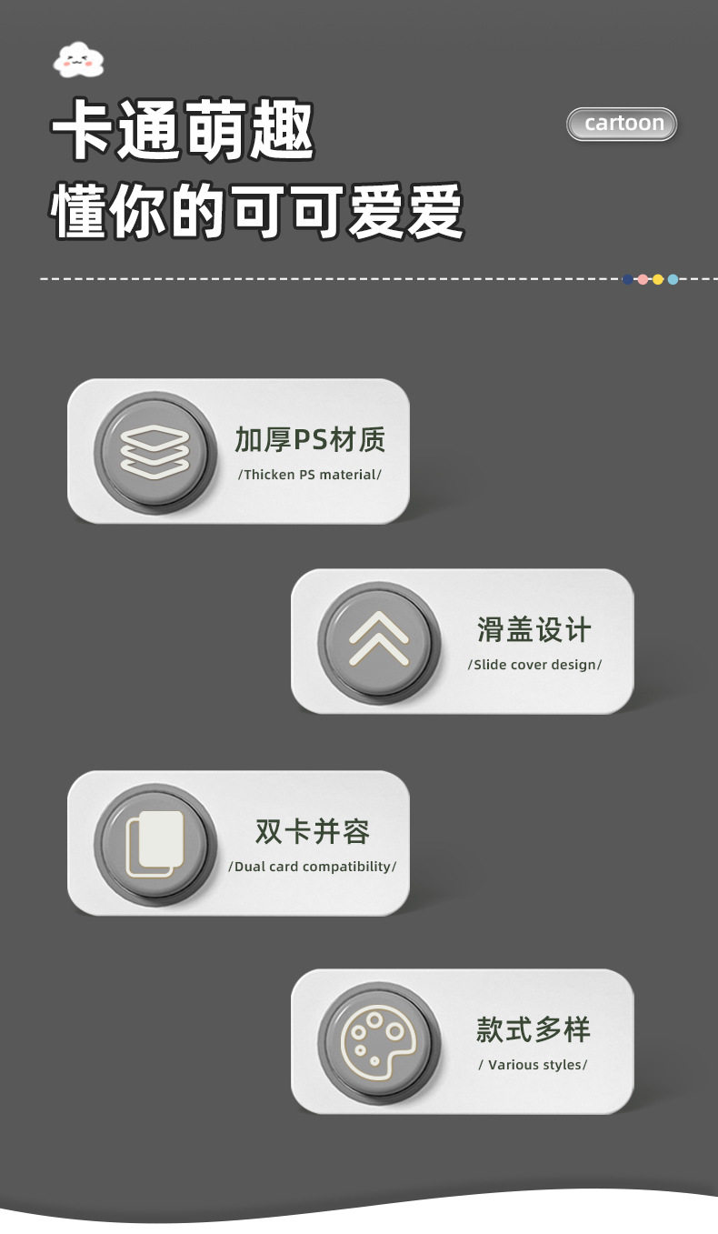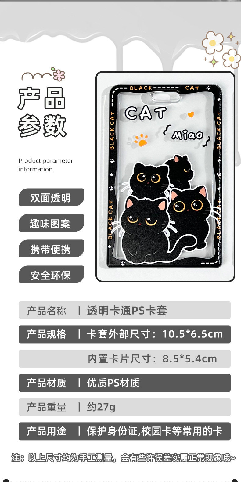 | Specifications | Transparent sliding cover - a cat with black frame + black double circle spring rope (black chain + acrylic cat no. 2),Transparent sliding cover - two cats with black frame + black double circle spring rope (black chain + acrylic cat no. 2),Transparent sliding cover - three cats with black frame + black double circle spring rope (black chain + acrylic cat no. 2),Transparent sliding cover - four cats in black frame + black double circle spring rope (black chain + acrylic cat no. 2),Transparent sliding cover - a cat with black frame + english cat head telescopic long lanyard (black cat claw),Transparent sliding cover - black frame with two cats + english cat head telescopic long lanyard (black cat claw),Transparent sliding cover - three cats with black frame + english cat head telescopic long lanyard (black cat claw),Transparent sliding cover - four cats in black frame + english cat head telescopic long lanyard (black cat claw),Transparent sliding cover - a cat with black frame + white easy-pull buckle (black cat claw),Transparent sliding cover - two cats with black frame + white easy-pull buckle (black cat claw),Transparent sliding cover - three cats with black frame + white easy-pull buckle (black cat claw),Transparent sliding cover - four cats with black frame + white easy-pull buckle (black cat claw),Transparent sliding cover - a cat with black frame + black bell lobster clasp,Transparent sliding cover - two cats with black frame + black bell lobster clasp,Transparent sliding cover - three cats with black frame + black bell lobster clasp,Transparent sliding cover - four cats in black frame + black bell lobster clasp,Transparent sliding cover - a cat with black frame + 2.7 leather strip black keychain,Transparent sliding cover - two cats with black frame + 2.7 leather strip black keychain,Transparent sliding cover - three cats with black frame + 2.7 leather strip black keychain,Transparent sliding cover - four cats with black frame + 2.7 leather strip black keychain,Transparent sliding cover - a cat with black frame (no accessories),Transparent sliding cover - black frame two cats (no accessories),Transparent sliding cover - three cats with black frame (no accessories),Transparent sliding cover - four cats with black frame (no accessories) |