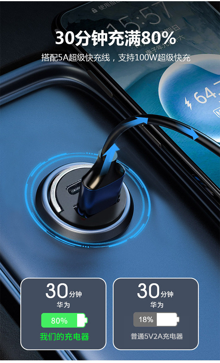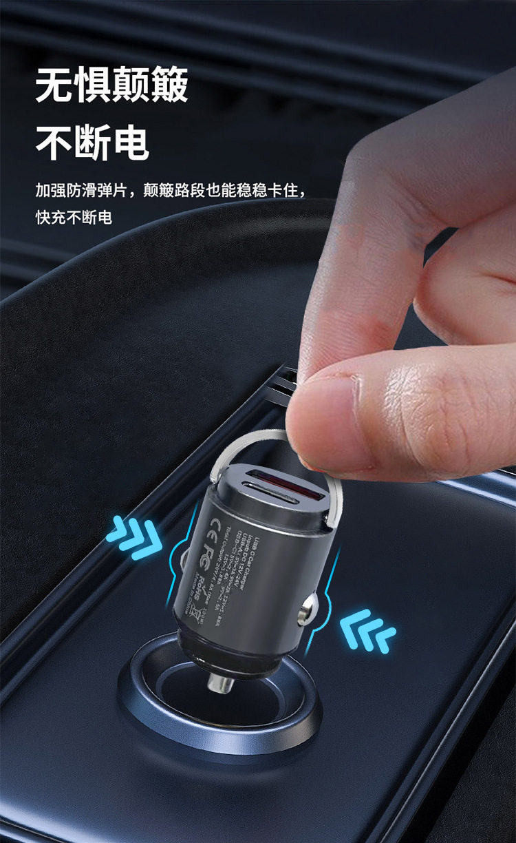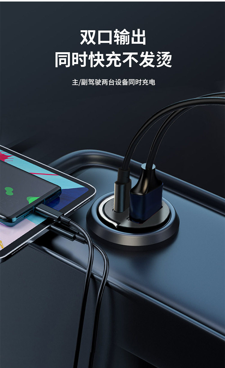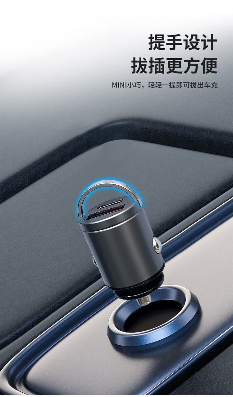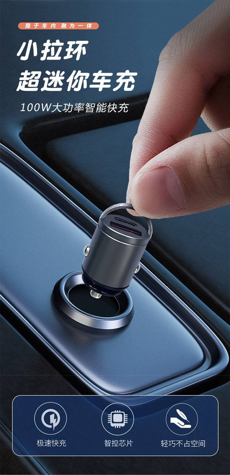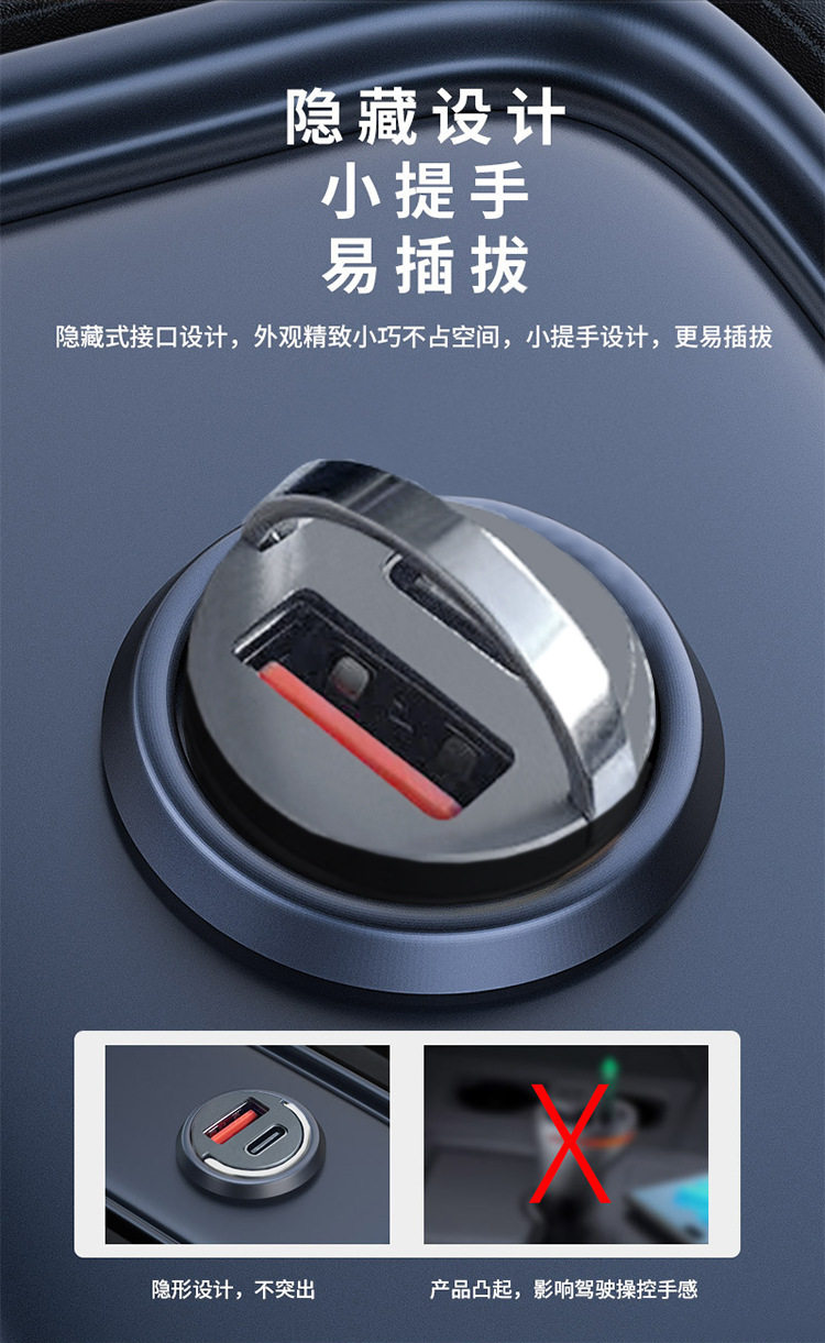 200W Mini Invisible Car Charger Universal Hidden Car Charger Super Fast Charge Cigarette Light USB Charging Head