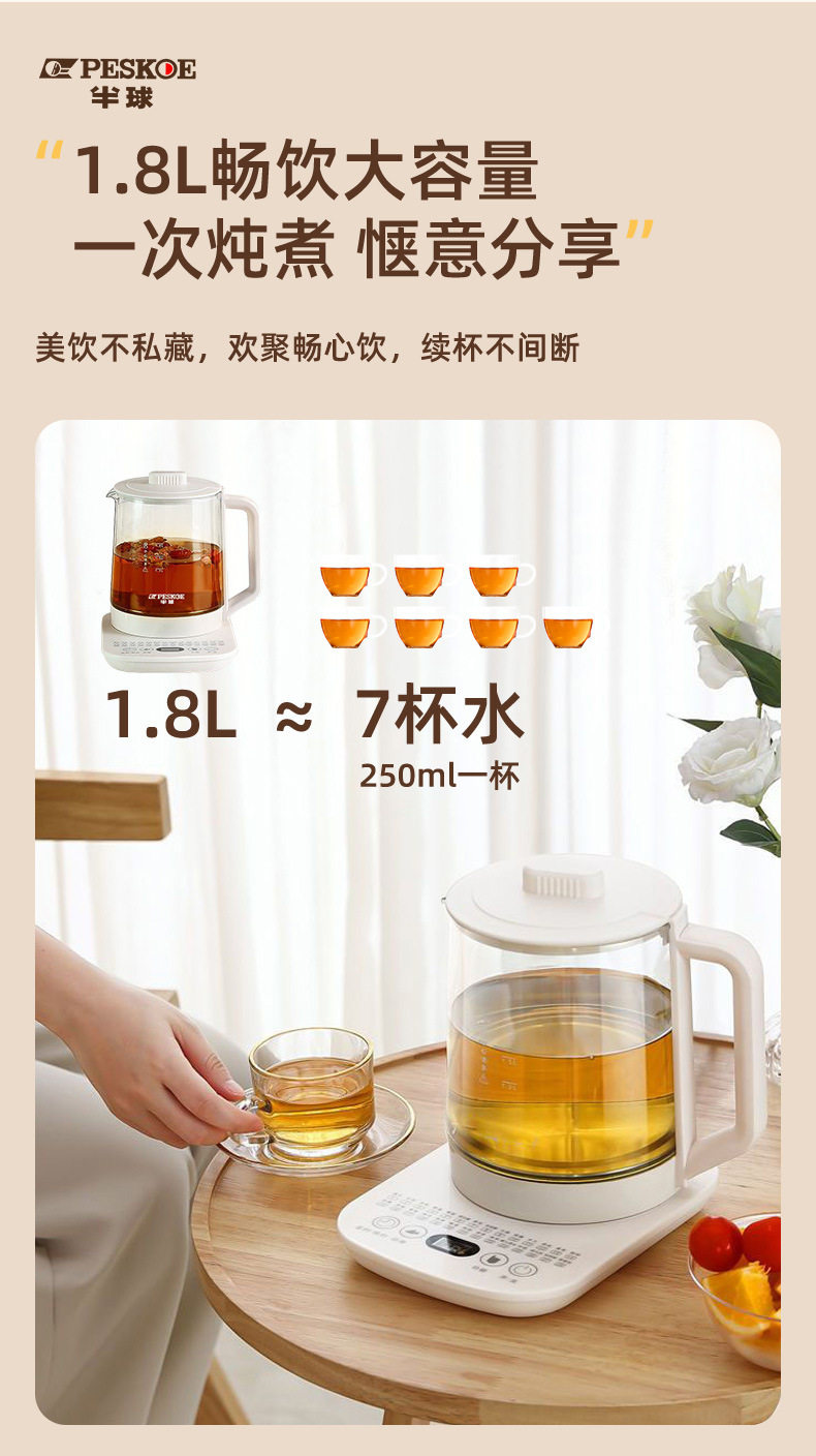 Hemisphere Household 1.8 Litres Health Pot 2-3 People Multifunctional Heat Preservation Kettle Office Boil Tea Scented Tea