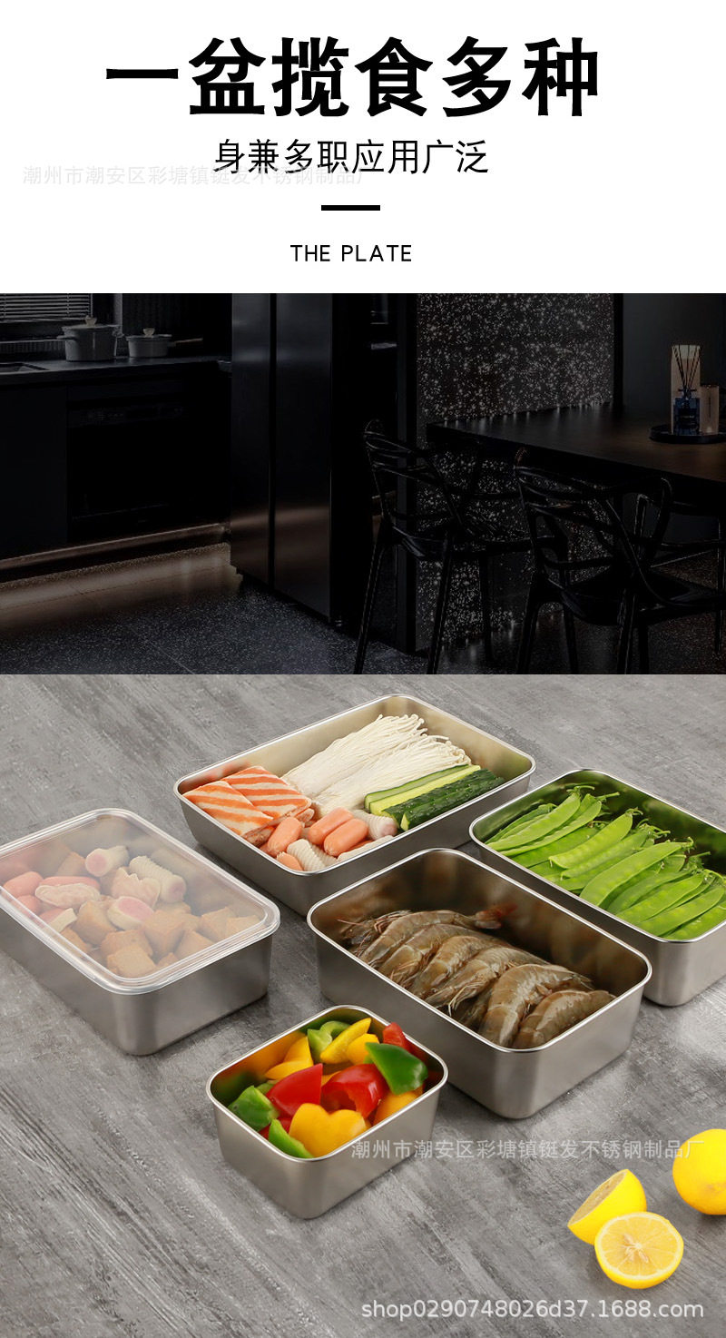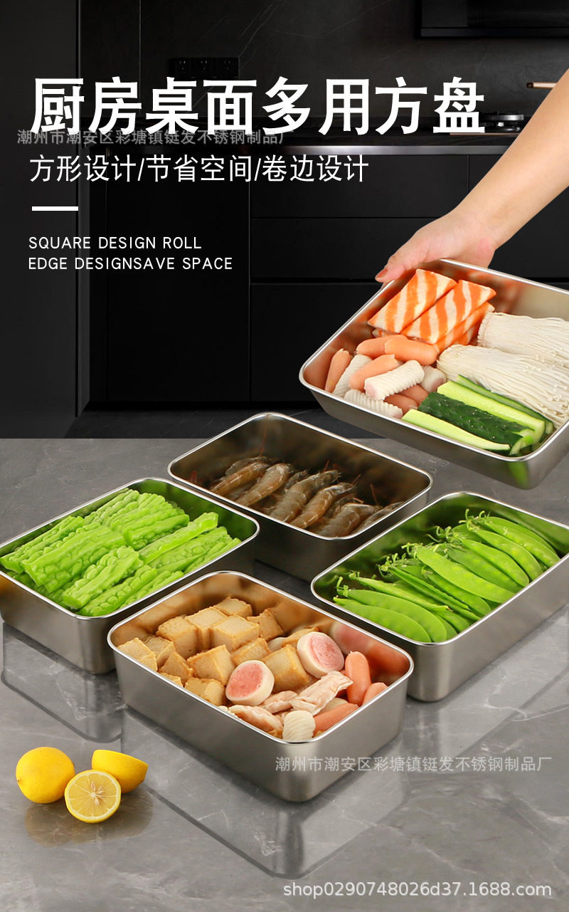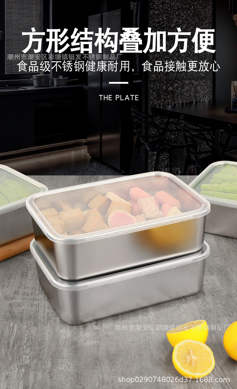 Processing and Customizing Stainless Steel Square Plate Cross-Border Towel Plate Food Sample Flavor Box Refrigerator Packaging Storage Crisper
