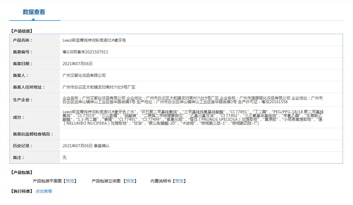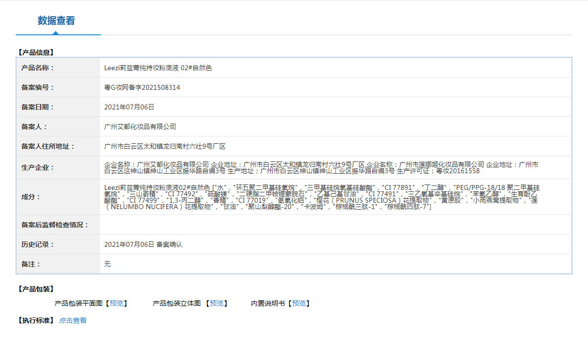 | Extra cosmetics registration certificate number | Guangdong g makeup net preparation2021507913 |