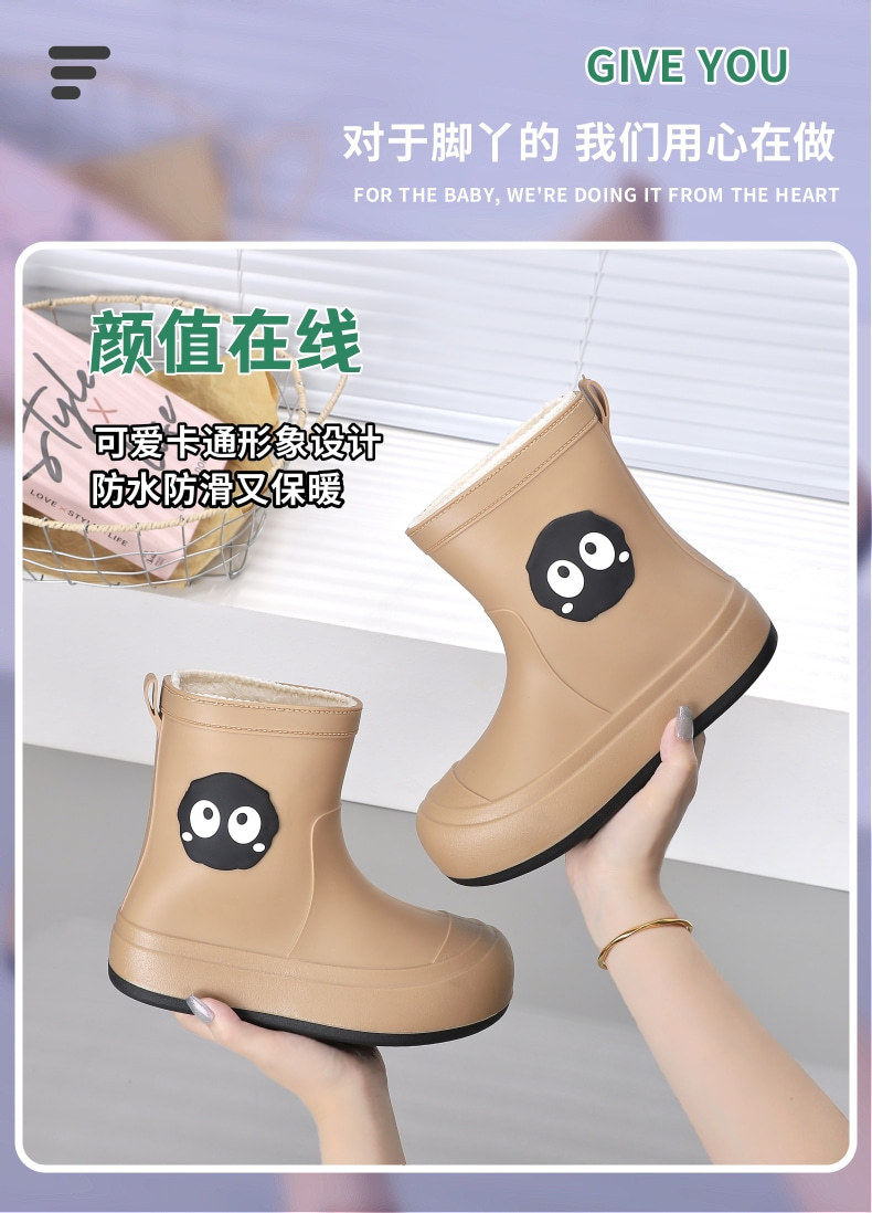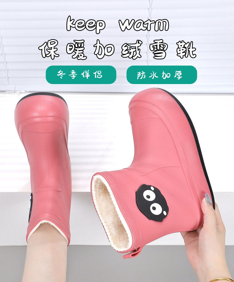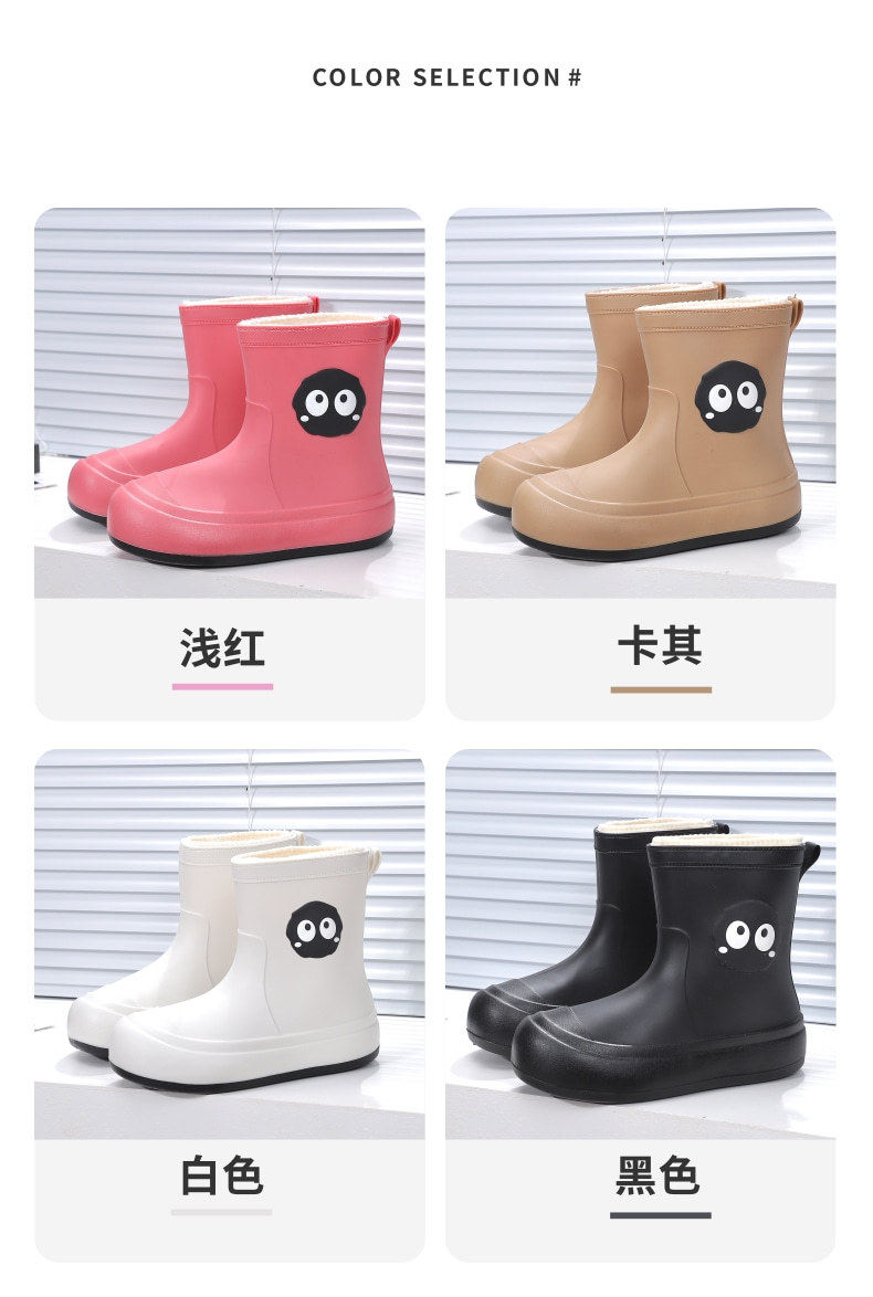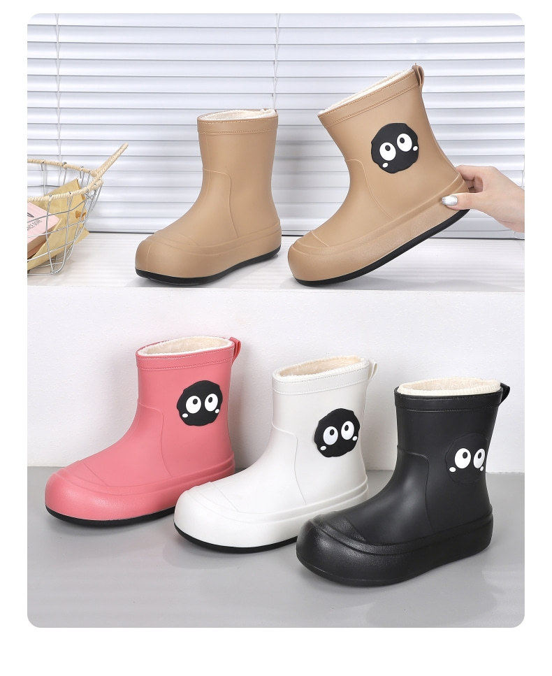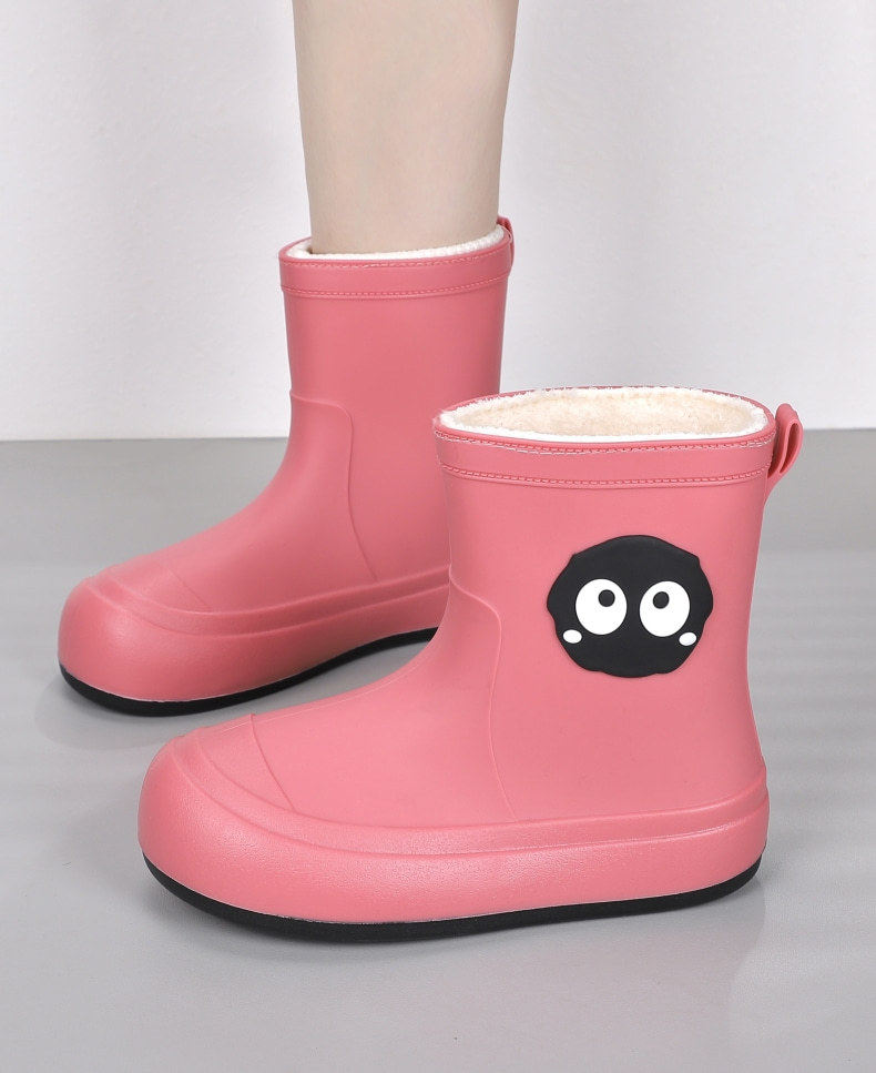 Cute Students Rain Shoes Personalized fleece-lined Water Shoes Women's Four Seasons Creative Soft Sole Non-slip Waterproof Large Children's Rain Shoes for Women