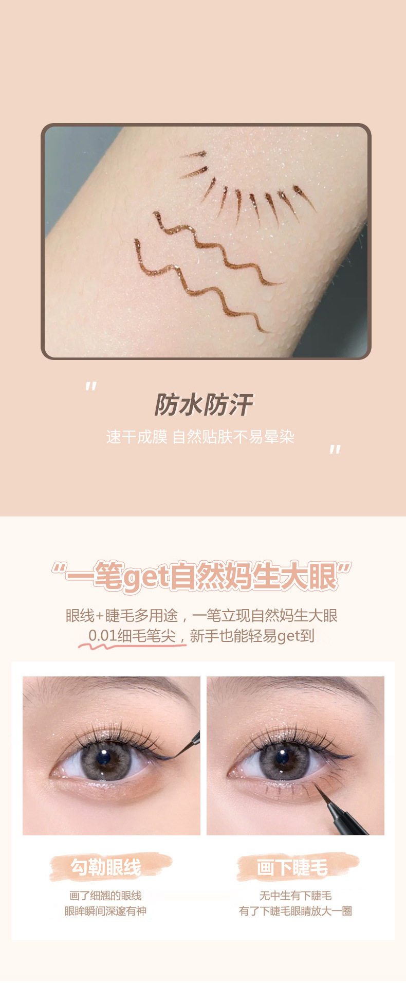 WODWOD Soft Silky Extremely Fine Eyeliner Pen for Eyelashes and Silkworm Lying One Multi-use Waterproof Sweat-proof Eyeliner