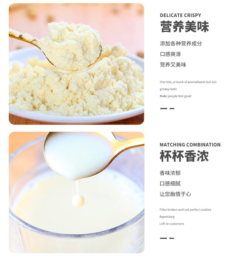 Packaging specifications Vitamin type soy milk powder*25 pieces,Vitamin type sugar reduction bean milk powder*25 pieces,Classic mellow soy milk powder*25 pieces,No added sucrose soy milk powder*25 pieces,Choose your own flavor*25 bags