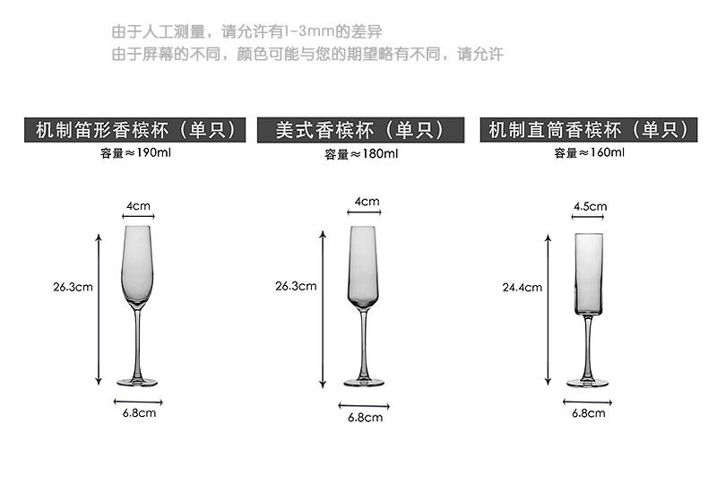 | Color | Mechanism glass flute champagne glass (single),Mechanism glass American champagne glass (single),Mechanism glass straight champagne glass (single),Crystal 26CM champagne glass single,Thin waist champagne glass single,New Best Friend Crystal Champagne Cup Single,Crystal American champagne glass single |