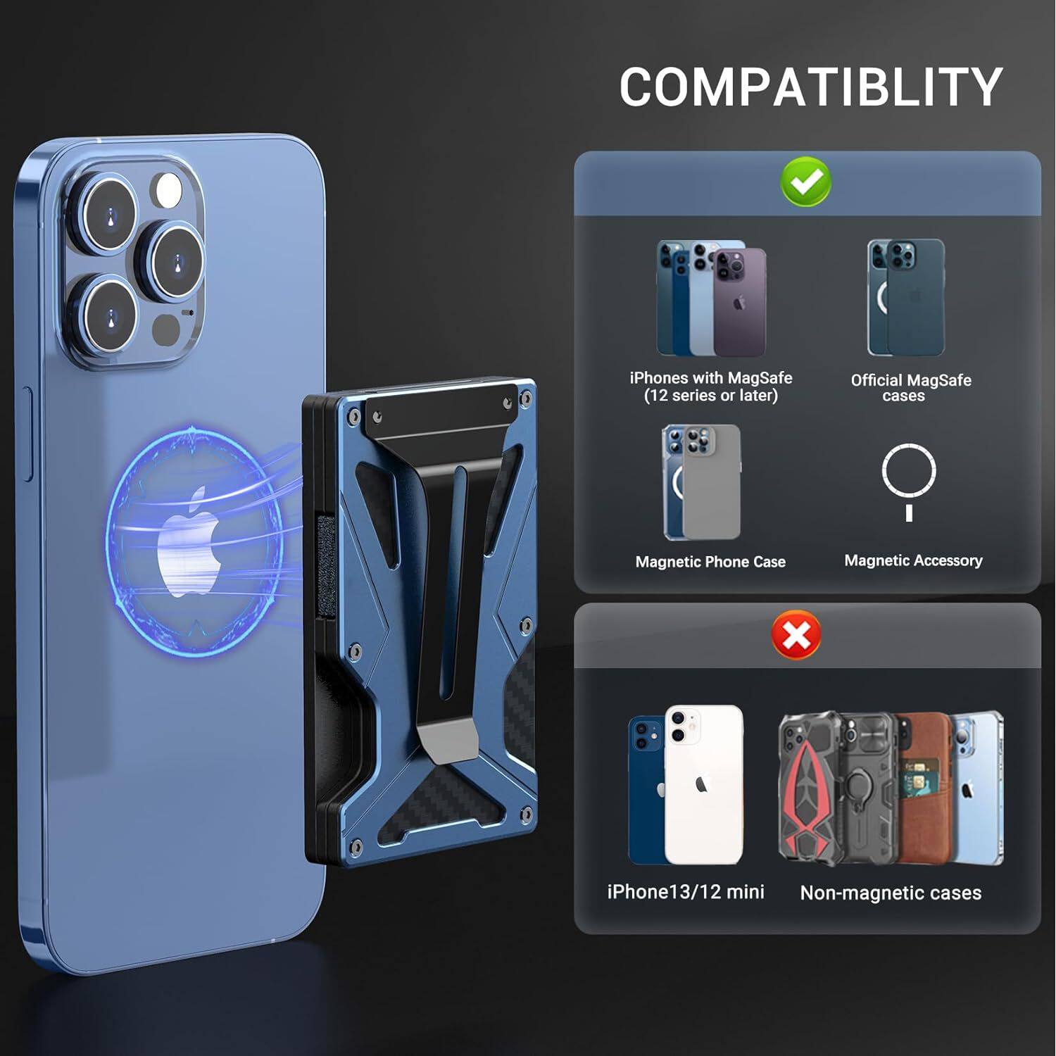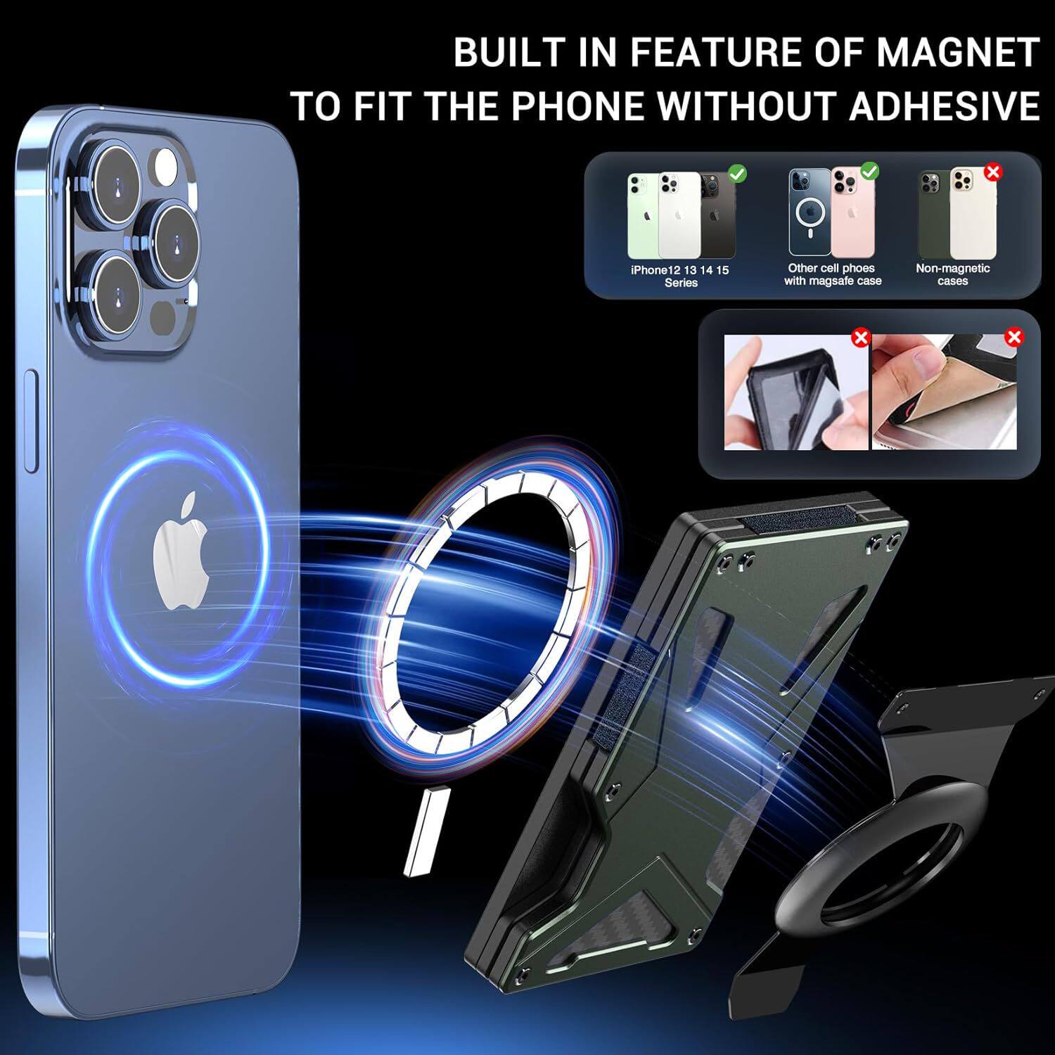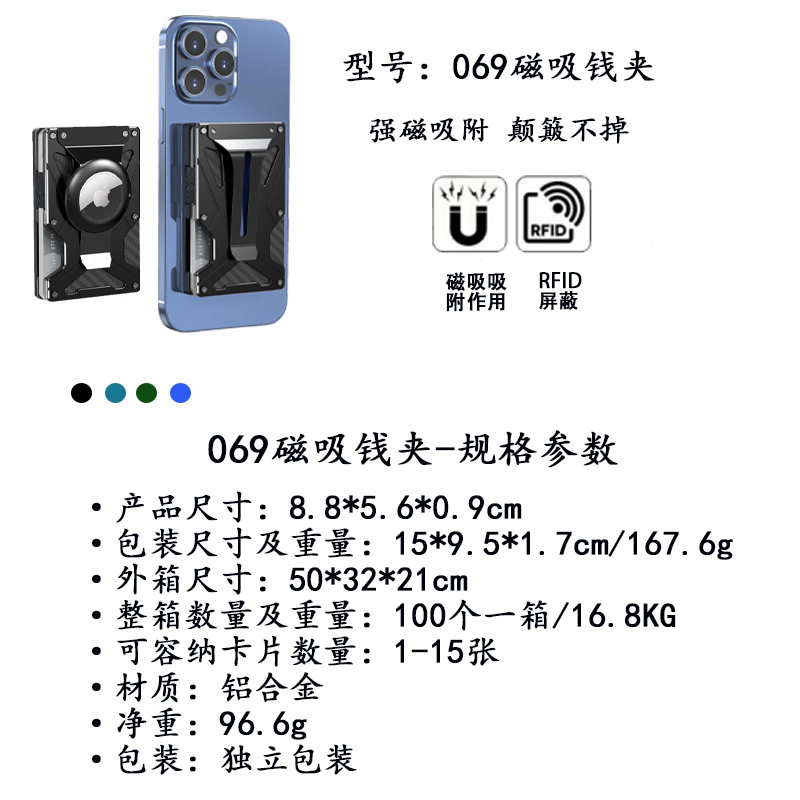 New built-in magnetic metal card clip magsafe mobile phone magnetic air tag card bag RFID anti-theft brush function