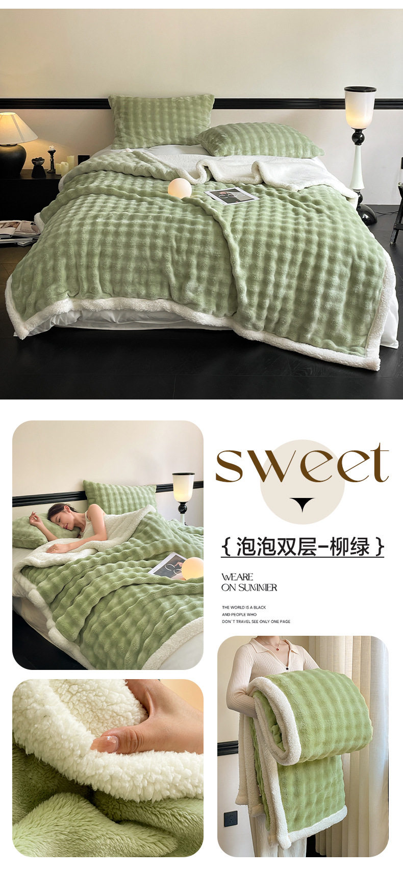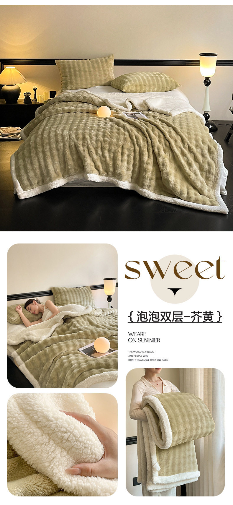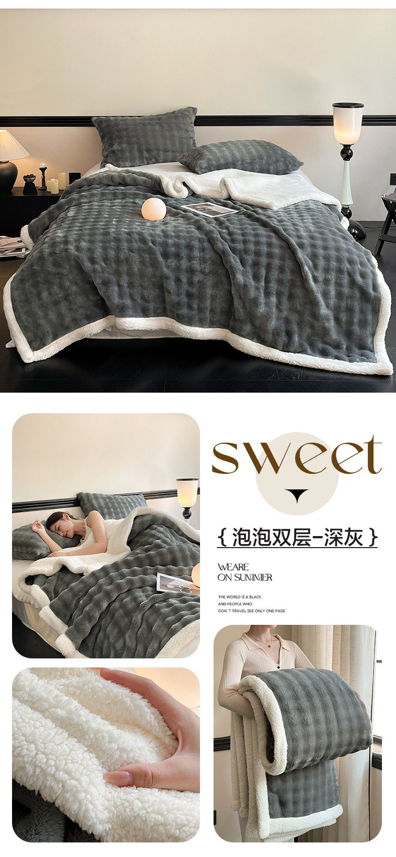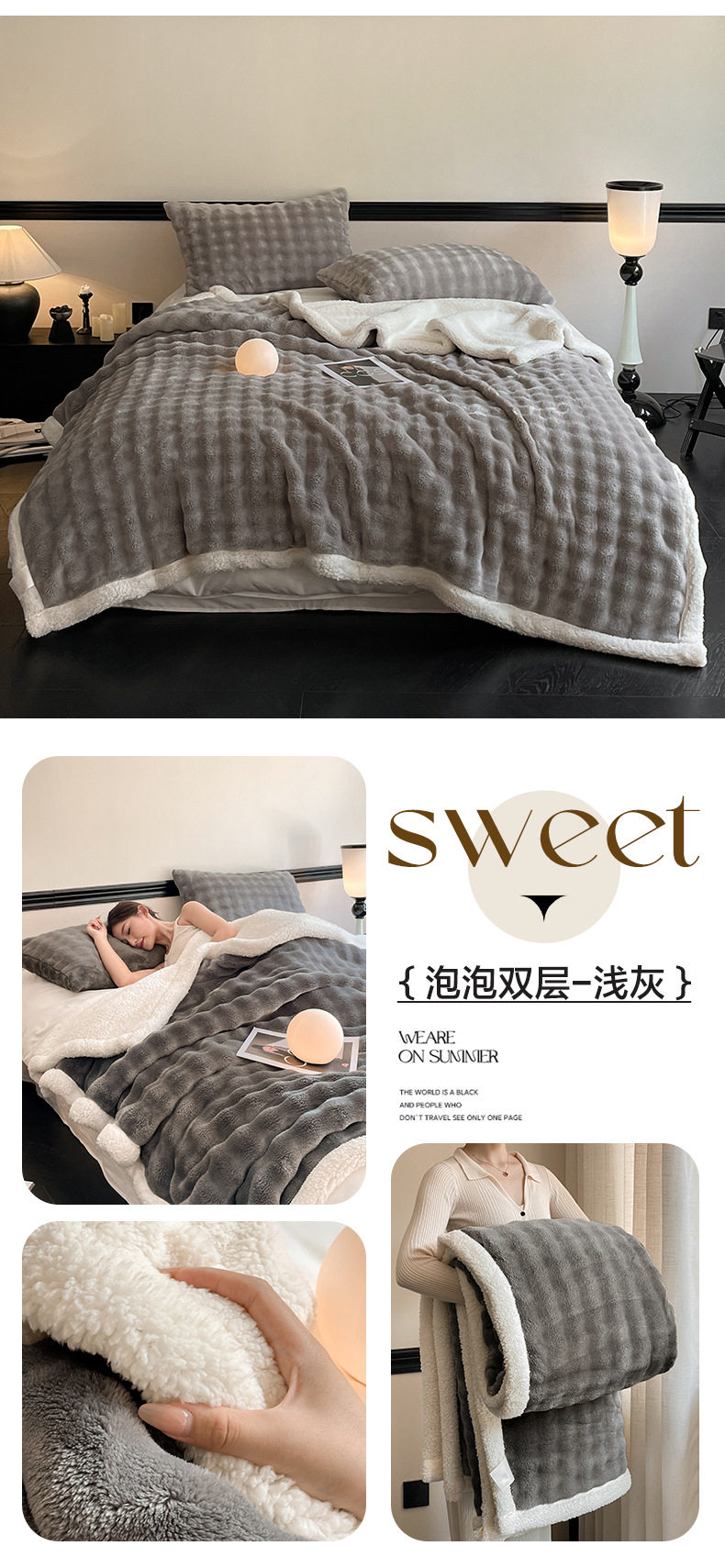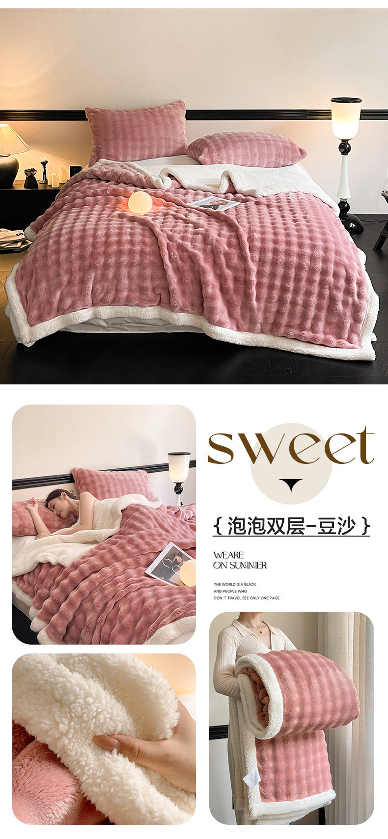 Double-layer Thickened Warm Bubble Rabbit Velvet Blanket Flannel Blanket Solid Color Lamb Velvet Blanket Sofa Nap Blanket
