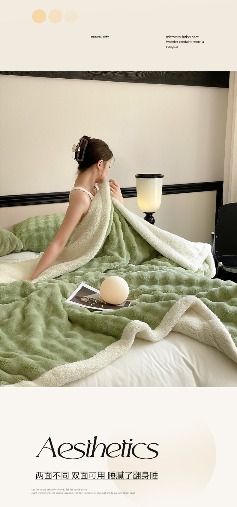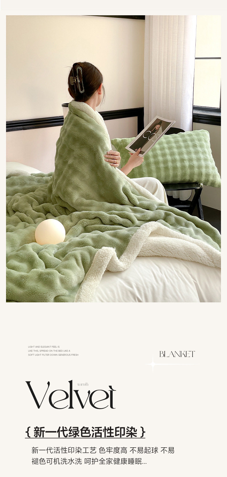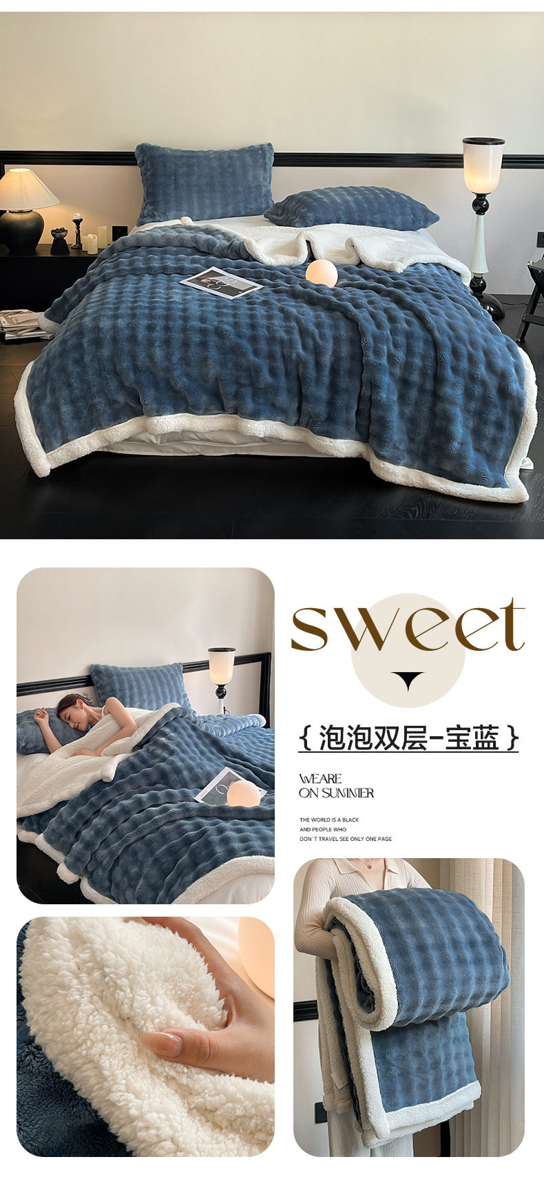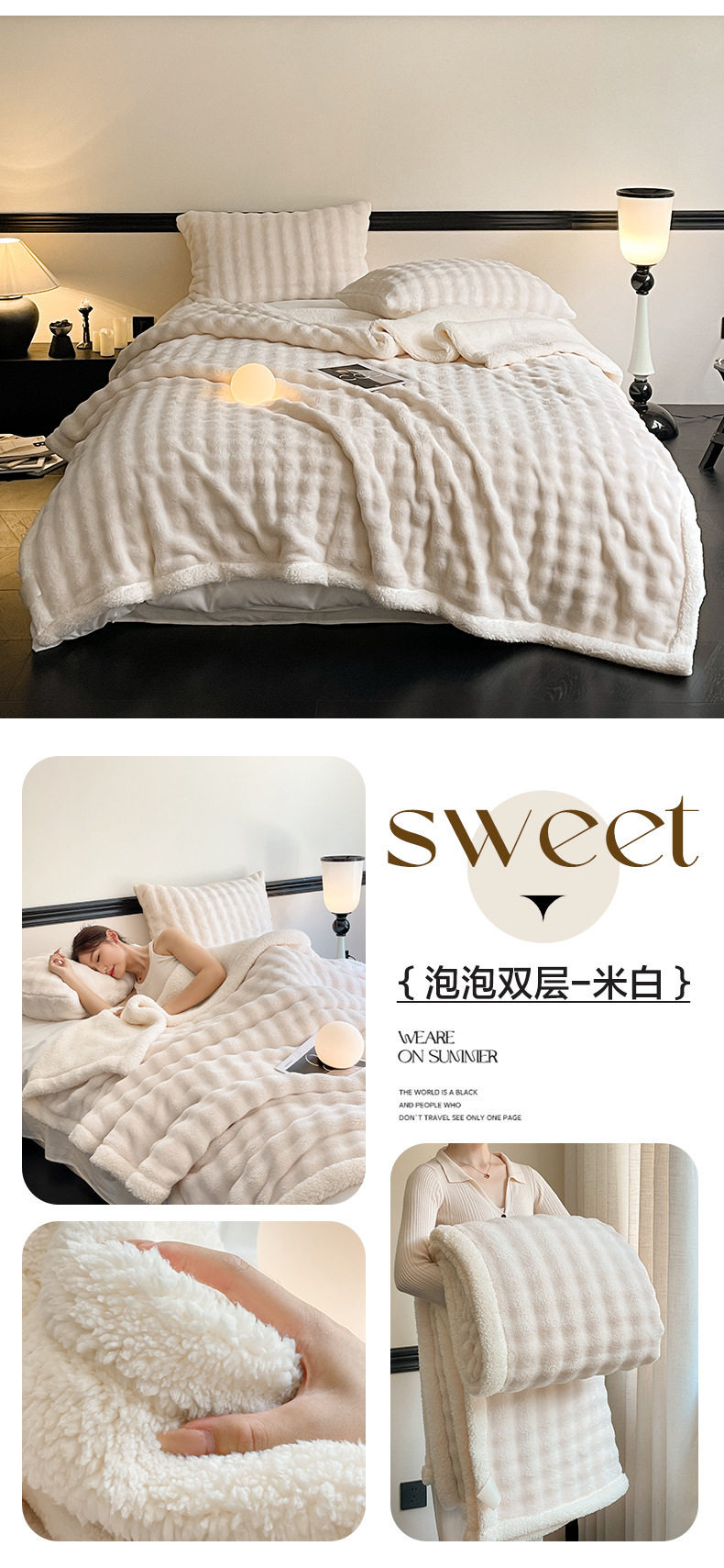 Double-layer Thickened Warm Bubble Rabbit Velvet Blanket Flannel Blanket Solid Color Lamb Velvet Blanket Sofa Nap Blanket