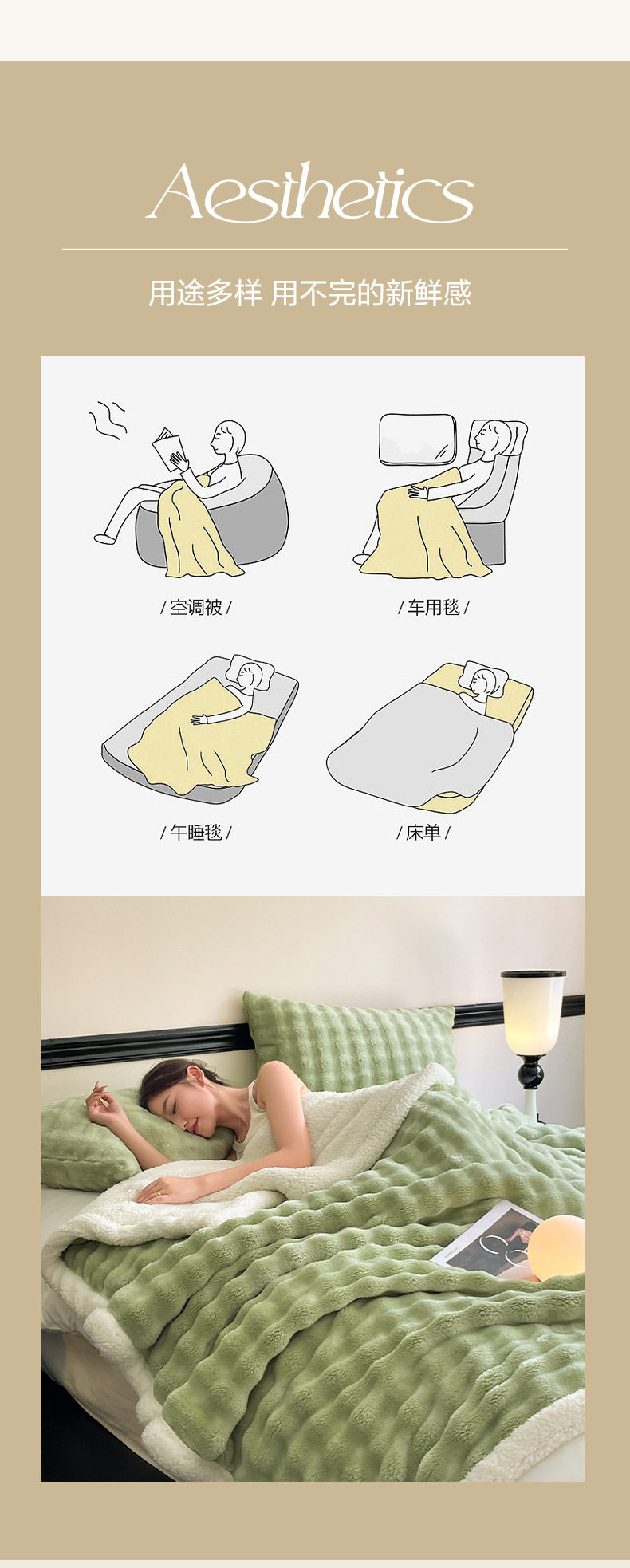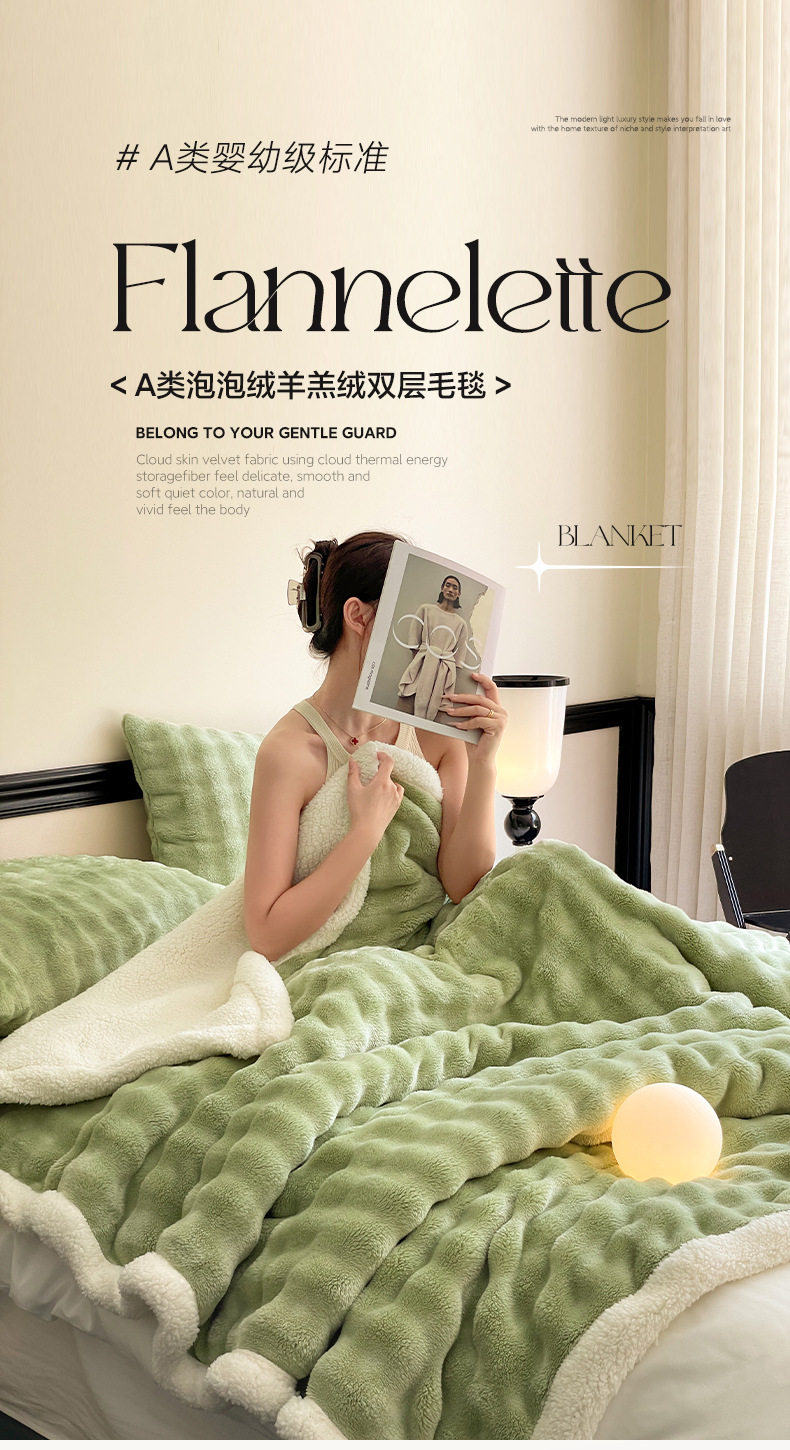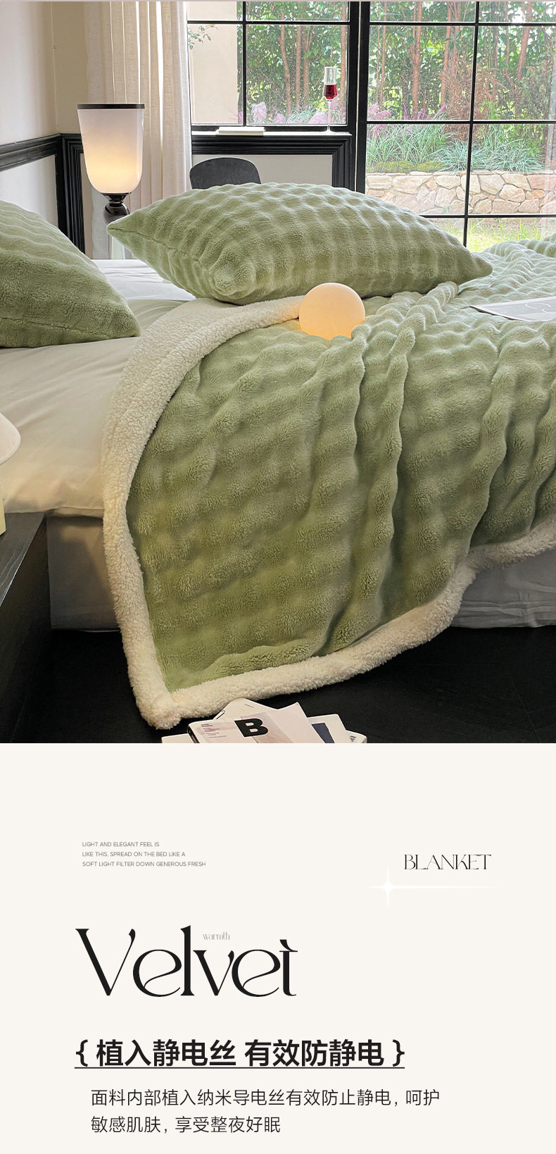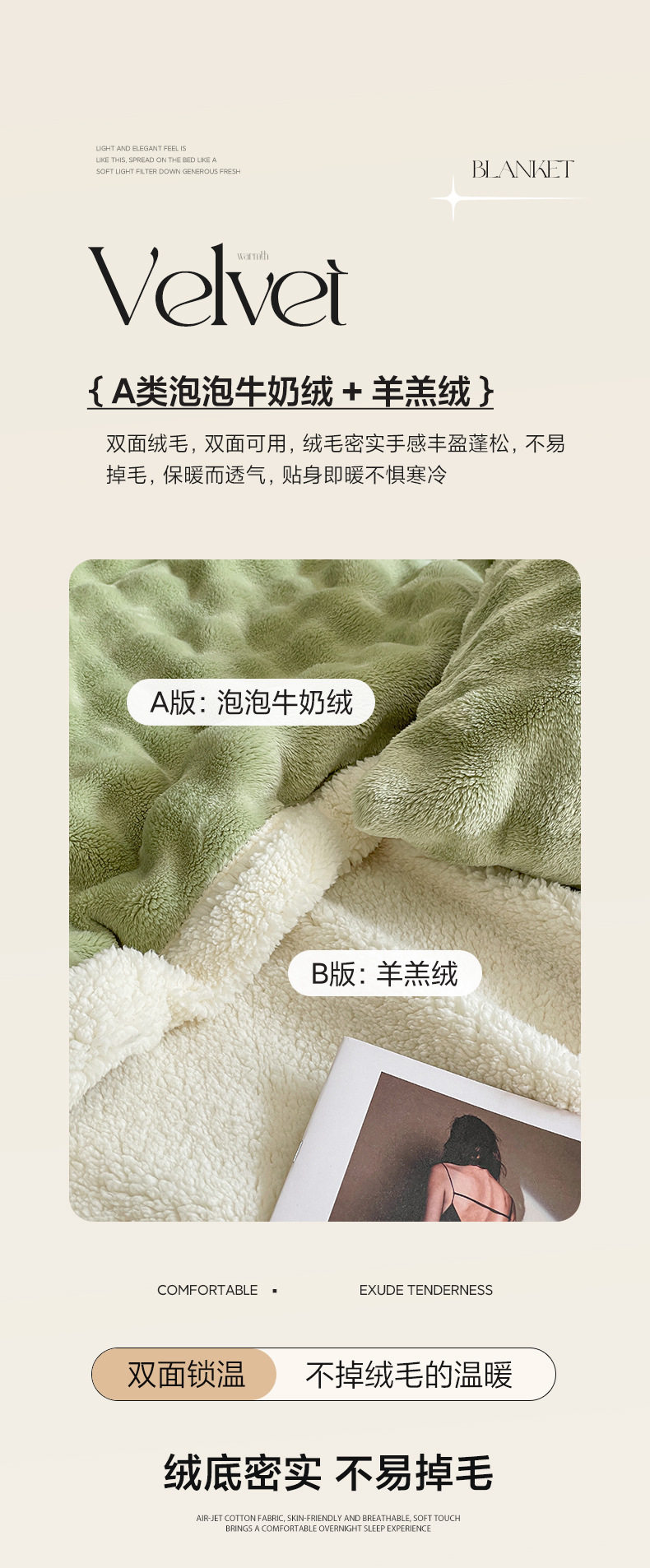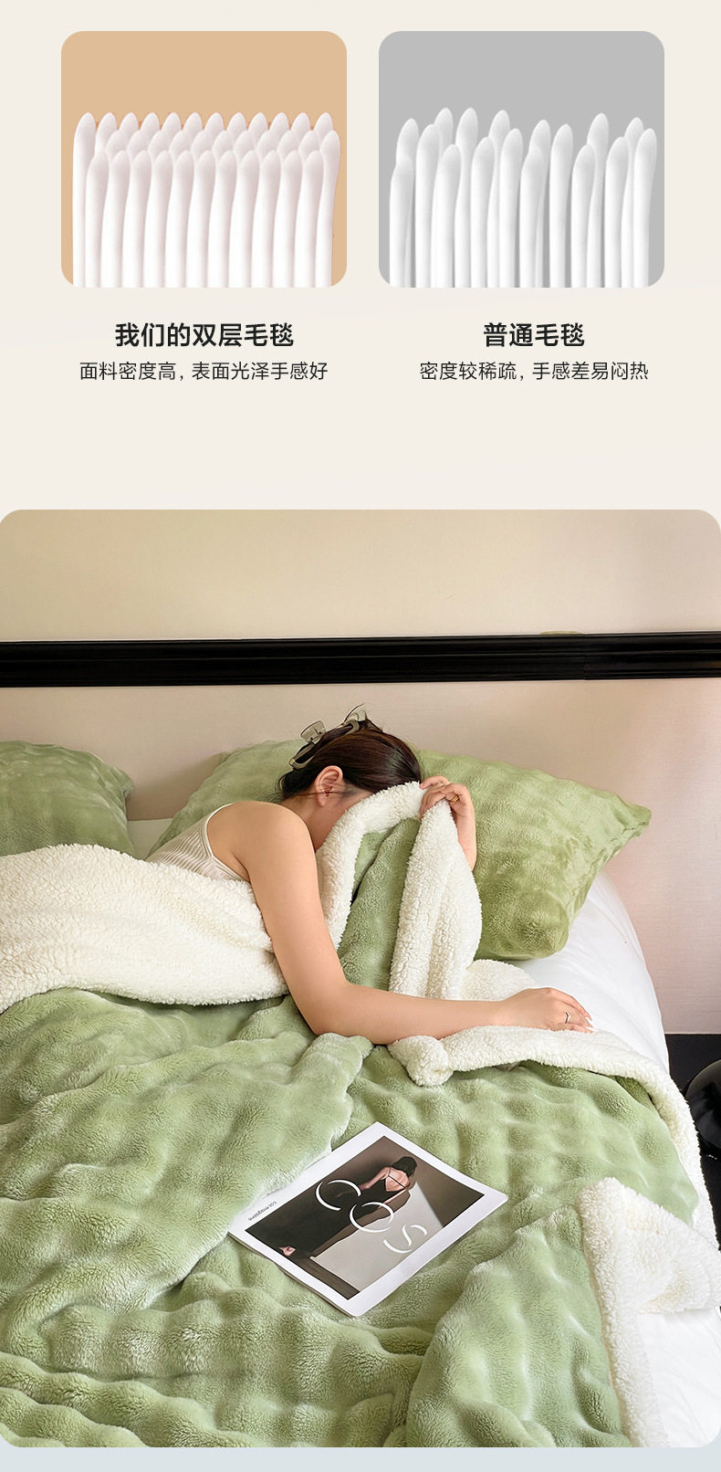 Double-layer Thickened Warm Bubble Rabbit Velvet Blanket Flannel Blanket Solid Color Lamb Velvet Blanket Sofa Nap Blanket