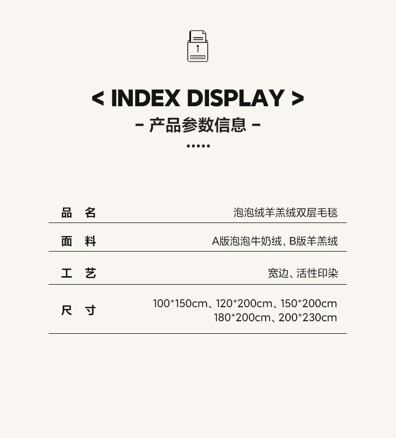 | Size specifications | 100*150cm double layer blanket,120*200cm double layer blanket,150*200cm double layer blanket,180*200cm double layer blanket,200*230cm double layer blanket |