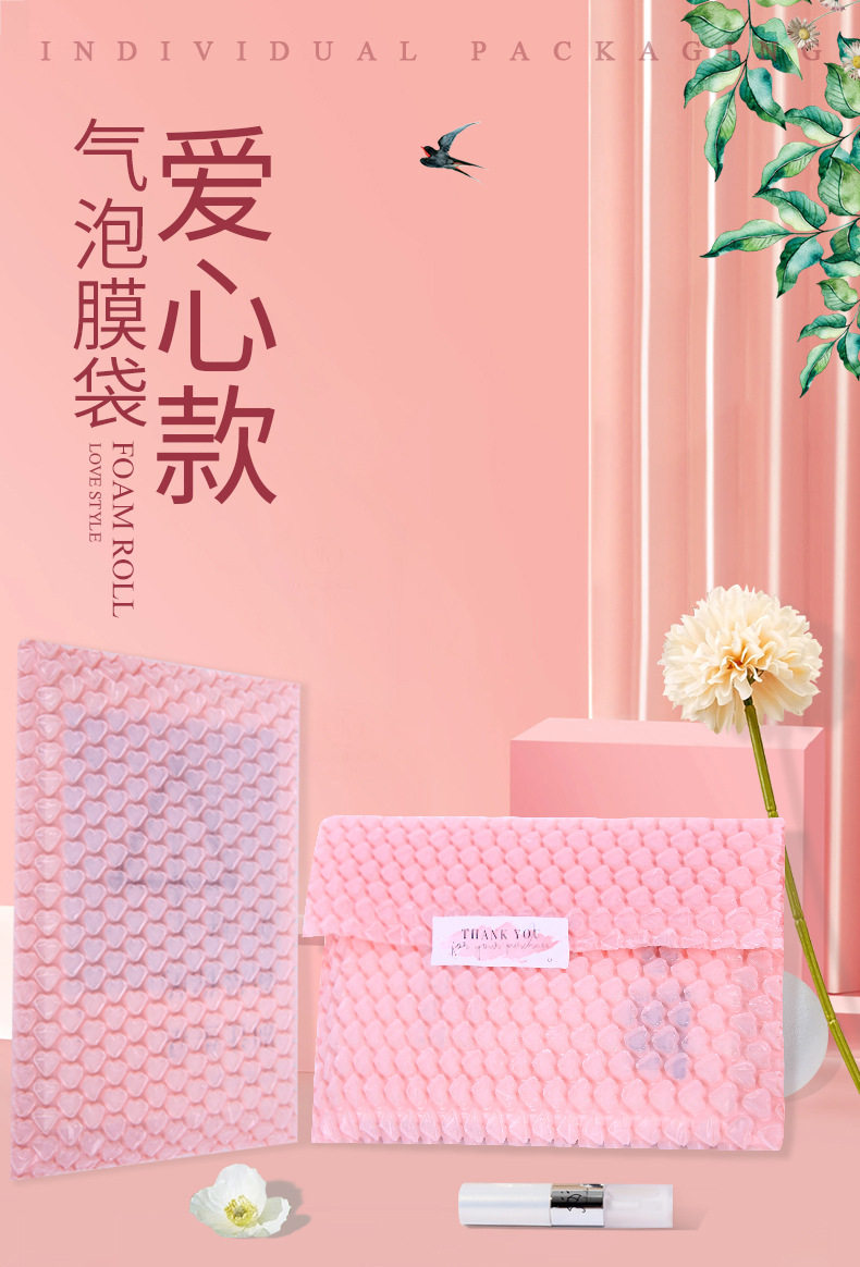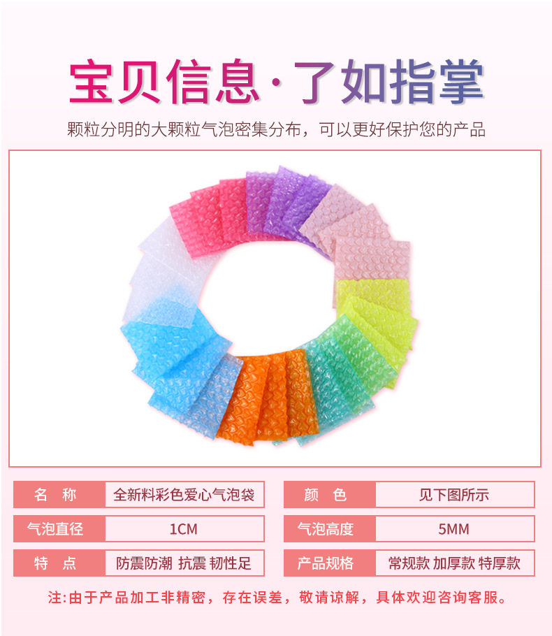 Color love bubble bag pink thick shock-proof bubble film packing bag heart-shaped bubble paper express foam bulk batch
