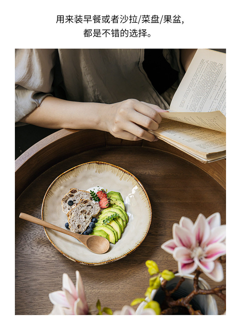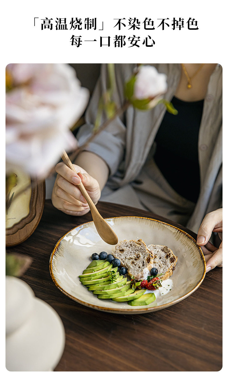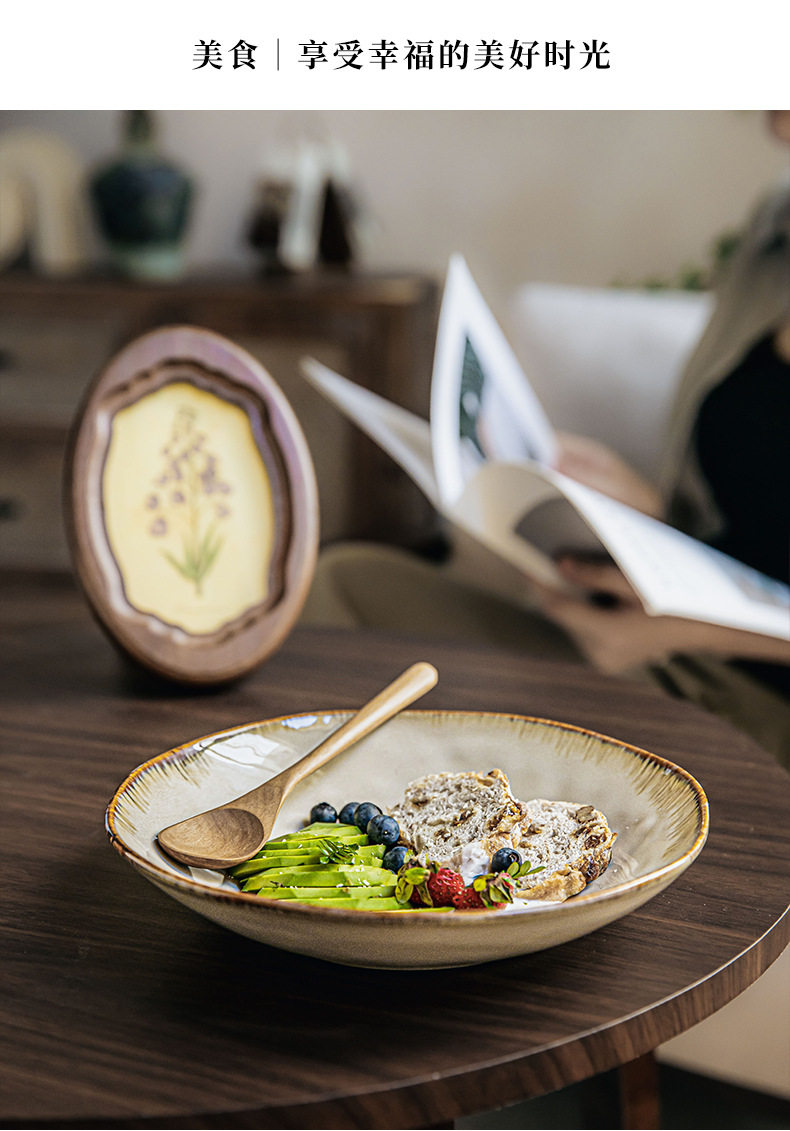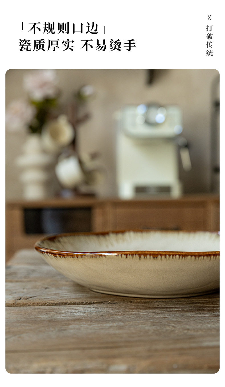 High-value irregular deep plate retro 9-inch salad plate kiln ceramic rice plate cross-border export food preparation plate