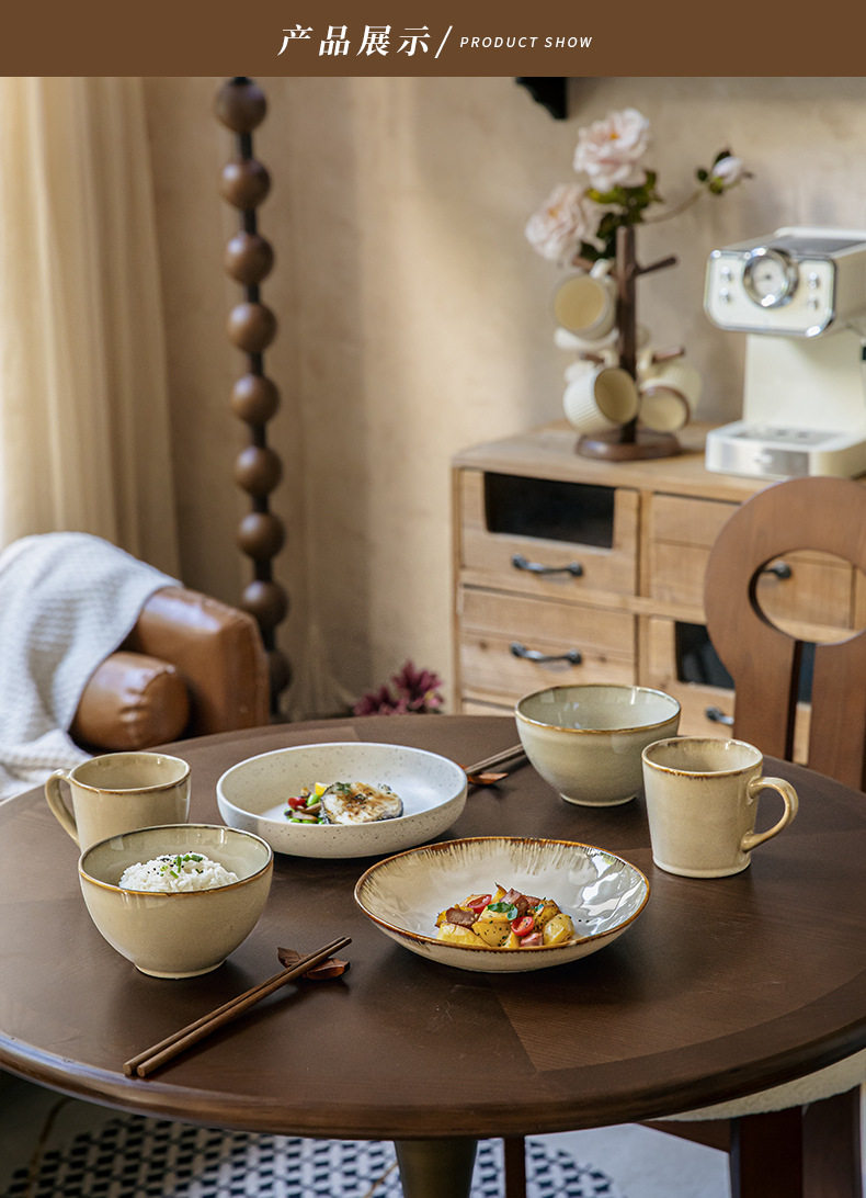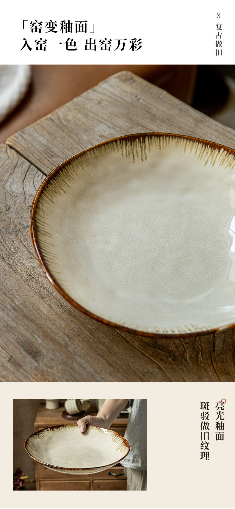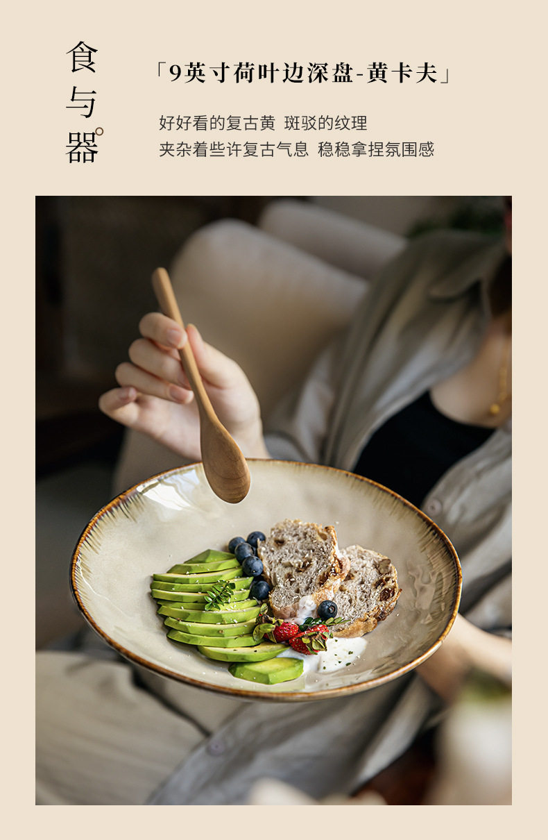 High-value irregular deep plate retro 9-inch salad plate kiln ceramic rice plate cross-border export food preparation plate