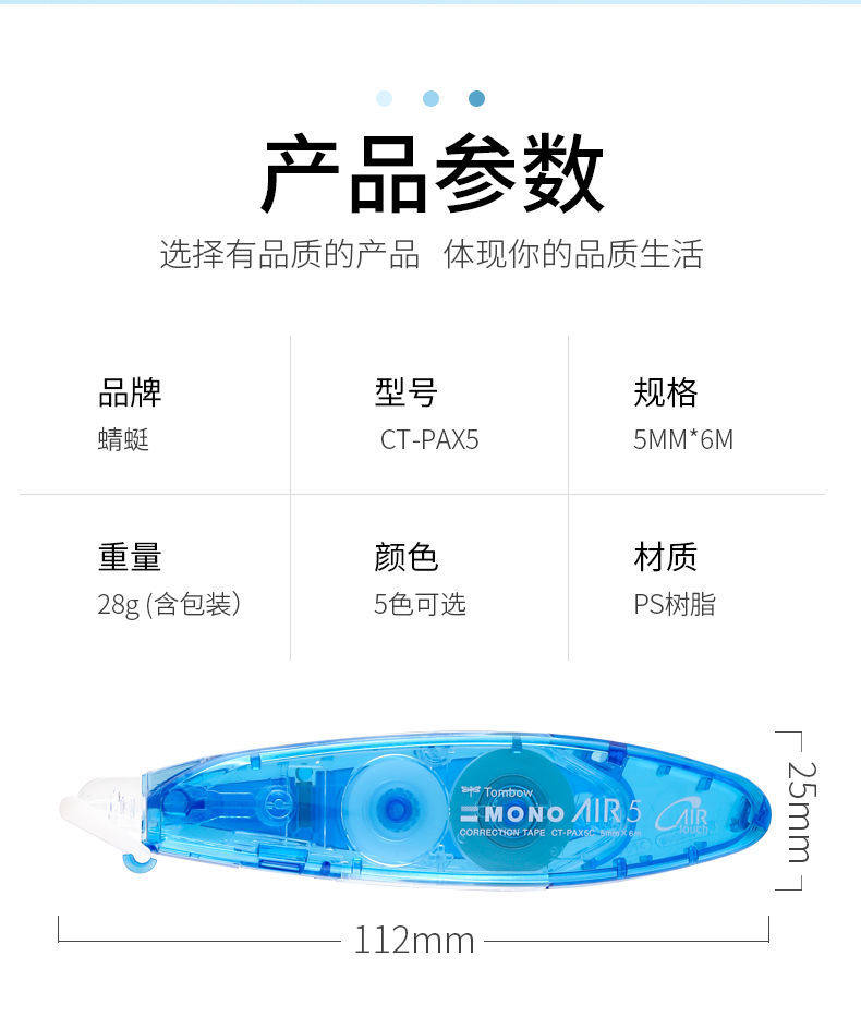 Japanese Dragonfly Correction Tape Ct-Pax5 Pen-Type Mono Correction Tape for Students, Refillable and Extendable