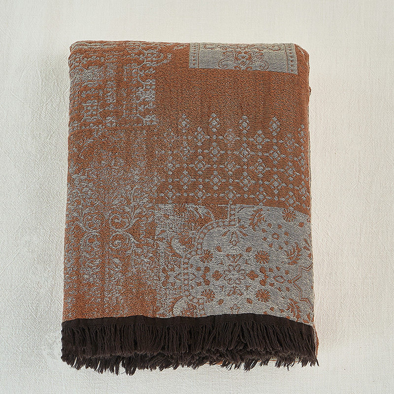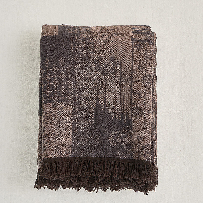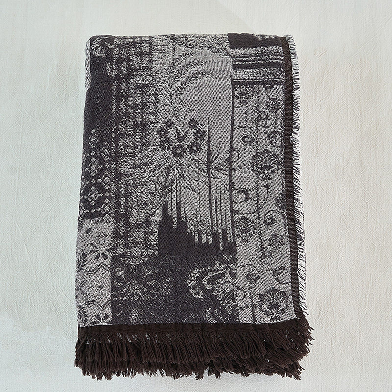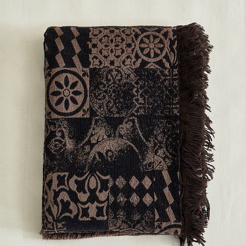 Palace Retro Yarn-dyed Woolen Cotton Blanket Casual Tassel Cover Blanket Cross-border Foreign Trade Blanket Sofa Blanket Office Nap