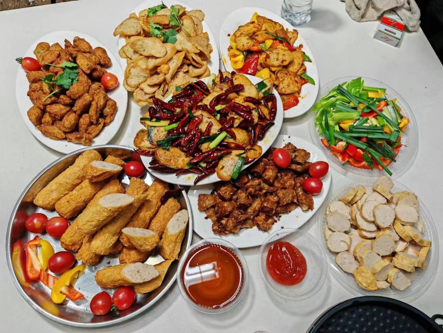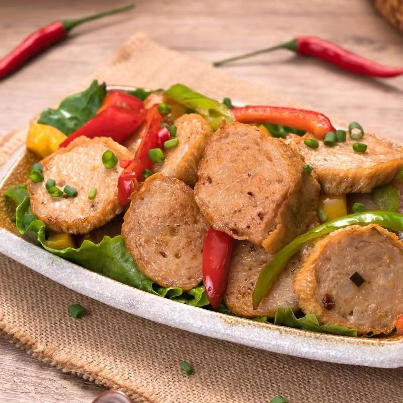 Raw materials and ingredients Pork, chicken, holly (pickled vegetables), tofu skin, garlic, drinking water, edible starch, salt, msg, soybean oil, food additives (trymphosphoric acid