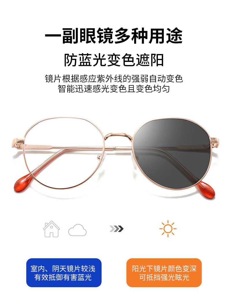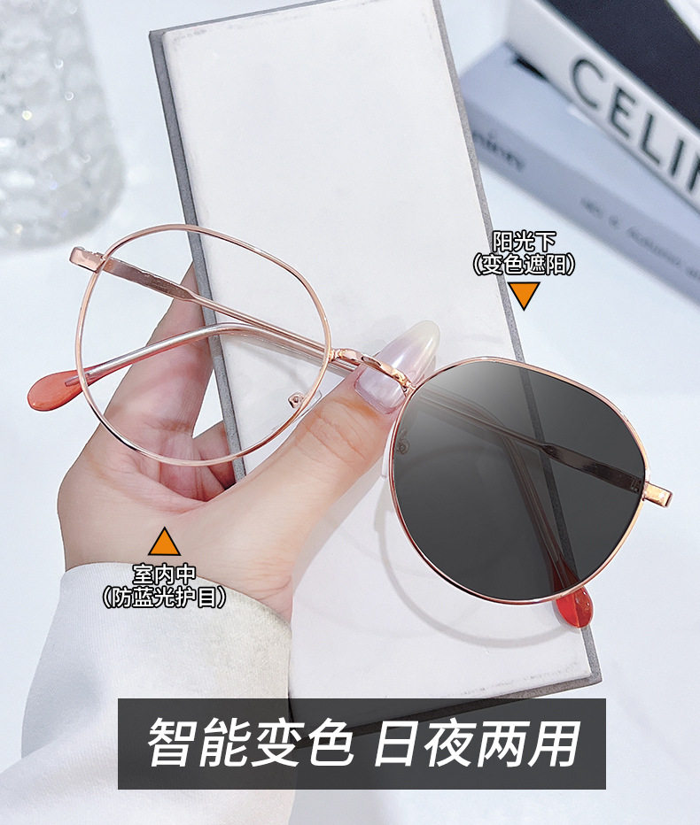 New Artifact Plain Style Near-sight Glasses Frame Cross-border Metal Flat Glasses Retro Color-changing Anti-blue Glasses