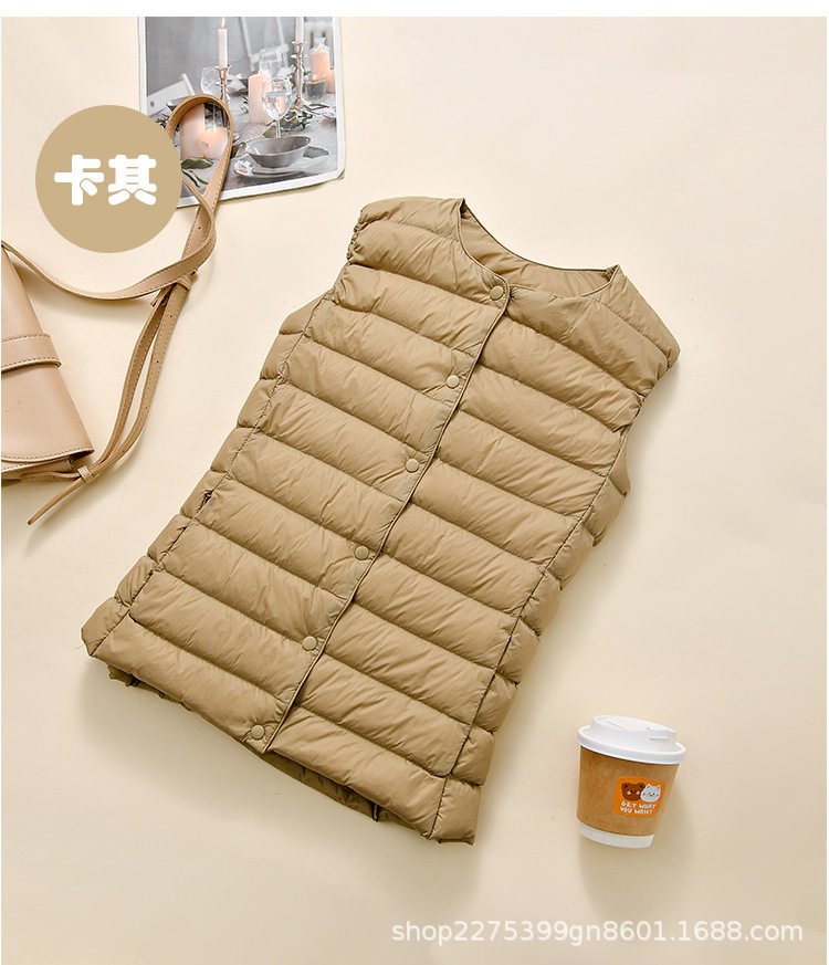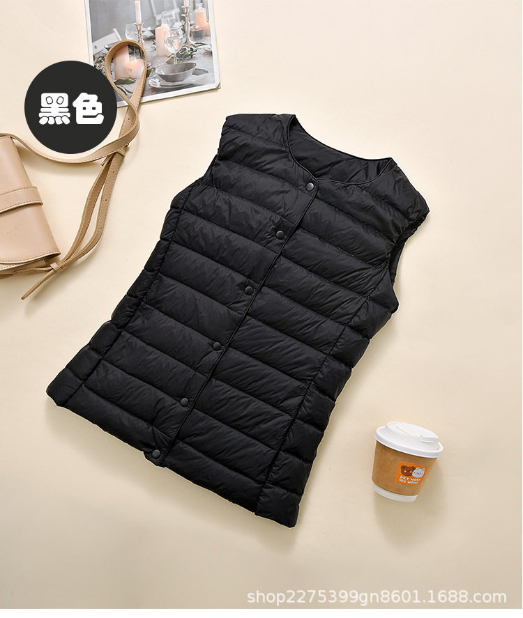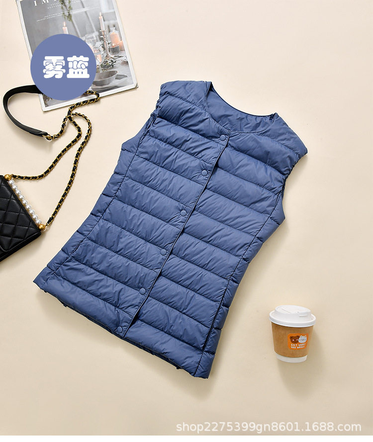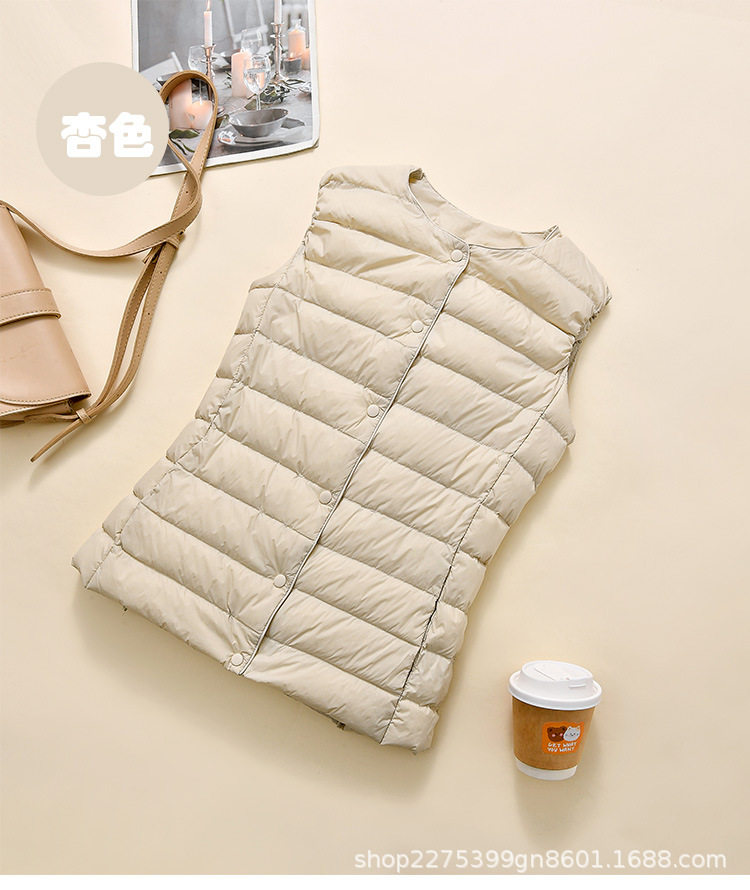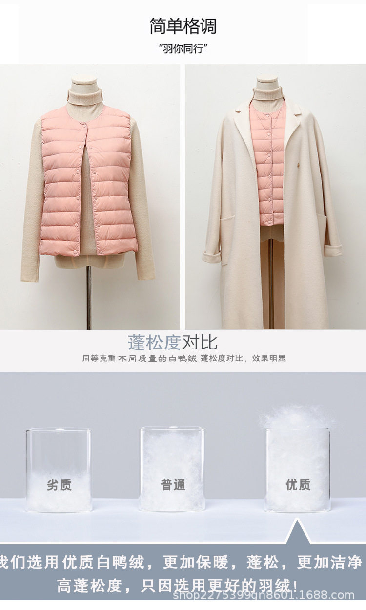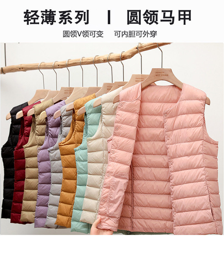 2024 New 90 Liner Lightweight down Jacket Women's Short Collarless Autumn and Winter New Thin Large Size Round Neck Warm Outside