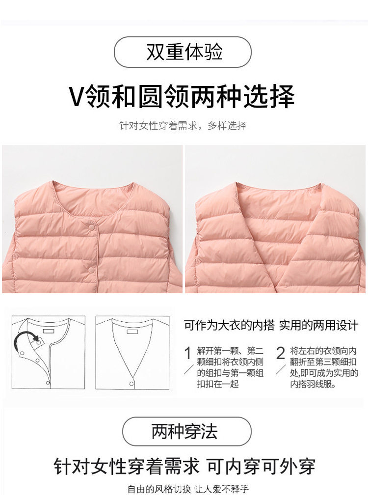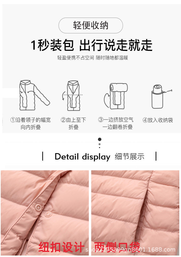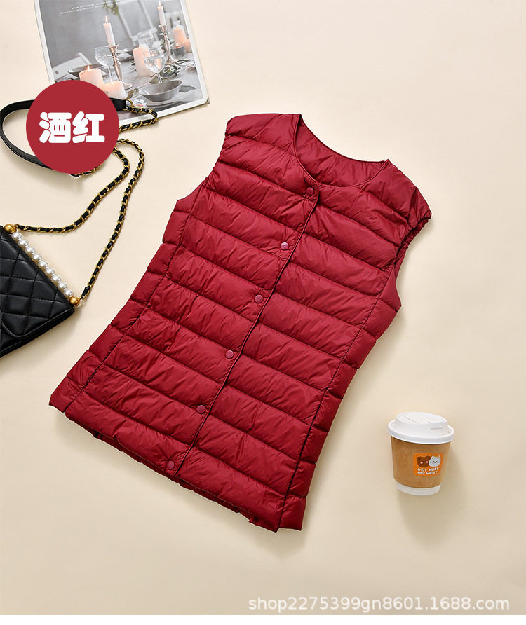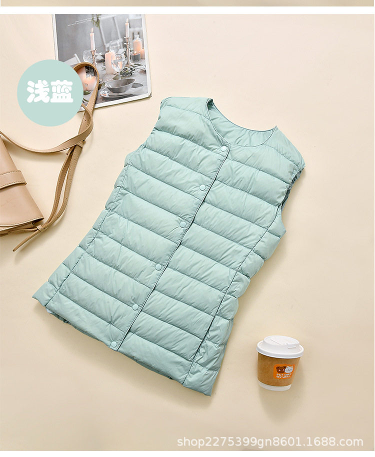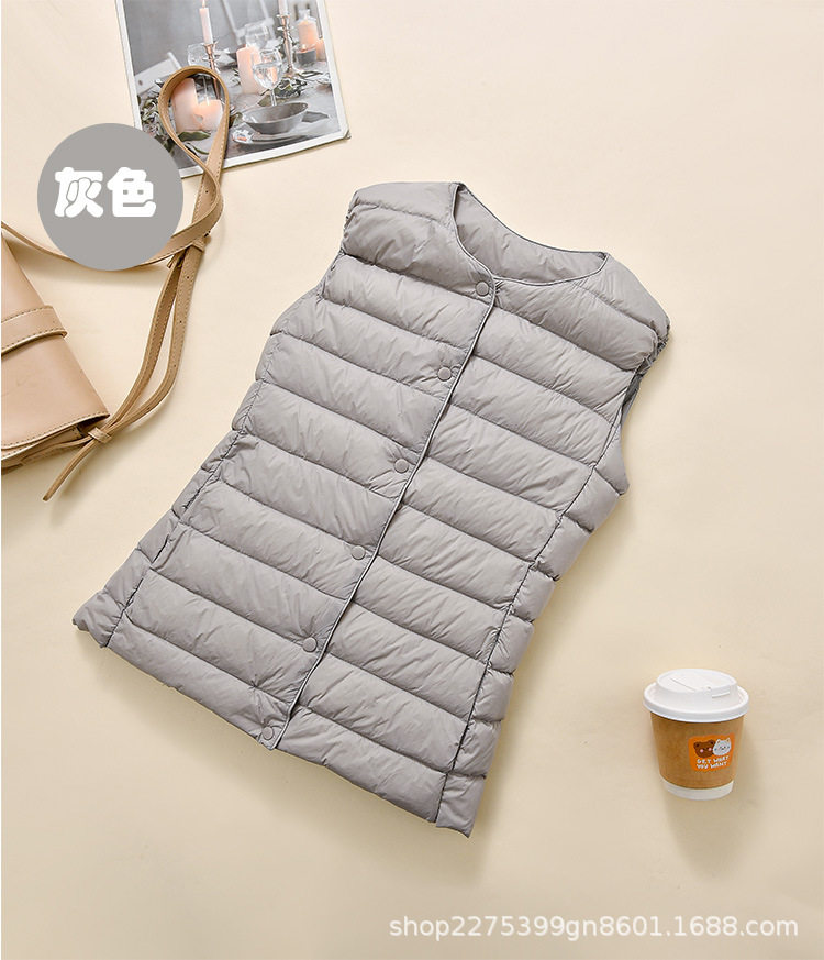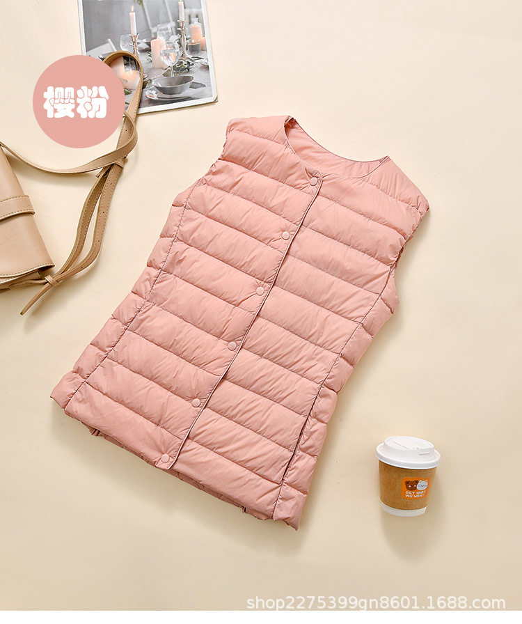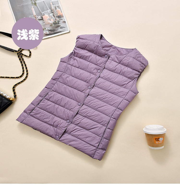2024 New 90 Liner Lightweight down Jacket Women's Short Collarless Autumn and Winter New Thin Large Size Round Neck Warm Outside