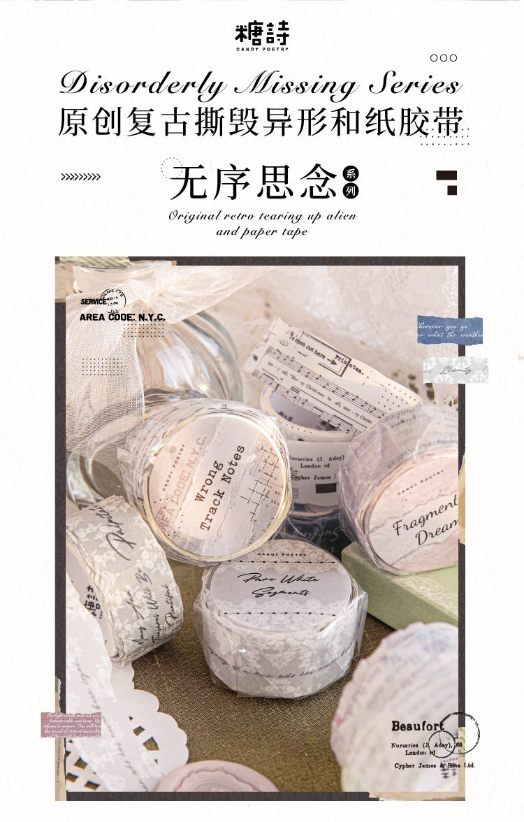 Sugar Poetry and Paper Tape Disorderly Missing Series Retro Burn Alien Theme Hand Account DIY Base Decoration Collage