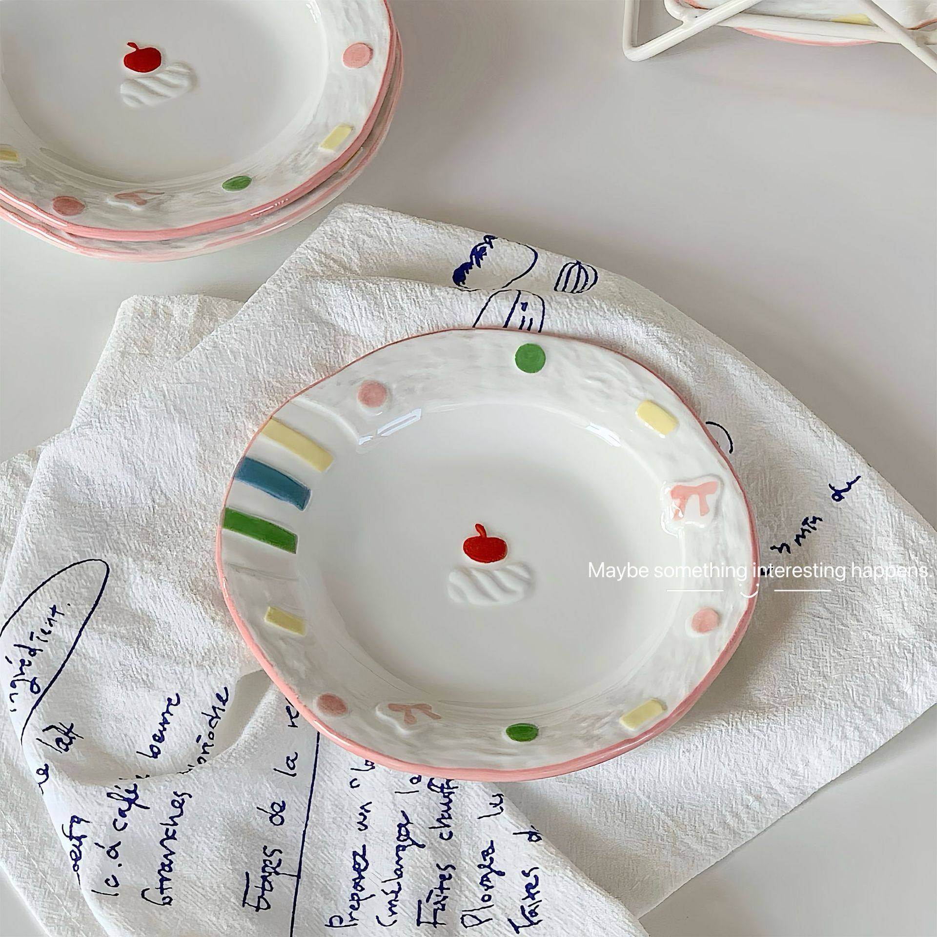 Creative Underglaze Color Household 6 Inch Plate Ins Style Advanced Sense Sweet Plate Cake Plate Cute Ceramic Bone Plate