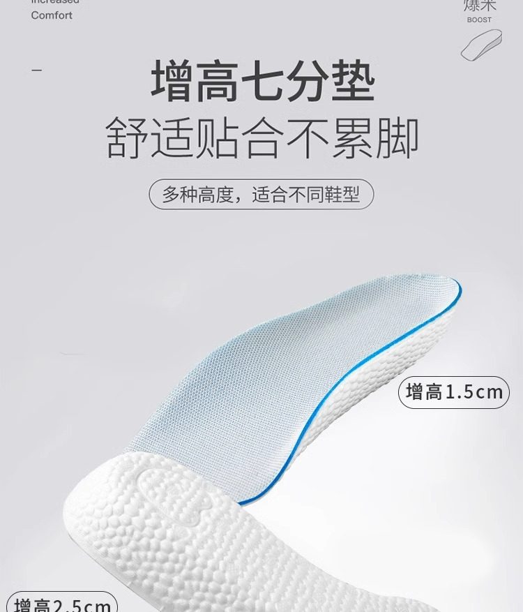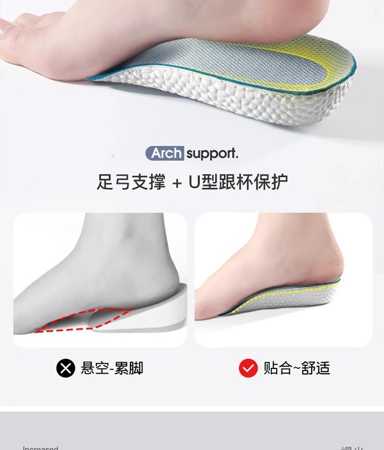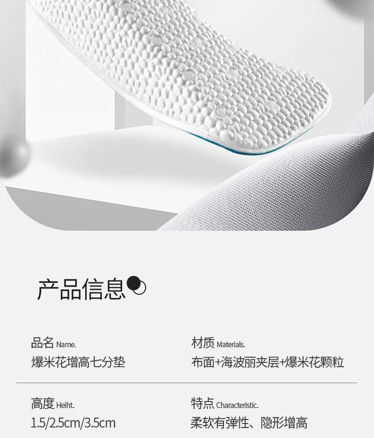 Inner Heightened Insole Women's Not Tired Feet Super Soft Invisible Inner Heightened Seven-point Heightening Pad Sports Not Collapse Half Pad