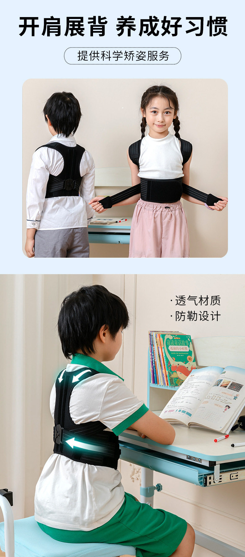 Cross-Border Posture Corrector for Students and Children, Anti-Hunchback Correction Belt with Aluminum Strip Support, Posture Correction Belt for Spine Protection