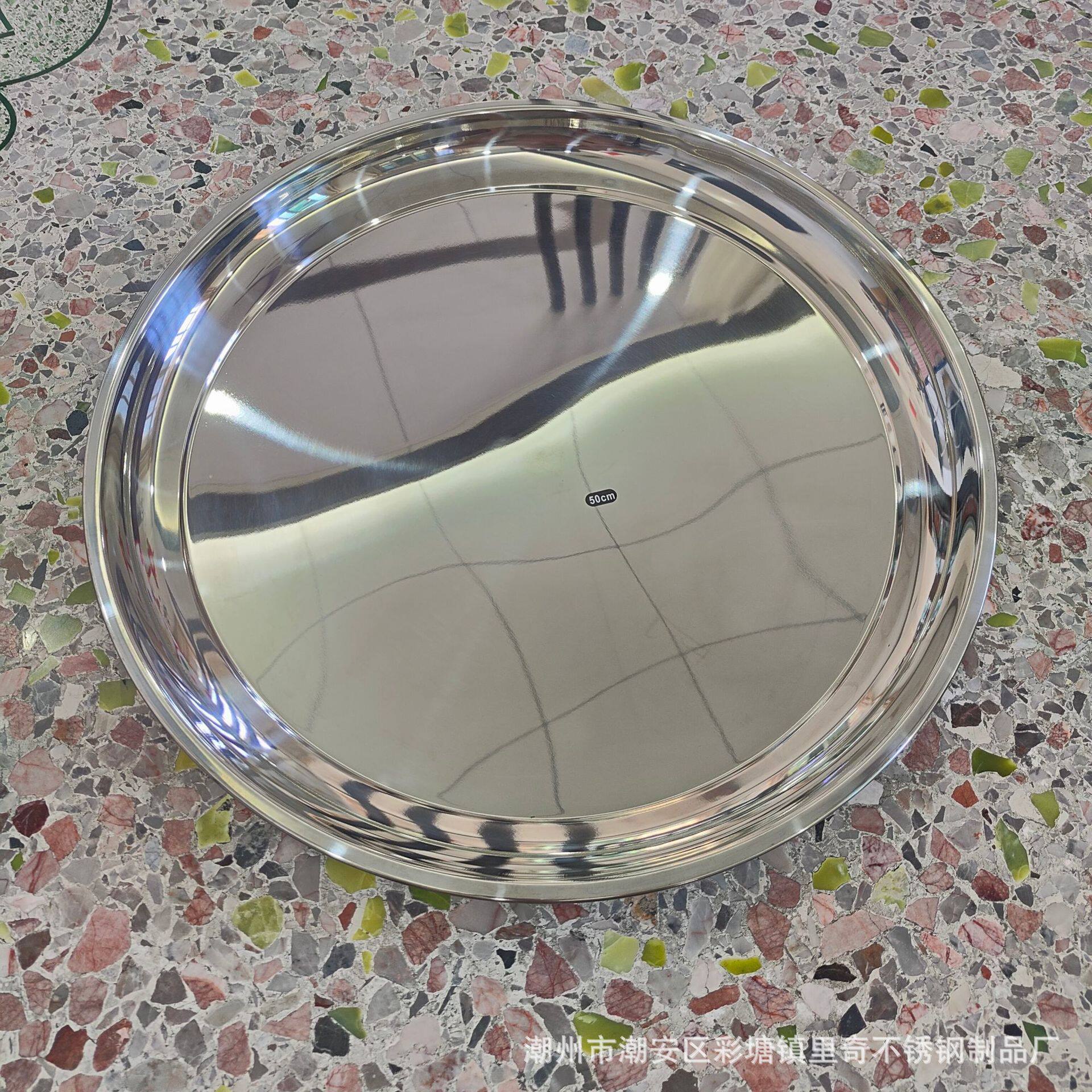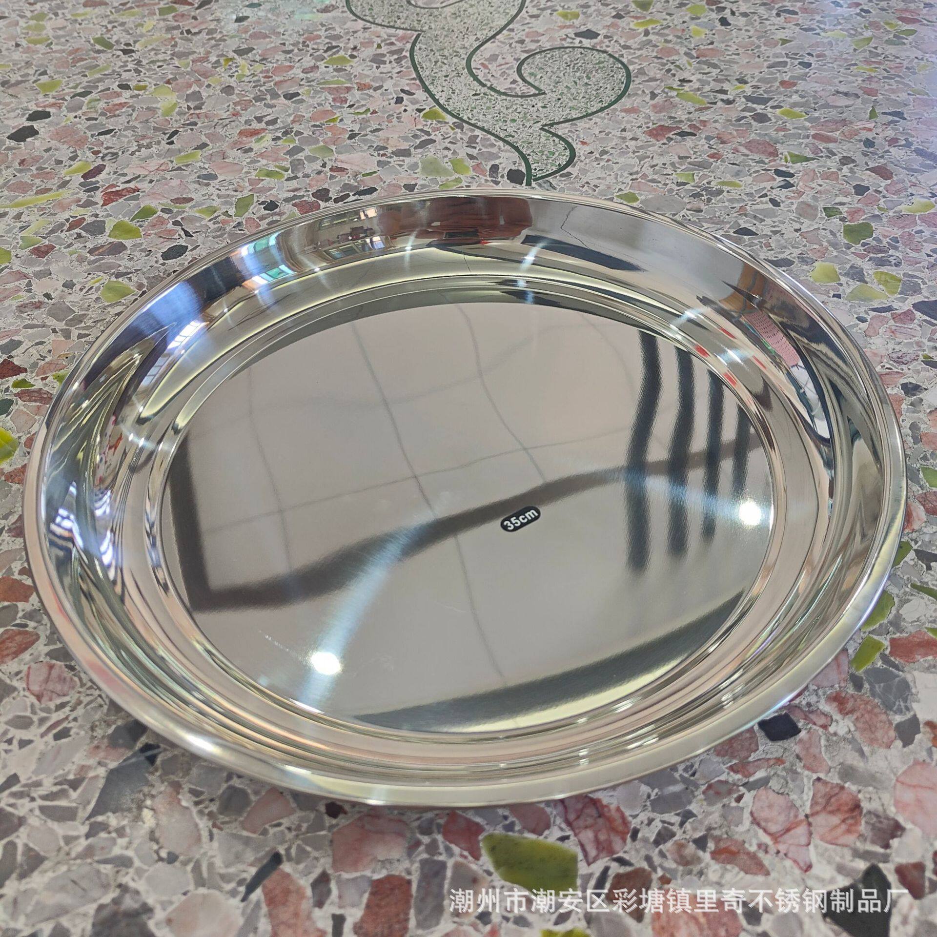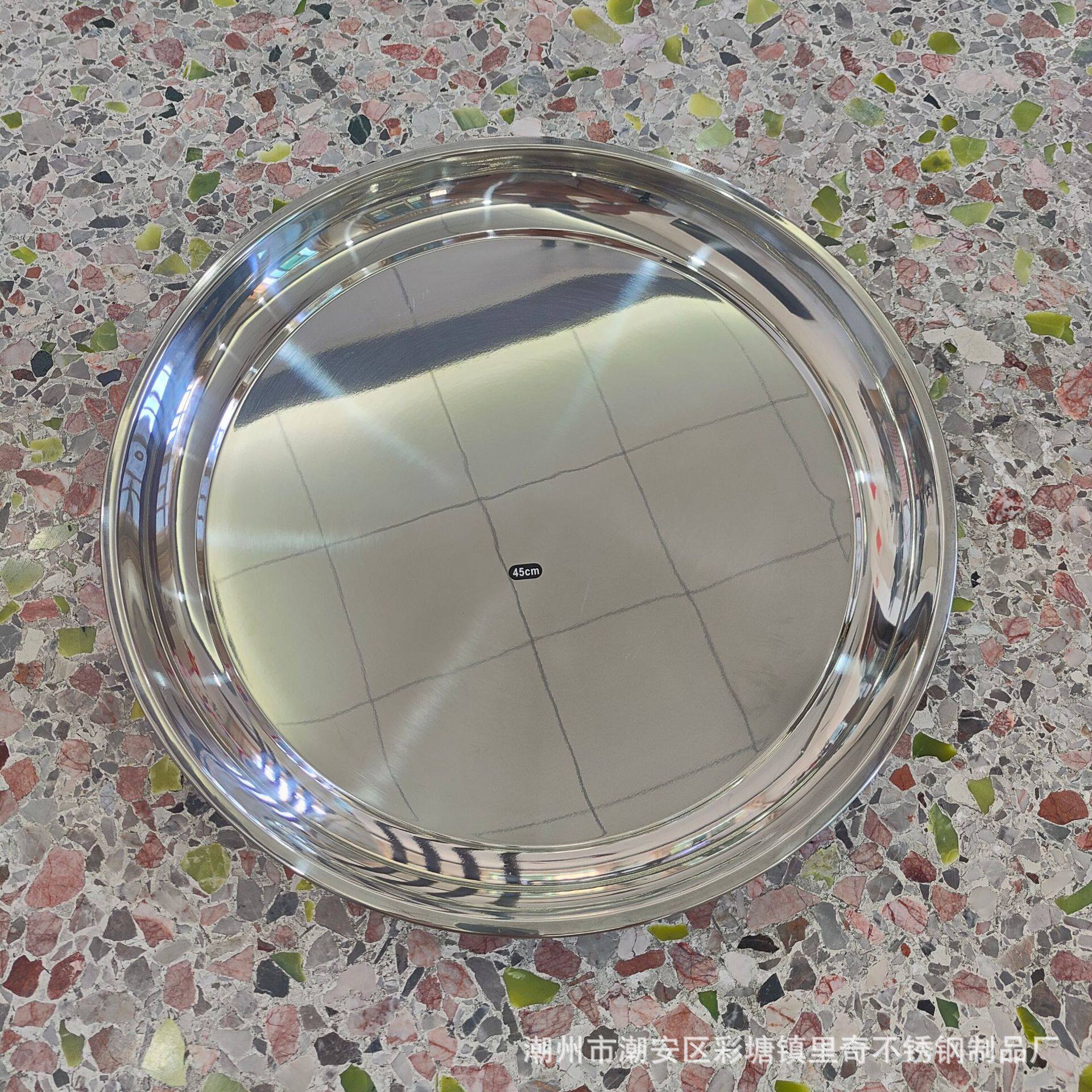Non-Magnetic Stainless Steel Thai-Style Inch Plate Hotel Restaurant Tray Tea Tray Food Tray Large Round Plate Mirror-Polished Tableware