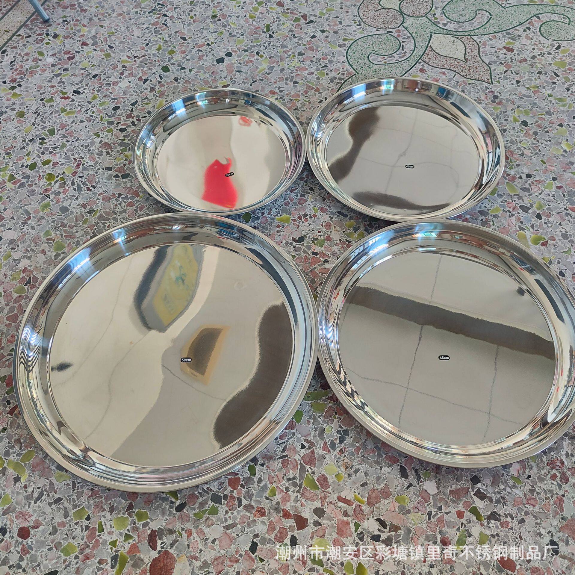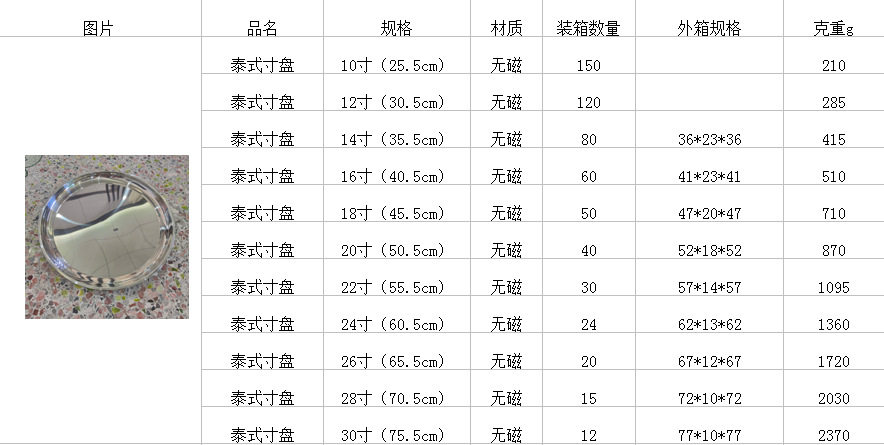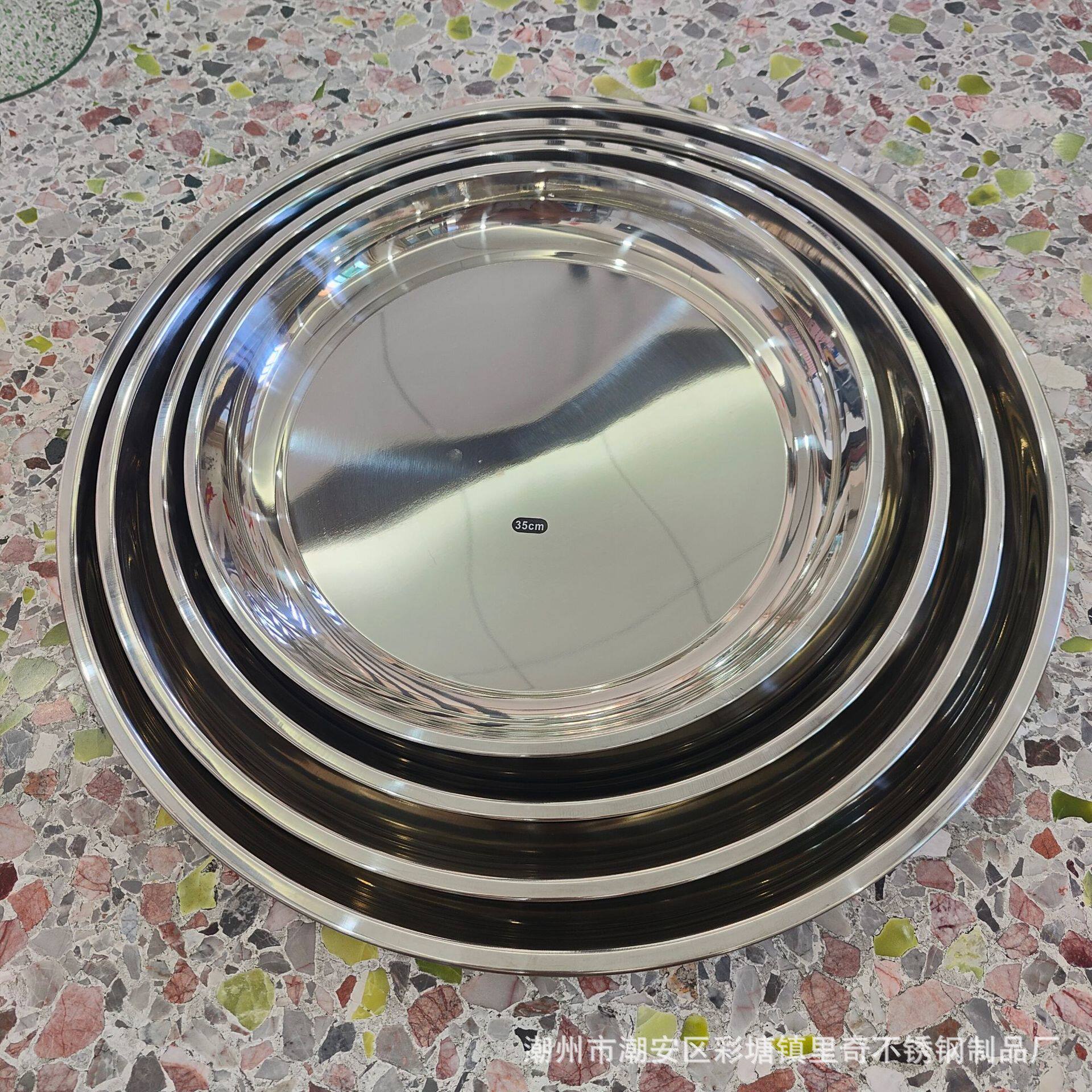Non-Magnetic Stainless Steel Thai-Style Inch Plate Hotel Restaurant Tray Tea Tray Food Tray Large Round Plate Mirror-Polished Tableware