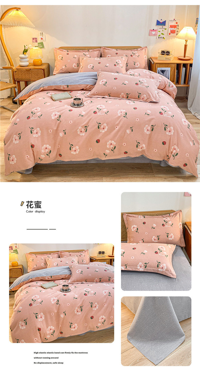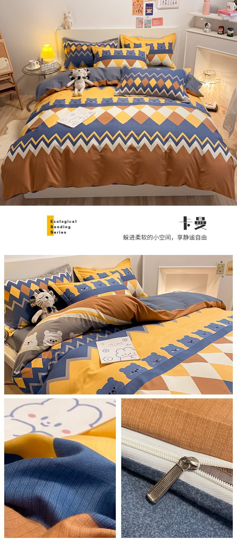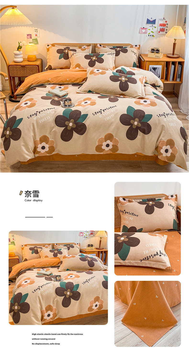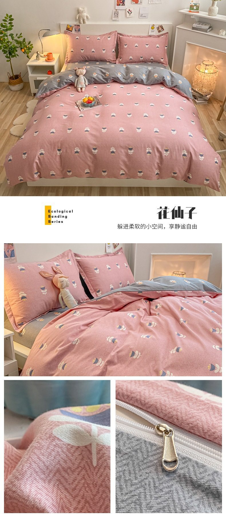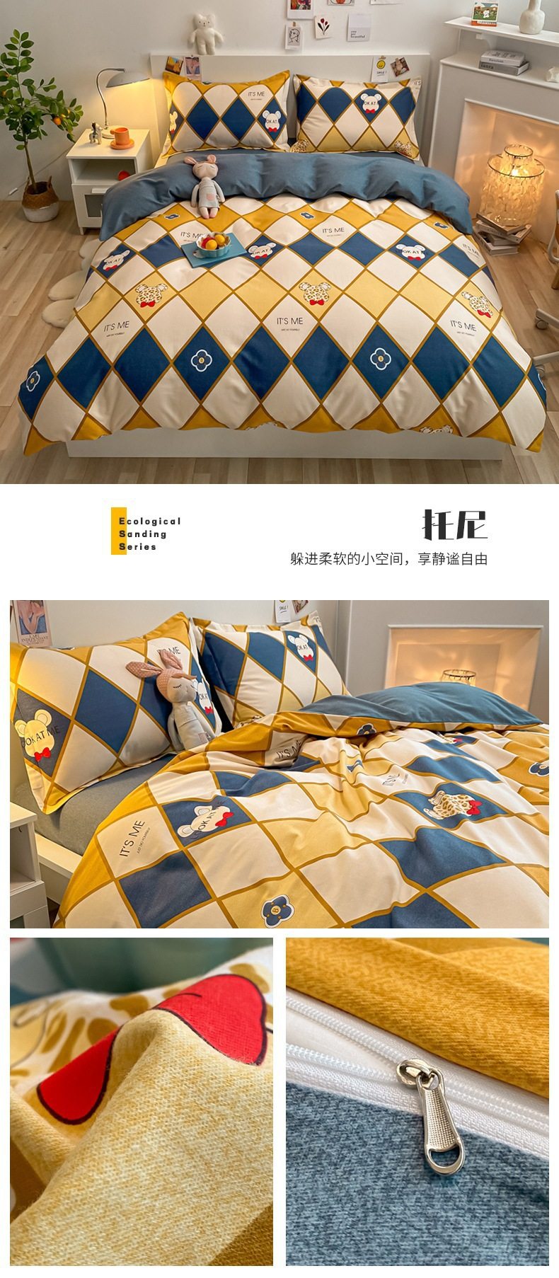 Ins Style Thickened Cotton Sanding Four-piece Set Student Bed Sheet Three-piece Set Autumn and Winter 100 Cotton Quilt Cover Four-piece Set
