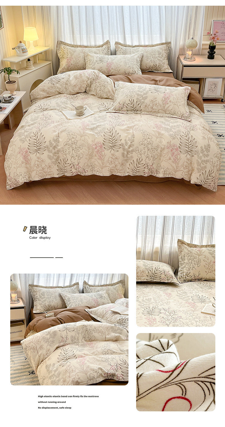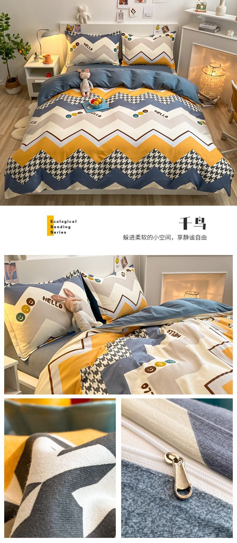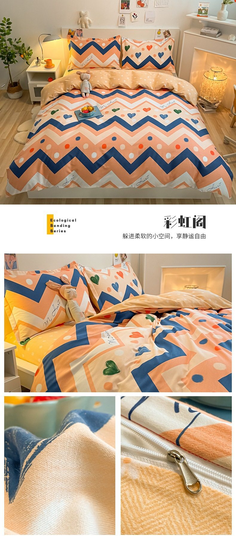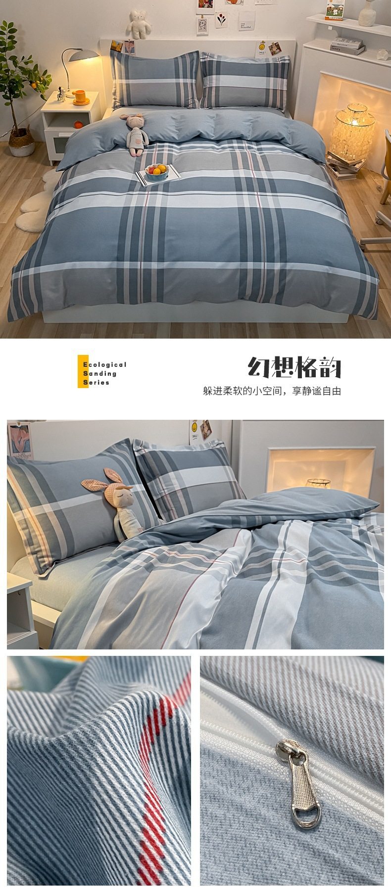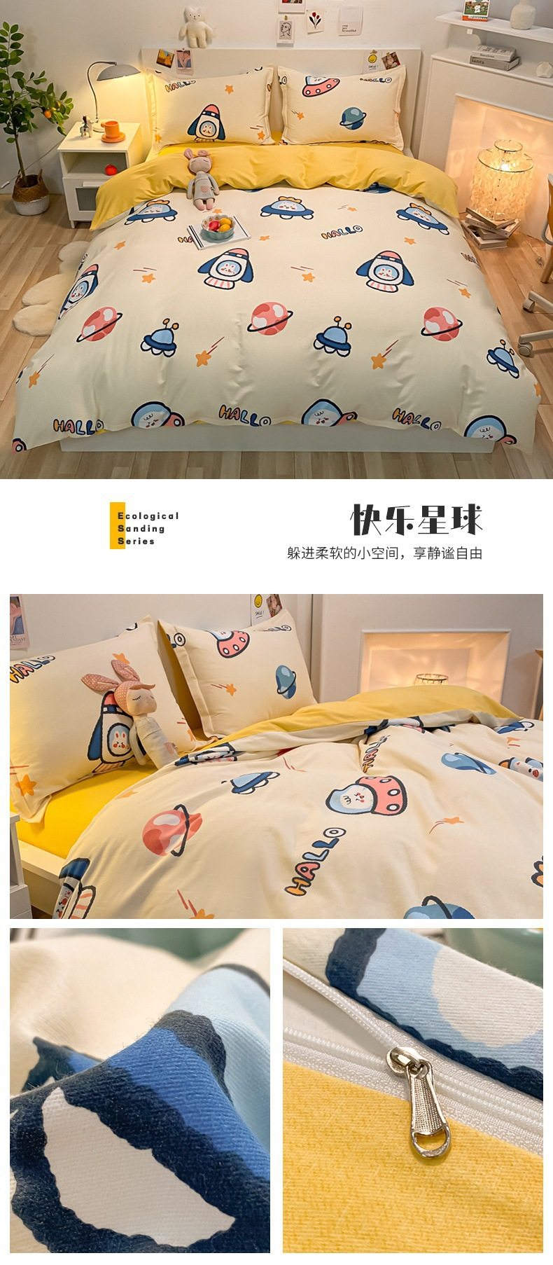 Ins Style Thickened Cotton Sanding Four-piece Set Student Bed Sheet Three-piece Set Autumn and Winter 100 Cotton Quilt Cover Four-piece Set