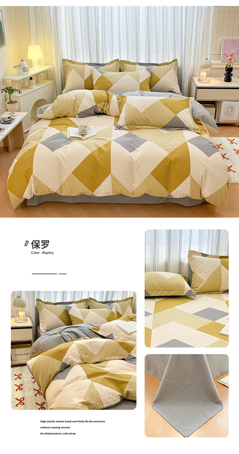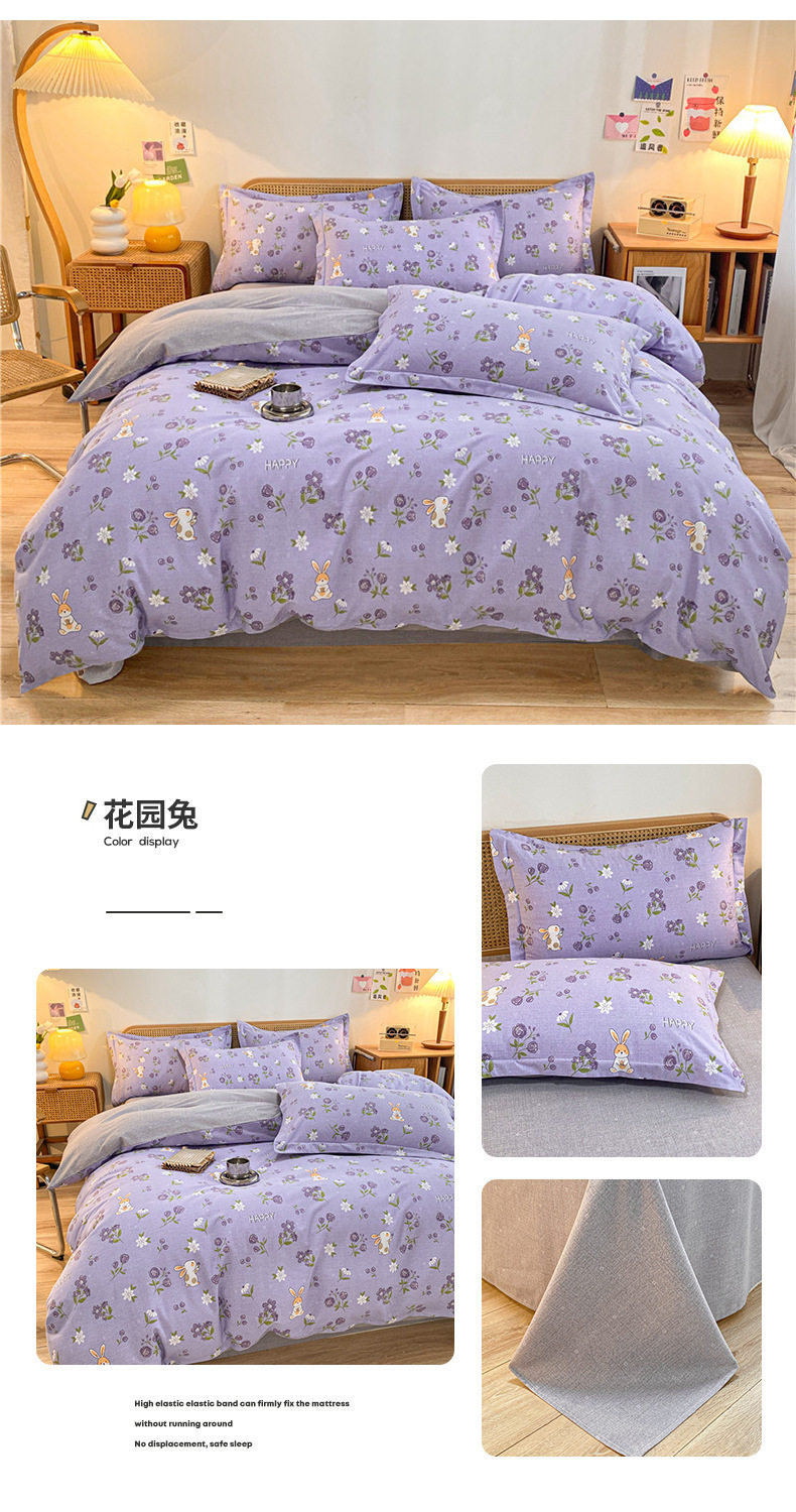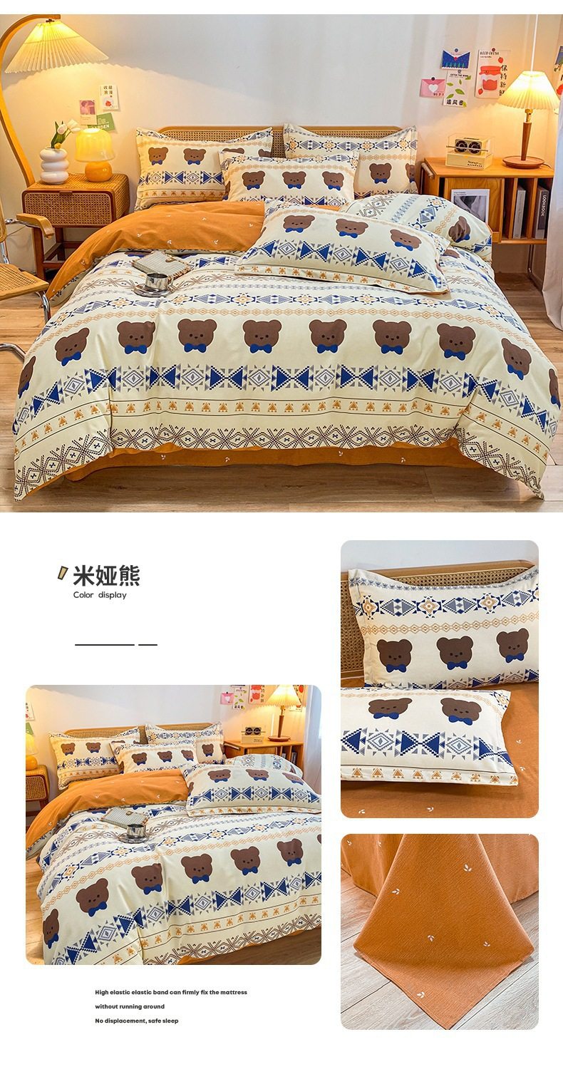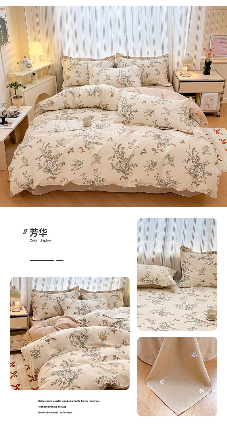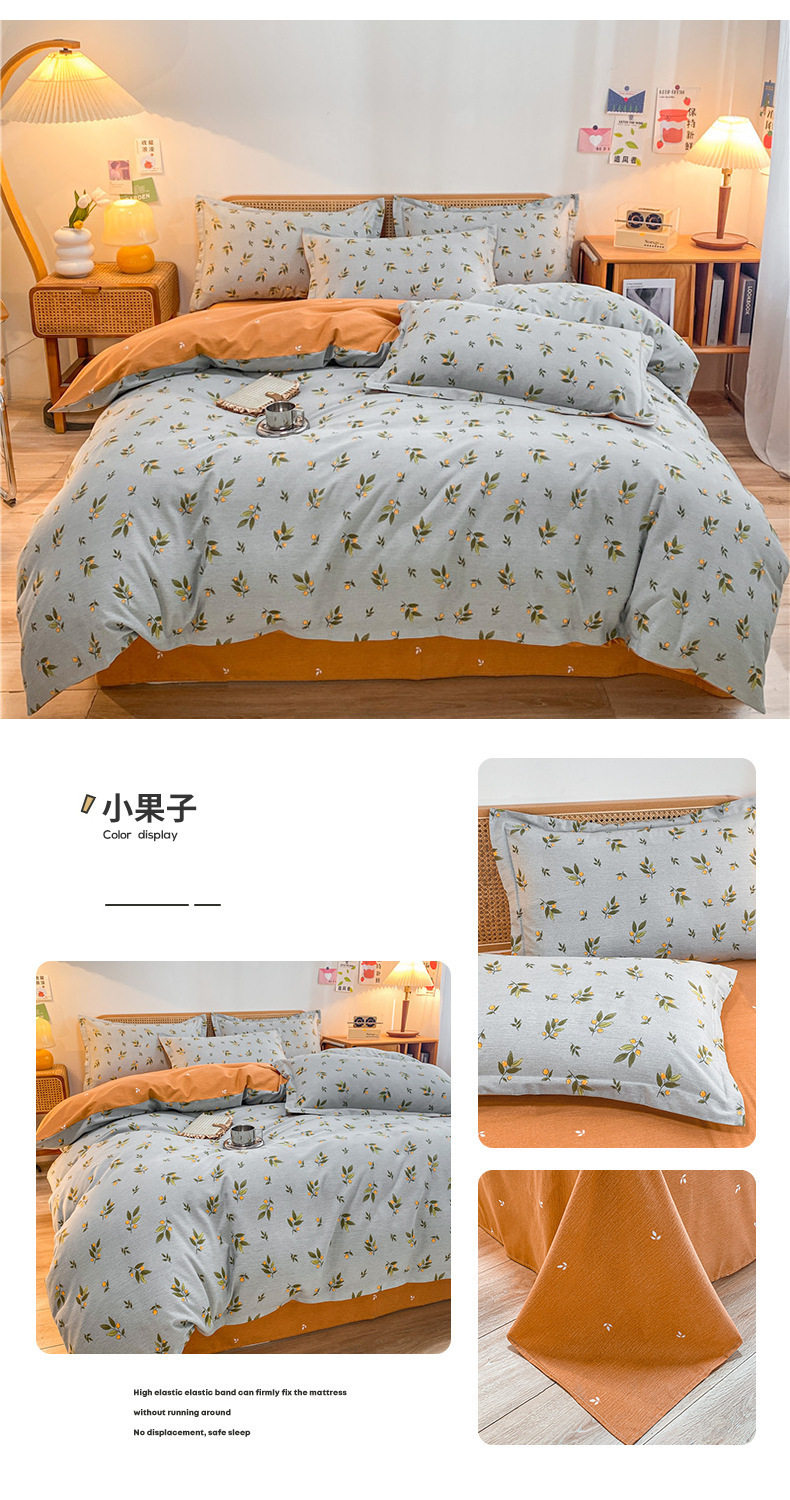 Ins Style Thickened Cotton Sanding Four-piece Set Student Bed Sheet Three-piece Set Autumn and Winter 100 Cotton Quilt Cover Four-piece Set