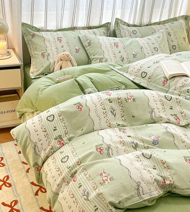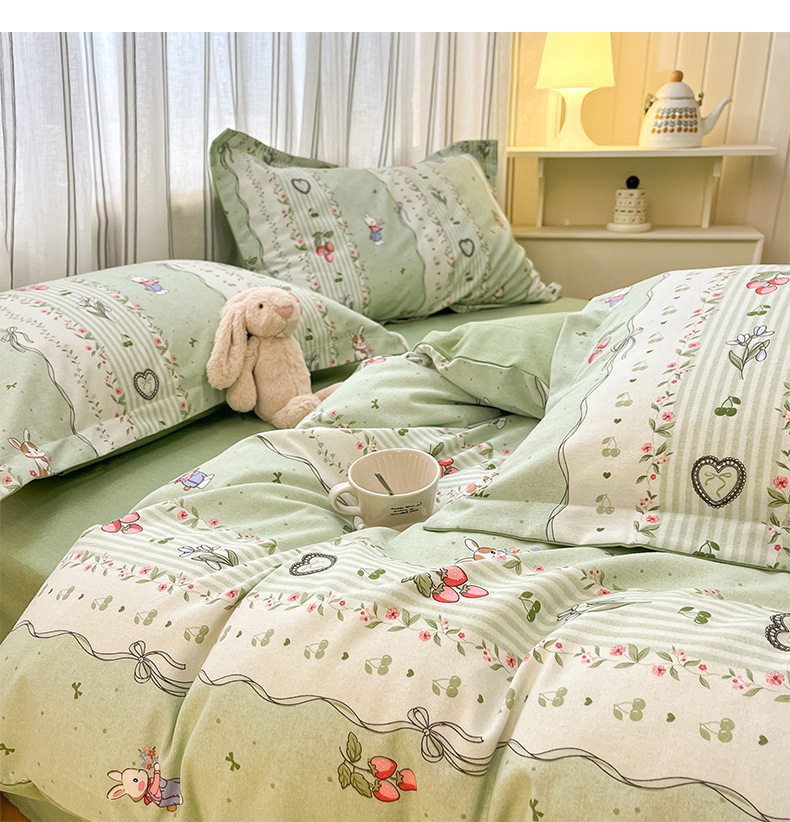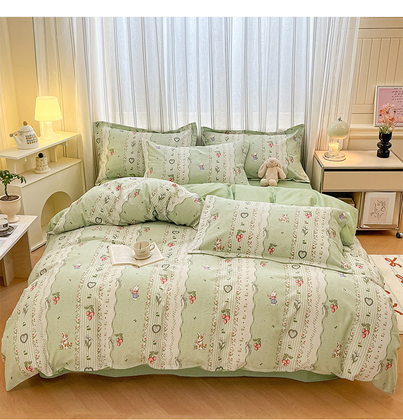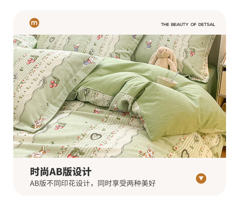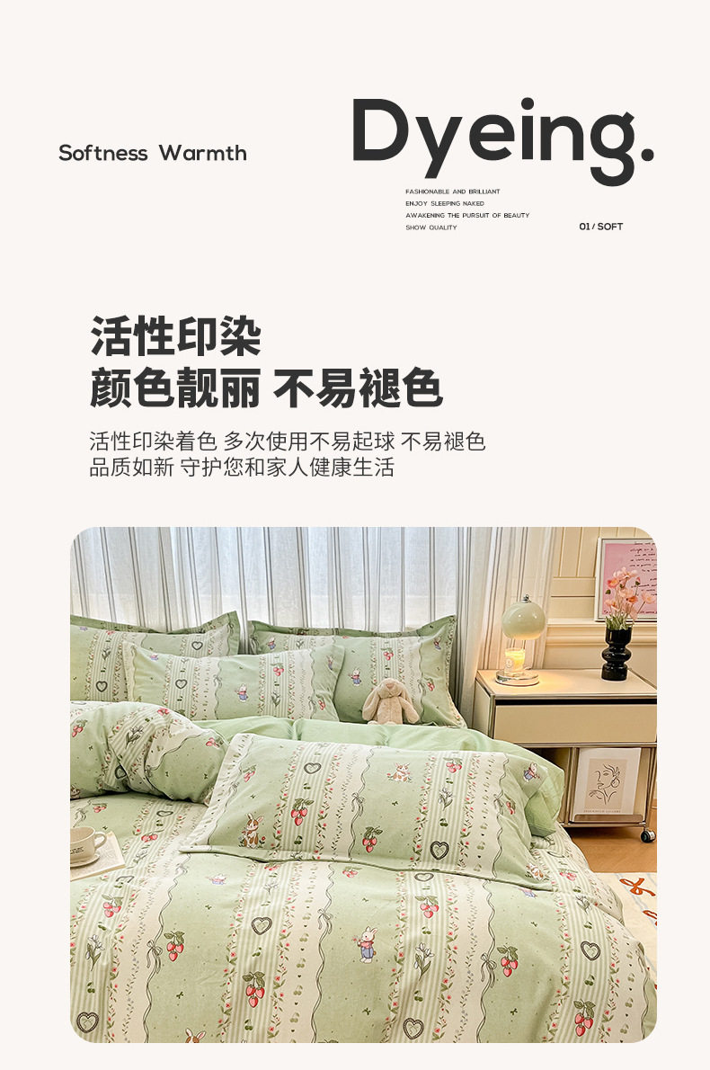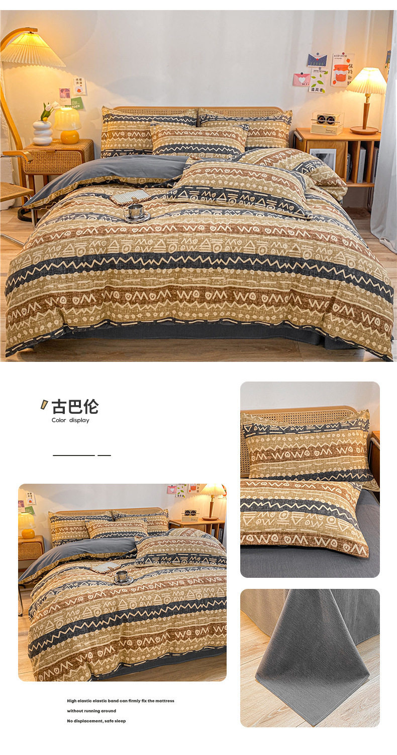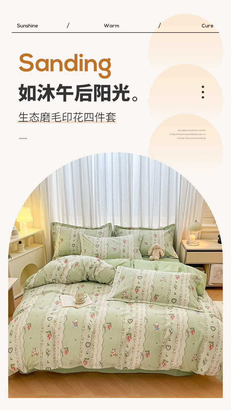 Ins Style Thickened Cotton Sanding Four-piece Set Student Bed Sheet Three-piece Set Autumn and Winter 100 Cotton Quilt Cover Four-piece Set