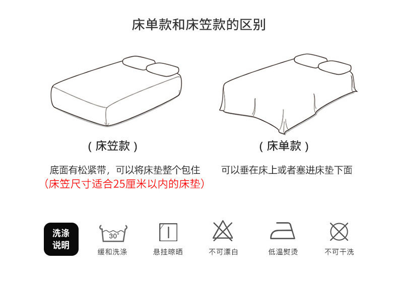 | Size specifications | 0.9—1.2 three-piece bed sheet set, quilt cover 1.6* 2.1m, sheets 1.8* 2.3m, one pillowcase,Four-piece set, quilt cover 1.8* 2.2m, sheets 2.45* 2.5m, one pair of pillowcases,1.5 or 1.8 bed sheets four-piece set, quilt cover 2* 2.3m bed sheets 2.45* 2.5m pair of pillowcases,2.0bed sheets four-piece set, quilt cover 2.2* 2.4m bed sheets 2.45* 2.7m pair of pillowcases,1.5 fitted sheet set of four, quilt cover 2* 2.3m, fitted sheet 1.5* 2m, one pair of pillowcases,1.8 fitted sheet set of four, quilt cover 2* 2.3m, fitted sheet 1.8* 2m, one pair of pillowcases,Large quilt cover 1.8 fitted sheet set of four, quilt cover 2.2* 2.4m fitted sheet 1.8* 2m pair of pillowcases,Single quilt cover 1.6* 2.1m (suitable for 1.5* 2m quilt),Single quilt cover 1.8* 2.2m (suitable for 1.8* 2.2m quilt),Single quilt cover 2* 2.3m (suitable for 2* 2.3m quilt),Single quilt cover 2.2* 2.4m (suitable for 2.2* 2.4m quilt) |