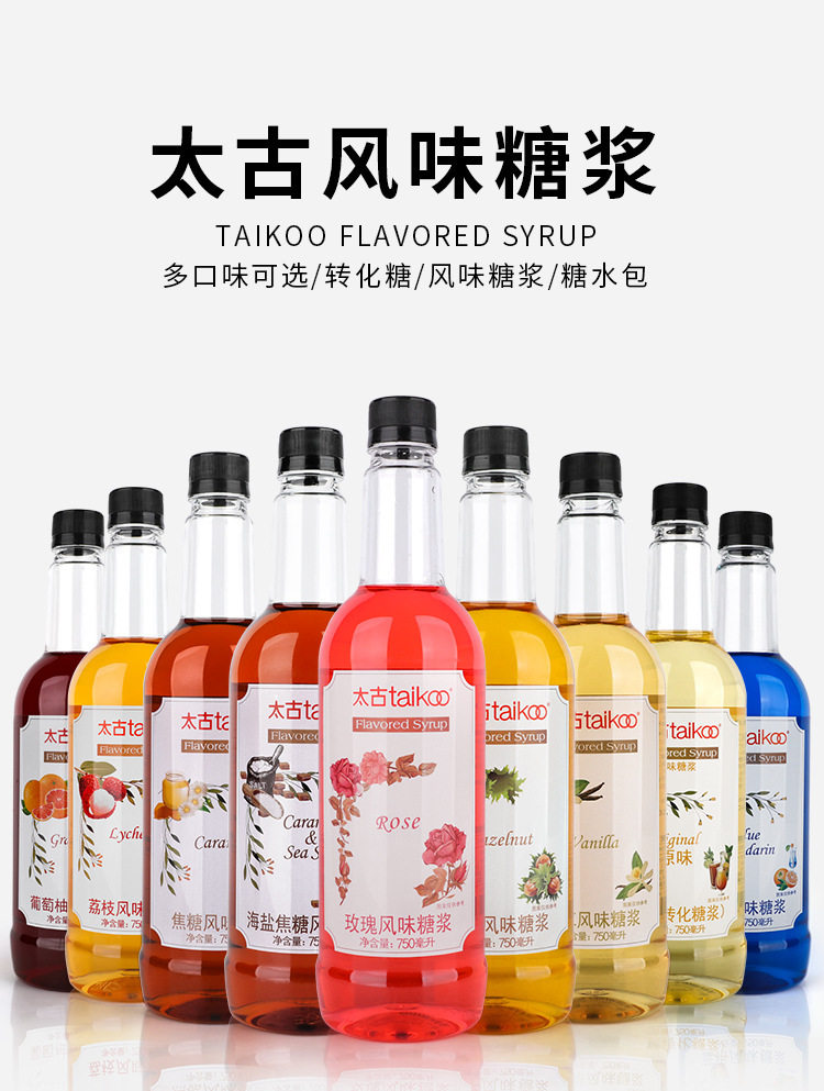 | Packaging specifications | Original transformed syrup 750ml,Vanilla flavored syrup 750ml,Hazelnut flavored syrup 750ml,Rose flavored syrup 750ml,Caramel flavored syrup 750ml,Sea salt caramel flavored syrup 750ml,Lychee flavored syrup 750ml (expires in may 25),Grapefruit flavored syrup 750ml |