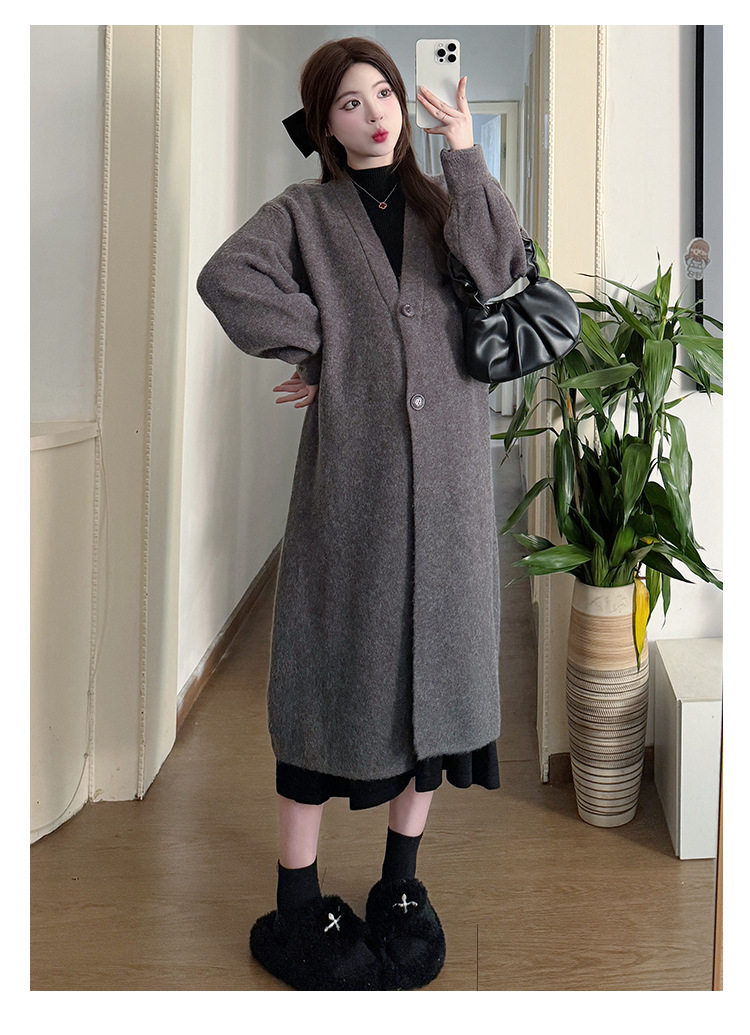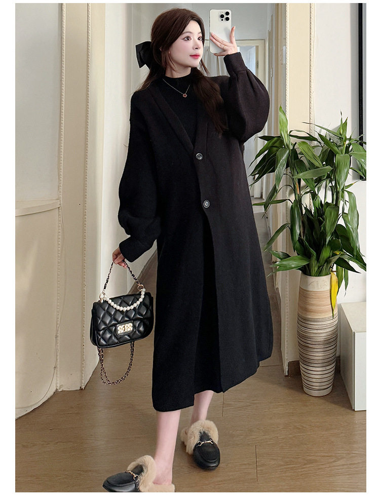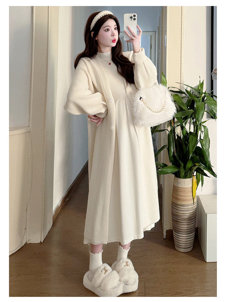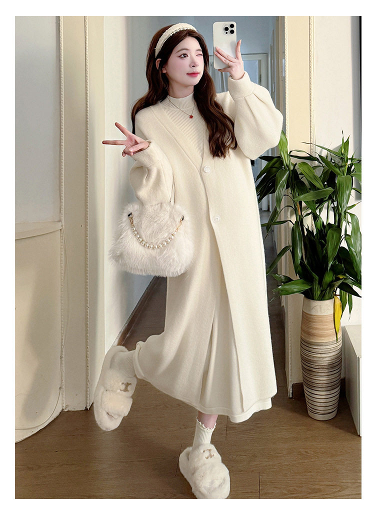 2024 Soft Waxy Knitted Coat Inclusive Great All-match Slim-looking Two-piece Set with Base Skirt