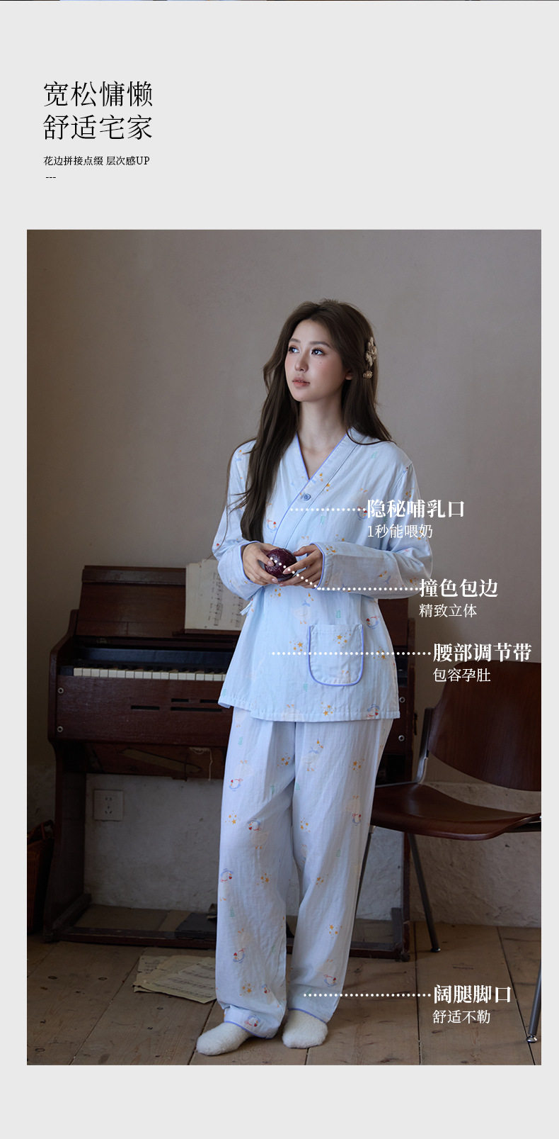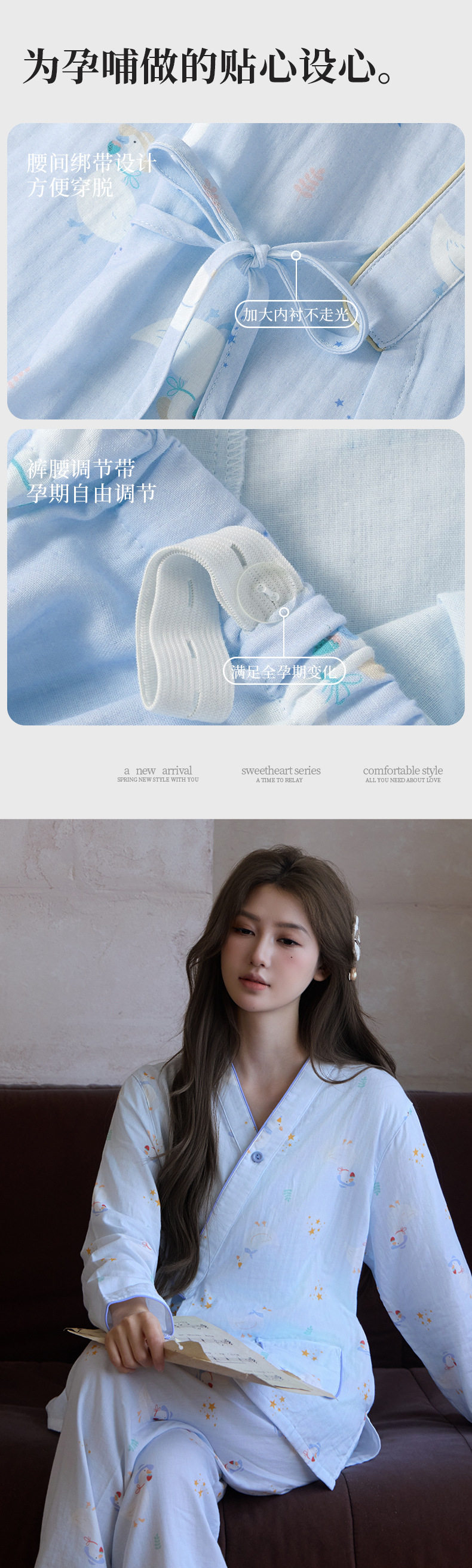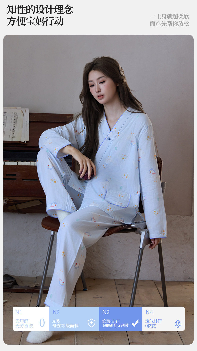 New Kimono Cotton Double Gauze Moon Clothes Pajamas Spring and Summer Pregnant Women Postpartum Lactation Adjustable Home Clothes