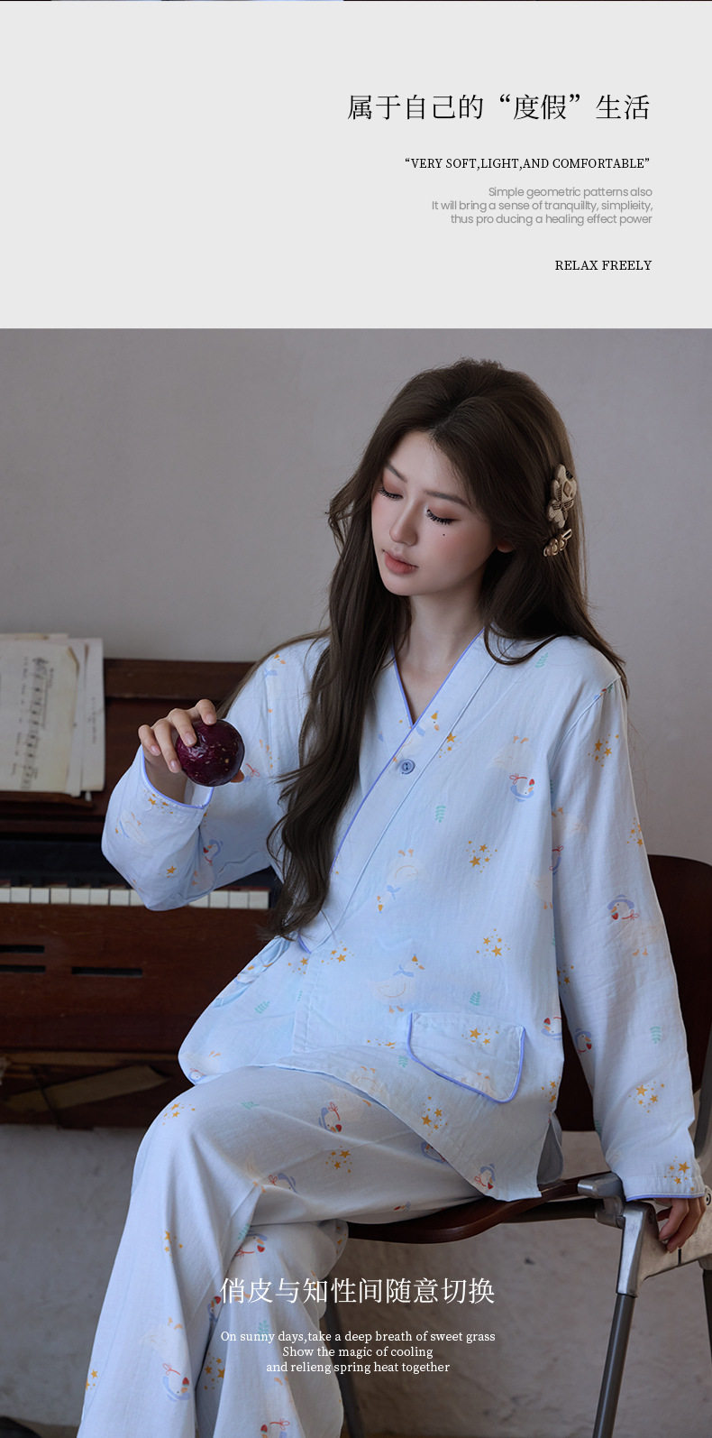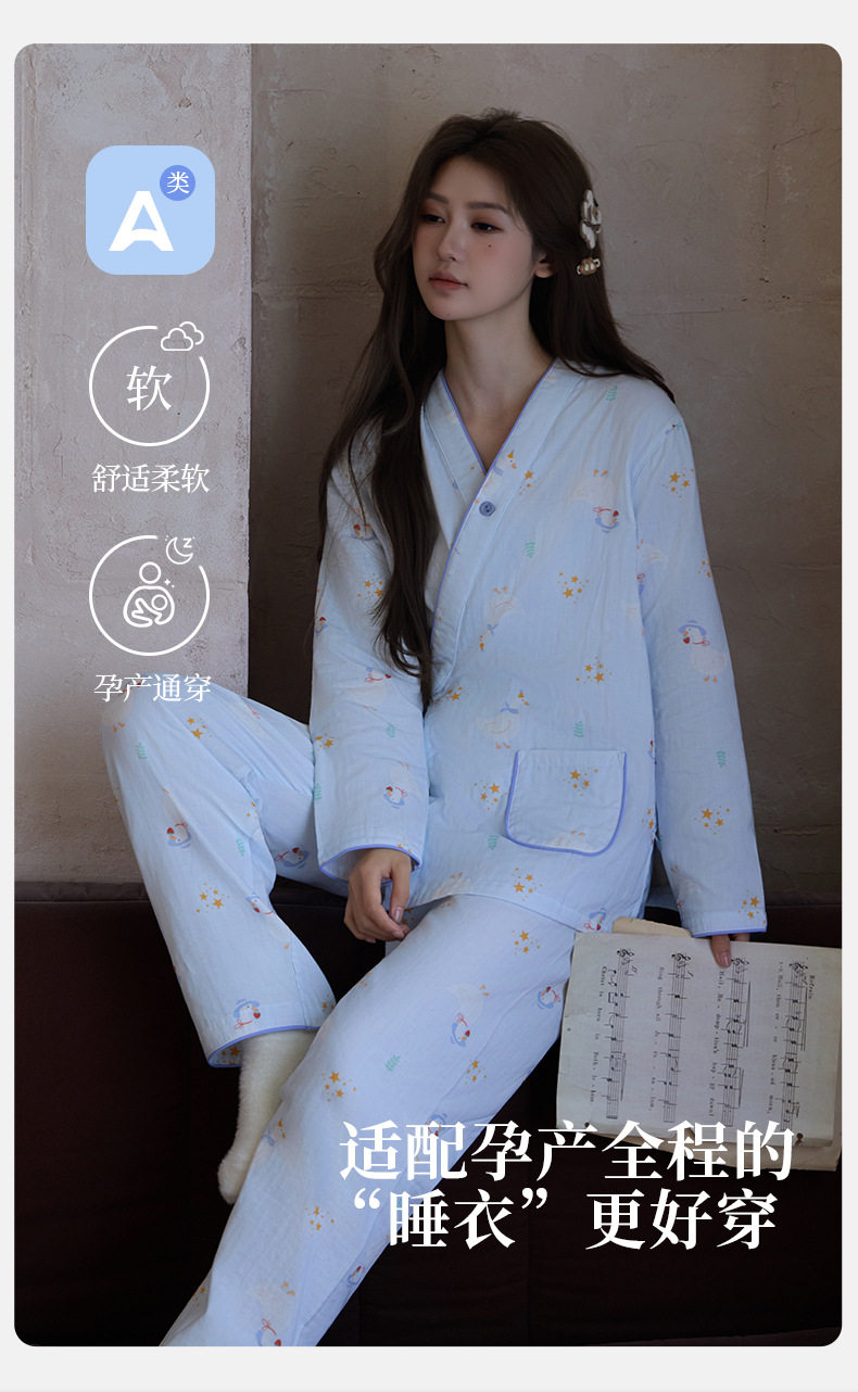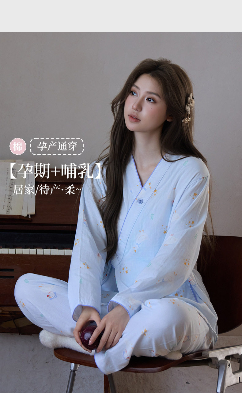 New Kimono Cotton Double Gauze Moon Clothes Pajamas Spring and Summer Pregnant Women Postpartum Lactation Adjustable Home Clothes