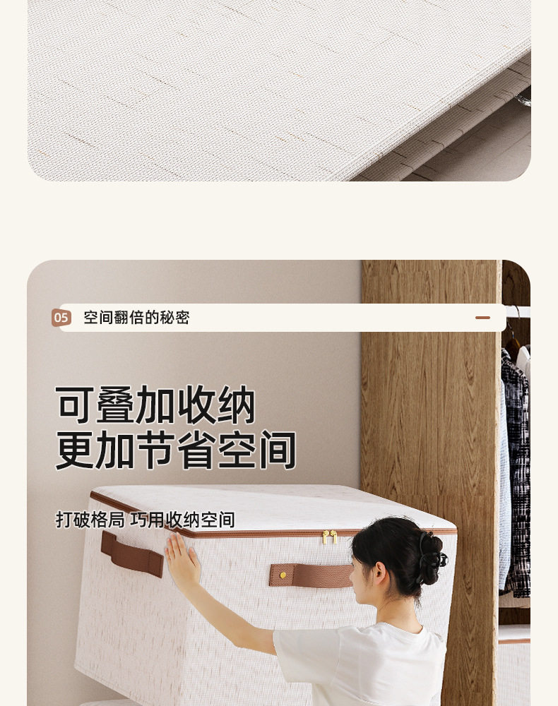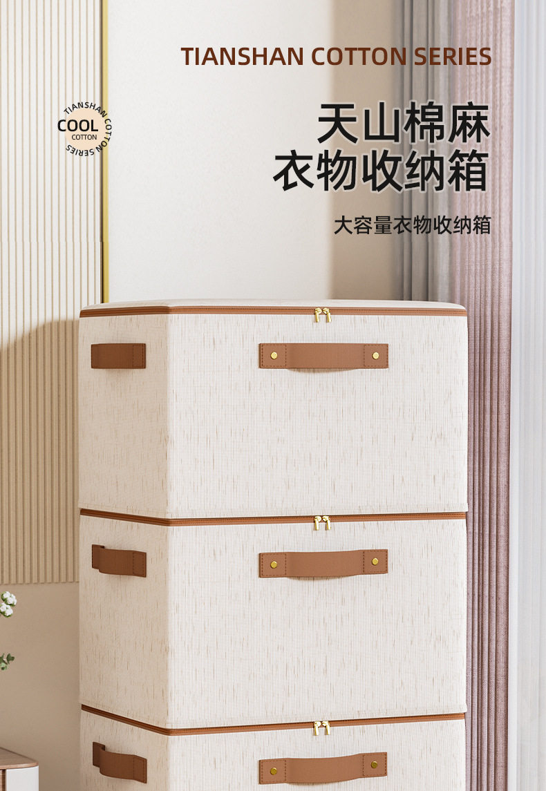 New Tianshan Cotton and Linen Zipper Storage Box Household Bedroom Seasonal Storage Box Dormitory Clothes and Pants Storage Box