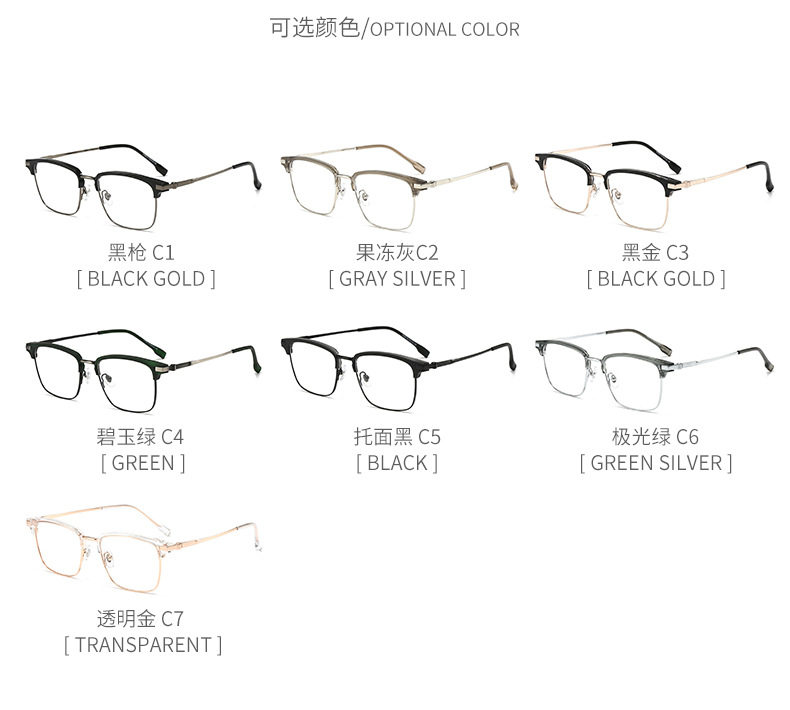 | Frame color | Black gun c1,Jelly gray c2,Black gold c3,Jasper green c4,Bracket black c5,Aurora green c6,Transparent gold c7 |