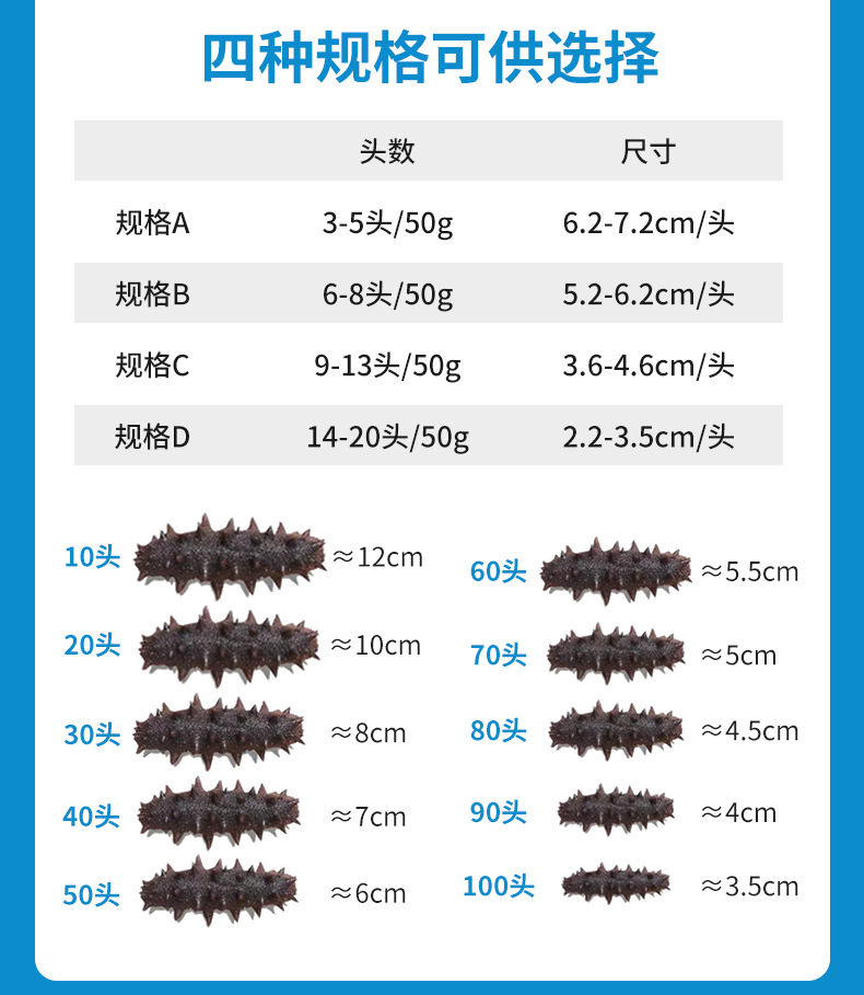 Dried Sea Cucumber Origin Dalian Bottom-Sown Sea Cucumber National Standard Grade Nourishing High-Taste Fresh Sea Cucumber for the Elderly and Pregnant Women